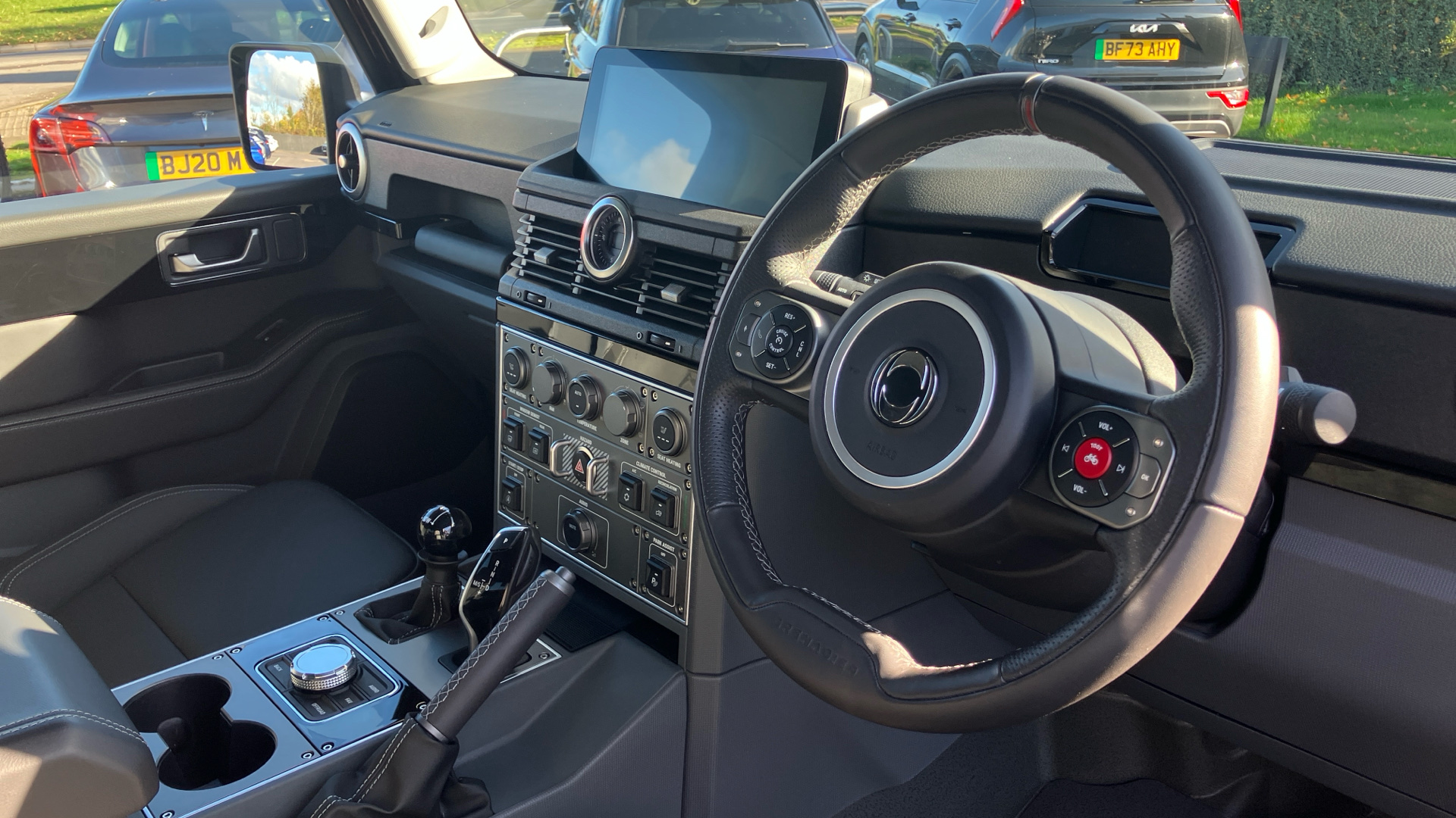 "Smart rear view mirror with auto dimming",