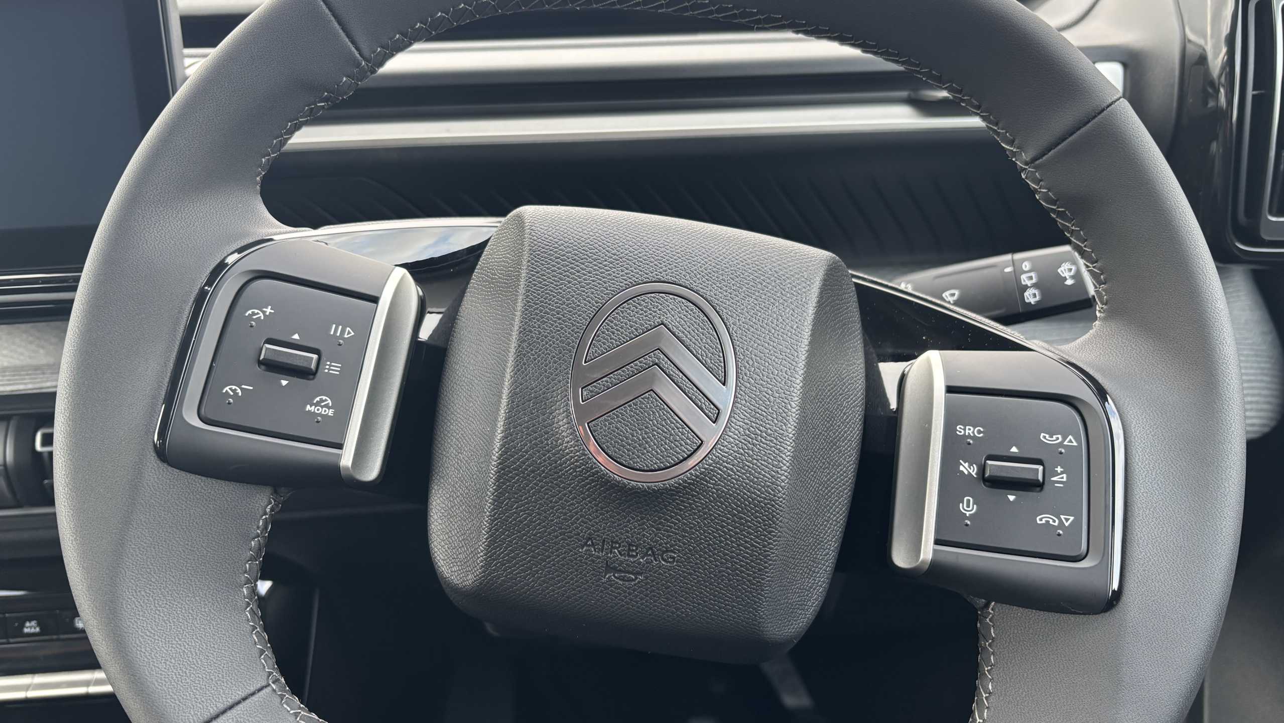 "Deluxe leather steering wheel with two command blocks",