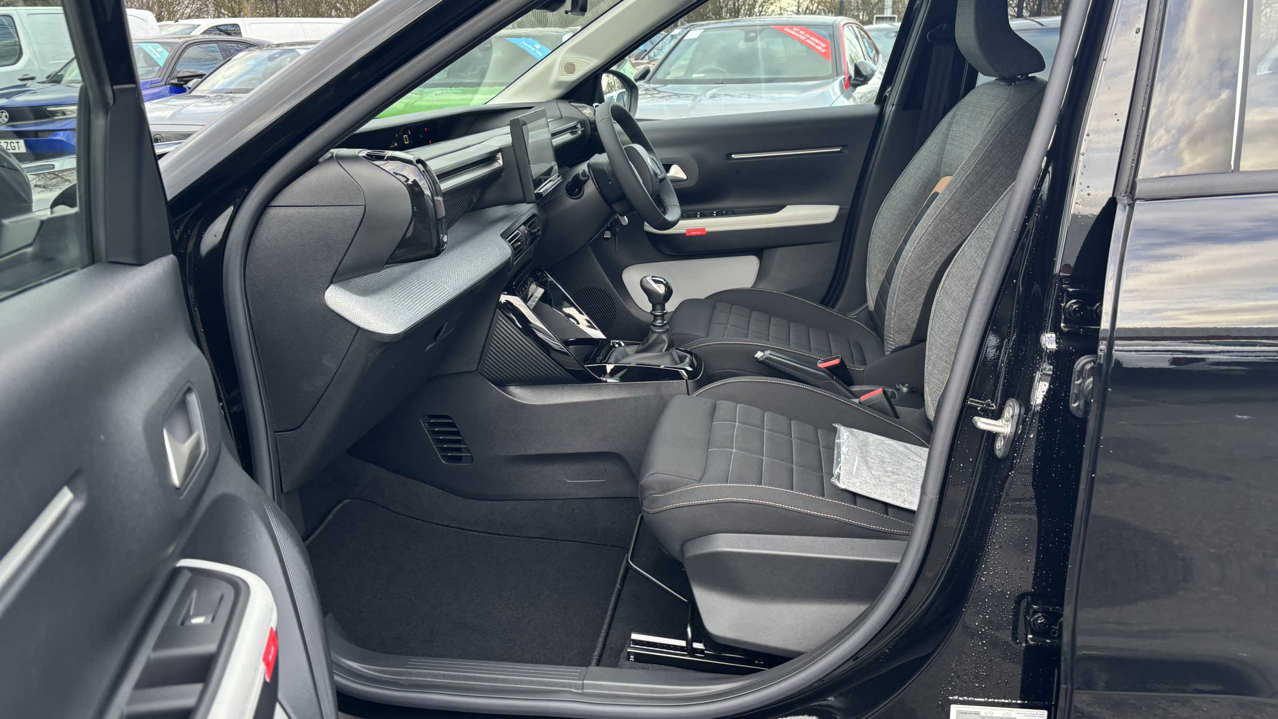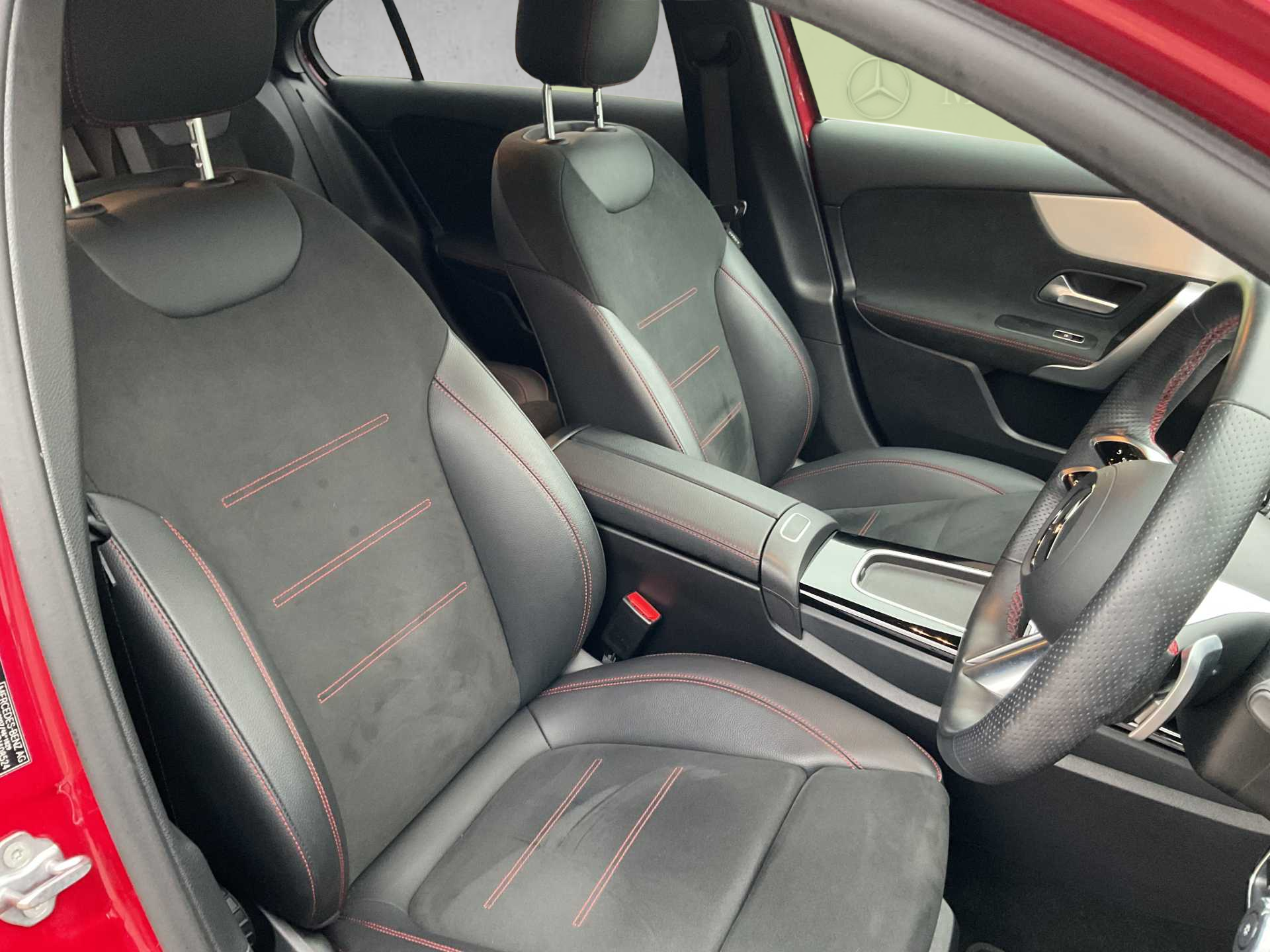 "Alcantara and black leather effect textile seats",