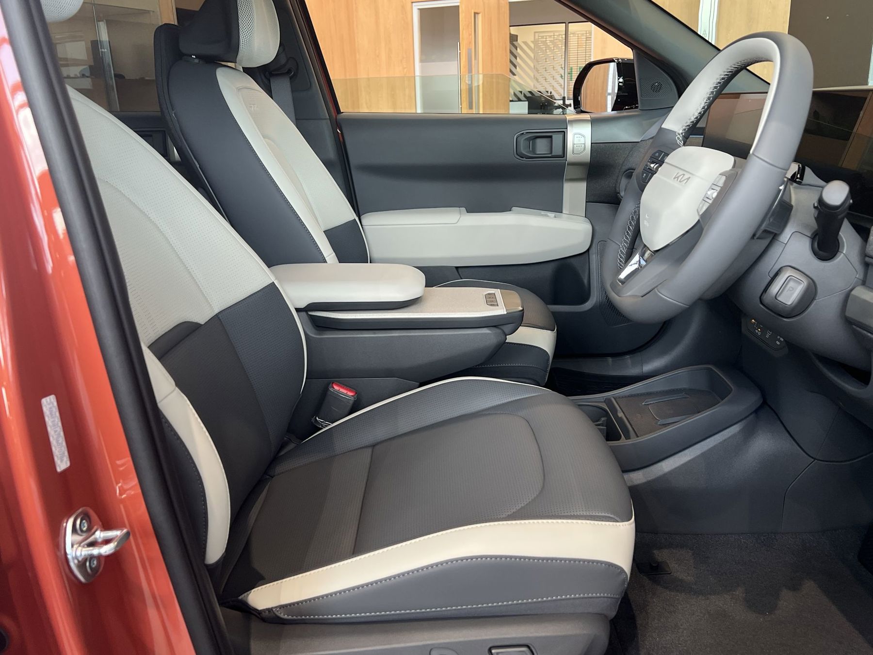 "Leather D shaped steering wheel",