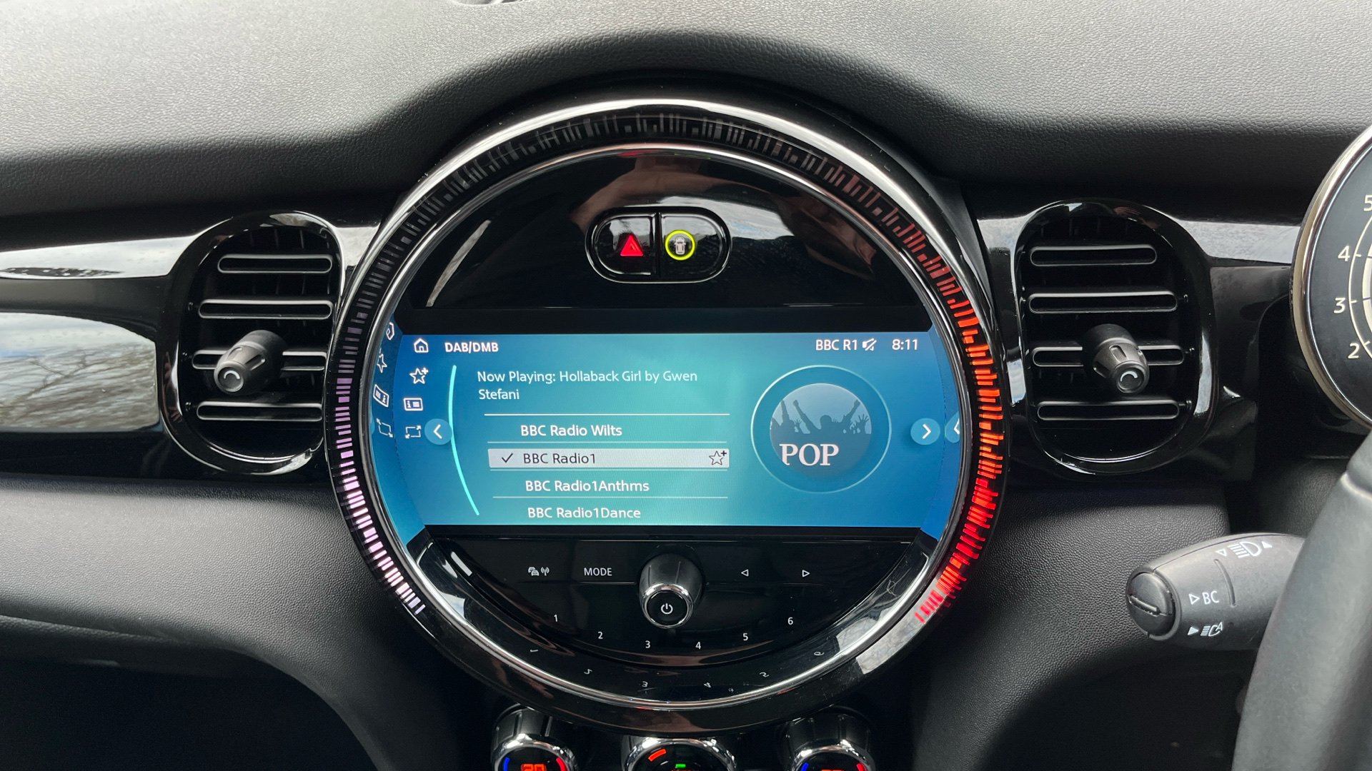"Ambient lighting in centre console",