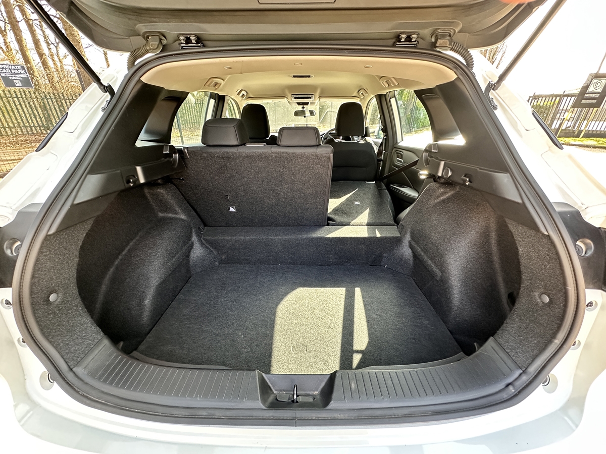 "Parcel shelf stow function under luggage board",