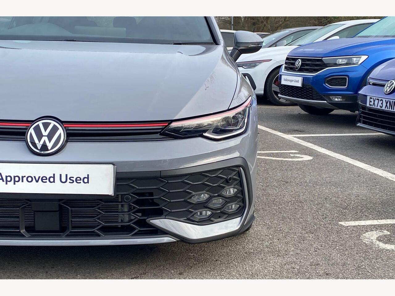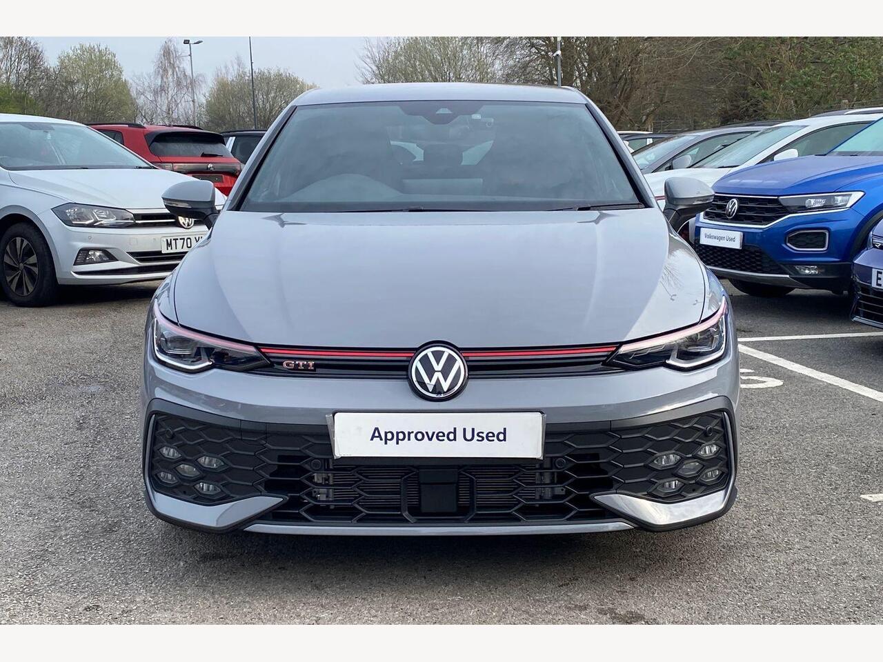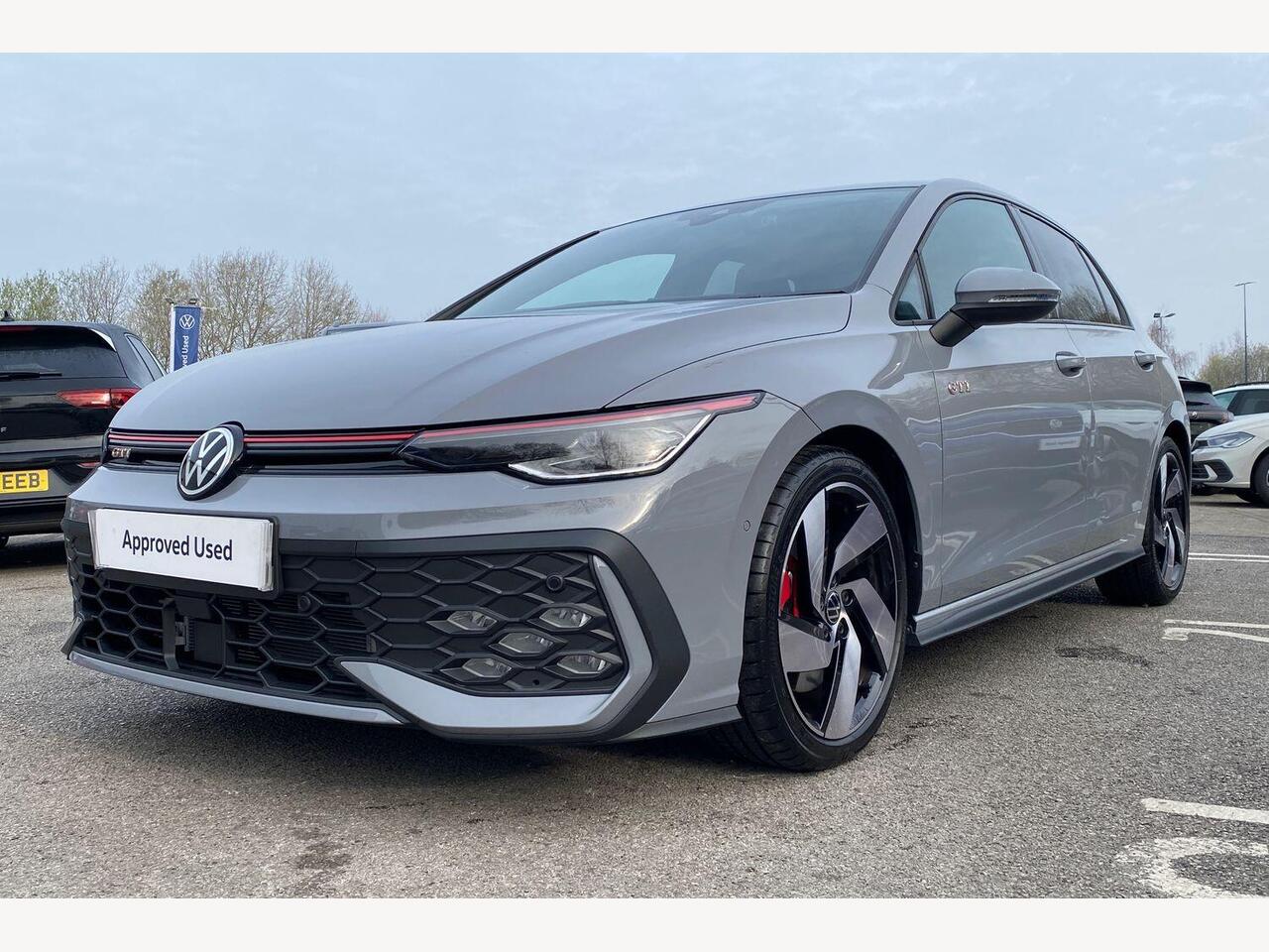 "remarks": "Discover the perfect blend of performance, style and cutting-edge technology with the Volkswagen Golf 2.0 TSI GTI Hatchback 5dr DSG in elegant Moonstone Grey. Designed to meet the demands of the discerning driver, this Euro 6-compliant, 265 PS powerhouse delivers exhilarating power while maintaining impressive efficiency. Step inside to experience the sophisticated interior, featuring Scale Paper Fabric upholstery in striking Soul Black with Tornado Red accents � a combination that exudes both comfort and sporty character. The driver-focused cabin is equipped with a high-resolution Navigation System, ensuring you always find the best route with ease, while the DSG gearbox provides smooth, responsive gear changes for effortless driving. Safety is paramount in the Golf GTI. Benefit from Adaptive Cruise Control, which maintains a safe distance from the vehicle ahead, easing motorway journeys. Autonomous Emergency Braking with Front Assist monitors the road and will intervene if pedestrians or cyclists enter your path, giving you added confidence every time you drive. The LED Matrix Headlamps offer superior visibility, adjusting automatically to avoid dazzling other road users, enhancing safety in all conditions. Whether tackling city streets or open roads, the Golf GTI�s dynamic chassis and sharp handling promise an engaging drive. This car is a statement of precision engineering that doesn�t compromise on practicality or comfort. Experience the Volkswagen Golf 2.0 TSI GTI Hatchback for yourself � where performance meets intelligent design. Book your test drive today and take the next step towards driving excellence.",