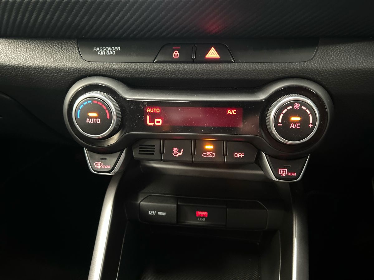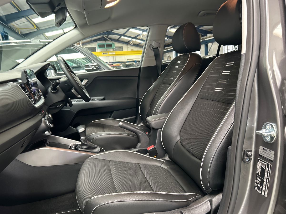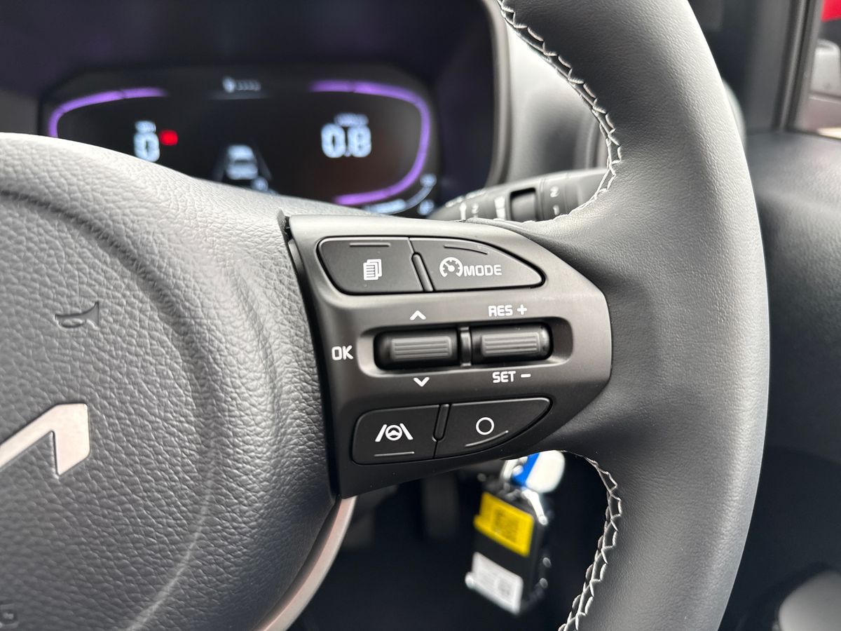 "features": "4.2\" driver display screen, 8\" touchscreen navigation, Apple car play/Android Auto with voice control, Cruise control + speed limiter, Emergency call service, Emergency stop signalling system, External temperature gauge, Forward Collision-Avoidance Assist (FCA) 1.0 - City/Pedestrian/Cyclist, Intelligent speed limit assist, Kia Connect (UVO), Lane Follow Assist 1.0, Lane keep assist, Motor driven power steering, Rear parking sensors, Reversing camera system, Tachometer, Trip computer, 4 speaker audio system, Bluetooth with music streaming, USB ports for connection of a media device, Automatic defog system, Automatic headlight control system, Body colour bumpers, Body coloured door mirrors, Body coloured side sills, Body coloured wheel arches, Daytime running lights, Electric adjustable heated door mirrors, Electric front and rear windows, Electric front touch drivers front window, Halogen headlamps, Headlamp levelling, Heated rear window, High mount brake light, Rain sensor, Rear fog lights, Rear Lights Bulb, Rear side wing doors, Rear wiper, Silver window surround, Speed variable front wipers, Tinted windshield glass, Visible VIN plate, 12V power point front, 3 seat bench in 2nd row, 60:40 Split folding rear seats, All round height adjustable headrests, Artificial leather steering wheel, Centre console storage box, Cloth upholstery, Driver and front passenger side sunvisors with vanity mirrors, Front and rear door storage, Front cabin lights, Front passenger USB-C charging port, Glovebox, Grey headlining, ISOFIX Child seat top tethers and anchor fixings outer rear seats, Luggage area light, Luggage area parcel shelf, Luggage board, Luggage net + hook, Manual adjust steering wheel, Manual adjustable driver and front passenger seat, Manual air conditioning, Single front passenger seat, All round 3-point seatbelts, Anti-lock braking system (ABS), Electronic stability control, Front + rear side airbags, Front airbags, Front passenger airbag cut-off switch, Front seatbelt height adjusters, Hill hold control, Hill start assist control (HAC), Rear airbags, Seatbelt warning, Side impact protection, Torque vectoring brake based and straight line stability (SLS), Traction control, Tyre pressure monitoring system, Vehicle stability management, Central door locking, Folding key, Locking wheel nuts, Manual child locks, Rear occupant alert, Thatcham category 2 security alarm and immobiliser, 14\" alloy wheels, Tyre mobility kit, ",