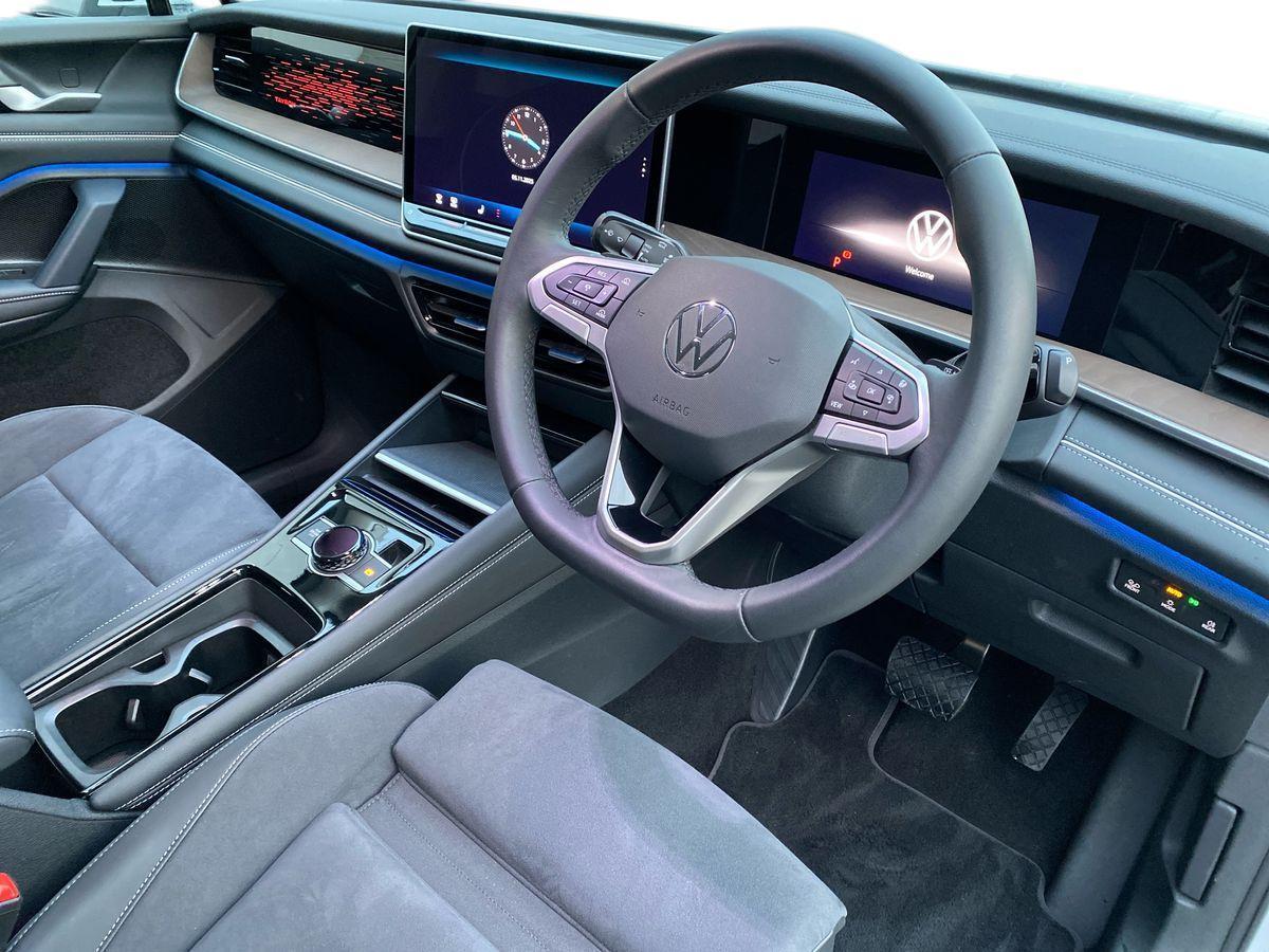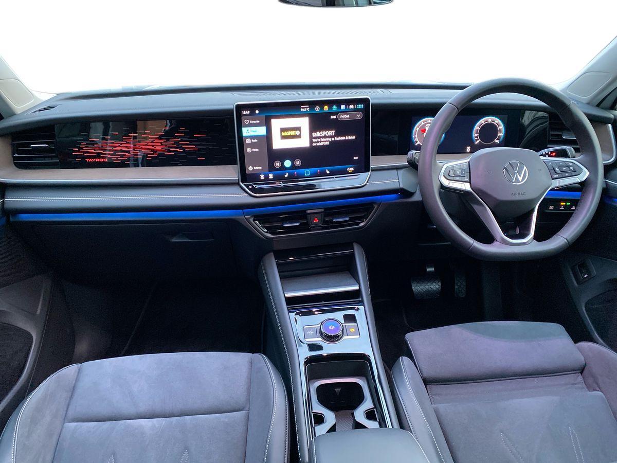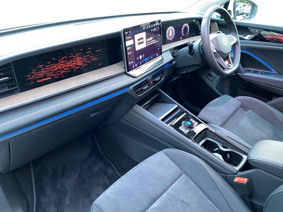 "features": "Adaptive cruise control (ACC), Digital Cockpit Pro - 10.25\" high resolution dash display screen with customisable menus and information, Driver alert system, Driver attention monitoring system, Dynamic road sign display, E-Sim card for online connectivity, eCall emergency call system, Lane change system, Side assist, Rear traffic alert and Exit warning system, Multifunction front facing camera, Oncoming vehicle braking when turning including swerve support, Start/stop system with regenerative braking, Voice activation spoken voice commands for telephone and navigation system, Warning signal and warning light for front and rear seatbelts not fastened, Wireless App-Connect, Front wheel drive, Digital radio reception (DAB), Diversity antenna for FM reception, Auto dimming interior rear view mirror, Automatic headlight control system, Body colour door handles, Body coloured bumpers and air intake with chrome trim, Body-coloured exterior mirror housings, Chrome moldings on the side windows, Coming/leaving home lighting function, Dynamic headlight range control with dynamic cornering light, Exterior mirrors convex on the left and aspherical on the right, Heat insulating glass in side and rear windows, Illuminated Volkswagen logo rear with animation, Laminated safety glass from B-pillar backwards 90% tinted, Laminated safety glass winshield, heat insulating, LED 3rd brake light, LED separate signature day time running light, Puddle lights, Rain sensor windscreen wipers, Rear fog light on one side, reversing light on both sides, Rear side wing doors, Rear wiper, Reverse activated passenger's door mirror, Silver roof rails, Surround lighting with welcome light, Volkswagen logo in front, illuminated lighting animation with wake up/goodbye scenario and illuminated door handles, 12V socket in centre console, 3 rear headrests, 3 rear seat bench in 2nd row, backrest split folding with centre armrest and 2 seats in 3rd row of seats, Carpet mats, front and rear, Centre console with illuminated storage compartment with sliding cover and two drinks holders, Chrome elements on the mirror switch and power window switches and door pulls, Door and side trim panel featuring foam film with leatherette insert, Flat luggage compartment floor, Front centre armrest, Front scuff plates in alumium, Interior ambient lighting with 30 colour options, ISOFIX anchors for child seats on outer rear seats and front passenger seat. Compatible with i-Size, Mechanical rear seat release, Power adjustable lumbar support in front, Single front passenger seat, Sports comfort seats in front, Sun visors with illuminated vanity mirrors, Comfort package with park assist pro - Tayron, Driver assistance package - Tayron, 3 Point seat belts in front with pretensioners, 3 point seatbelts in outer rear with ECE label, Autonomous emergency braking front assist with pedestrian and cyclist monitoring, Driver and front passenger airbag with front passenger airbag deactivation, Electronic parking brake with auto hold, First aid kit with warning triangle and safety vest, Front and rear curtain airbags, Front and rear side airbags, Front centre airbag, Front disc brakes, Hill start assist, Rear disc brakes, Two tone horn, Decorative material set Elegance with inserts in ornamental wood ash in the dashboard, Interior door handle in matte chrome, ",