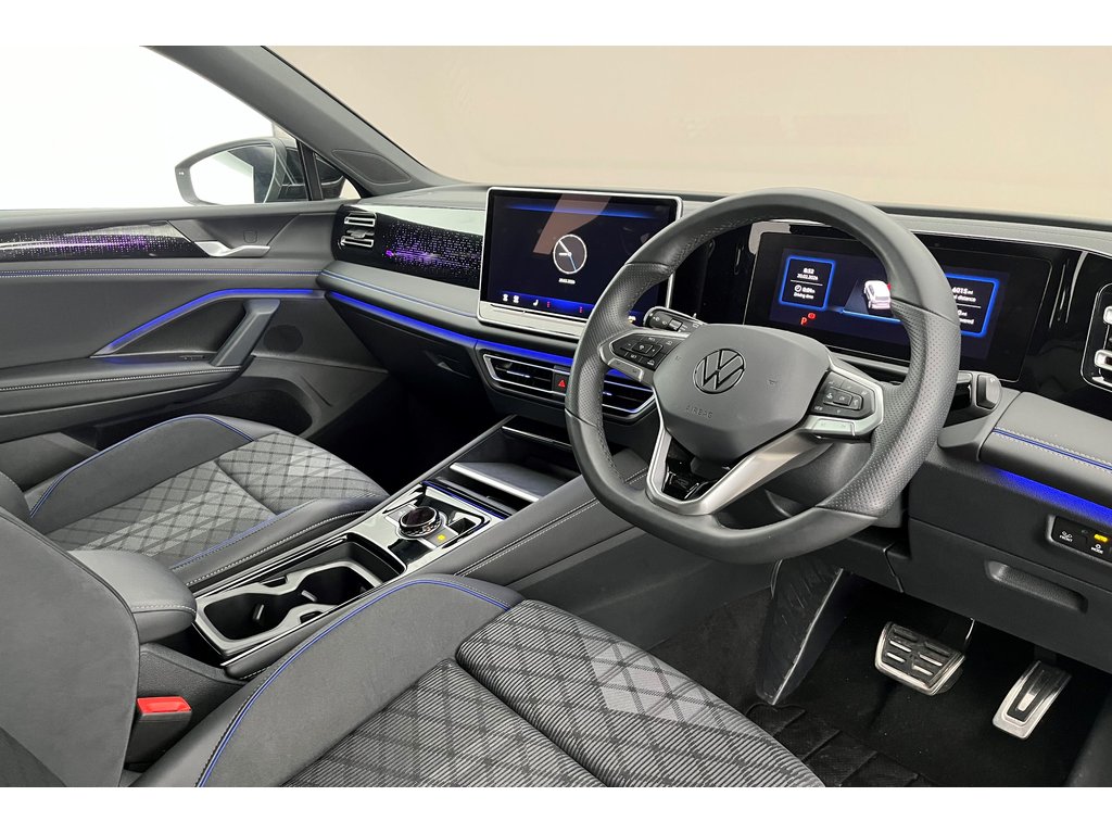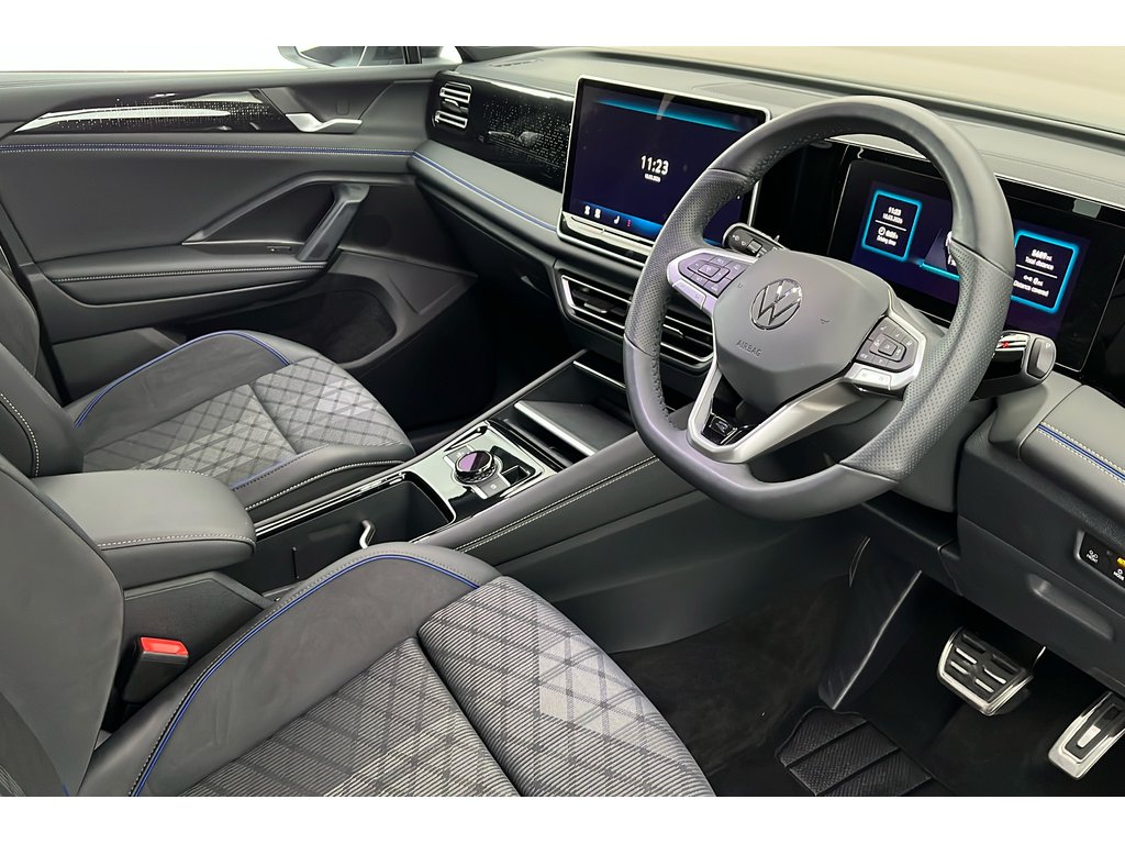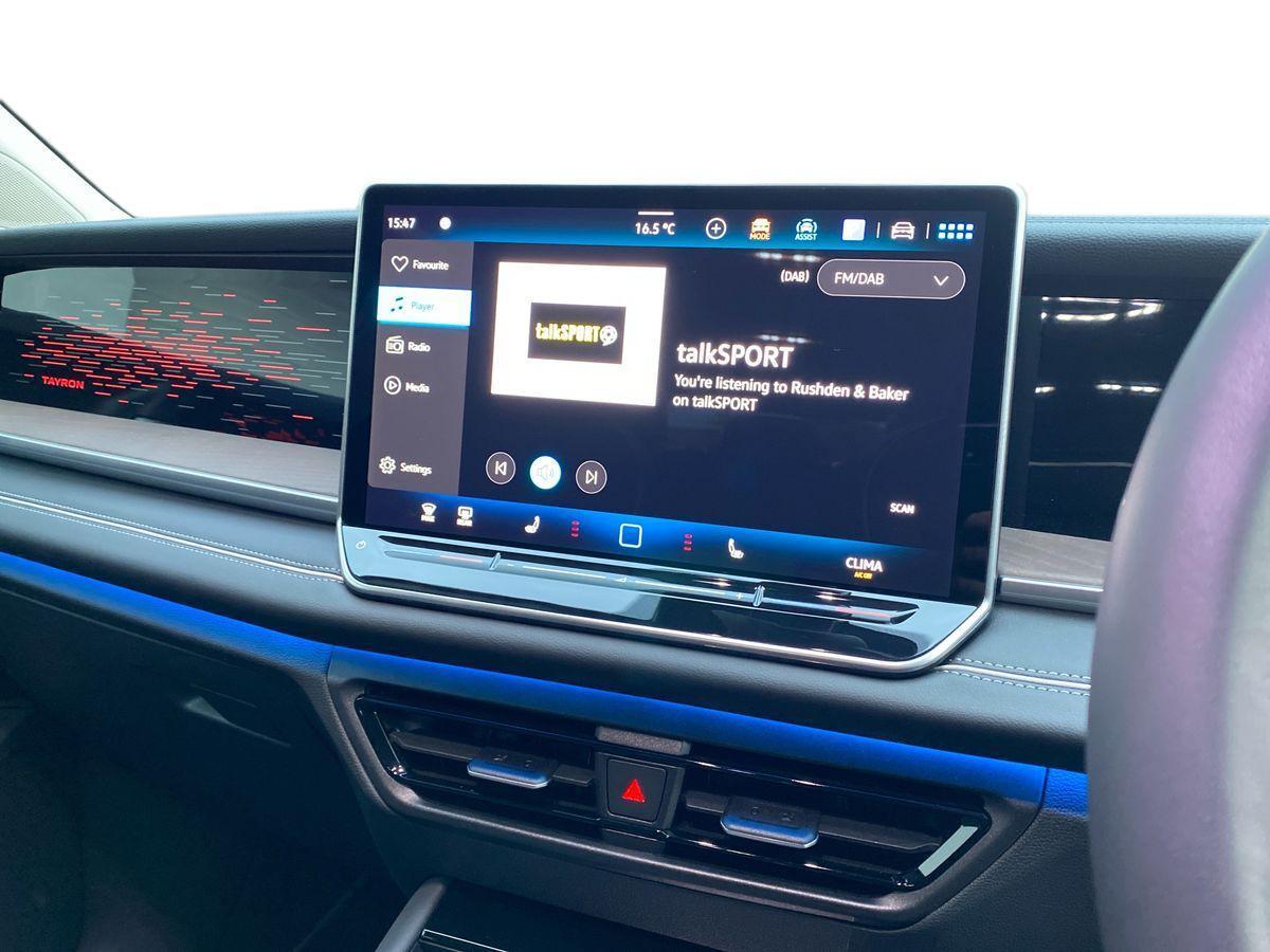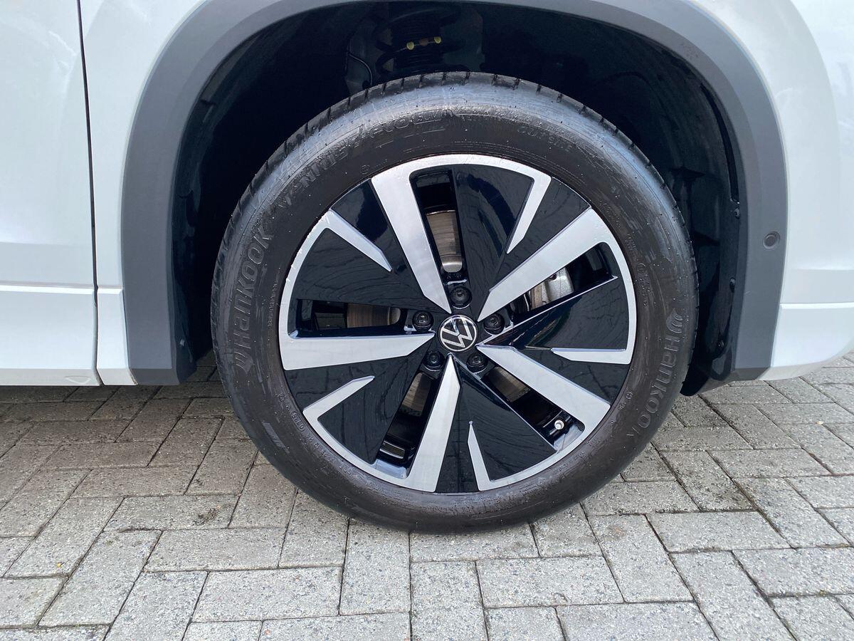 "features": "Adaptive cruise control (ACC), Digital Cockpit Pro - 10.25\" high resolution dash display screen with customisable menus and information, Driver alert system, Driver attention monitoring system, Dynamic road sign display, E-Sim card for online connectivity, eCall emergency call system, Lane change system, Side assist, Rear traffic alert and Exit warning system, Multifunction front facing camera, Oncoming vehicle braking when turning including swerve support, Start/stop system with regenerative braking, Voice activation spoken voice commands for telephone and navigation system, Warning signal and warning light for front and rear seatbelts not fastened, Wireless App-Connect, Front wheel drive, Digital radio reception (DAB), Diversity antenna for FM reception, Auto dimming interior rear view mirror, Automatic headlight control system, Body colour door handles, Body coloured bumpers and air intake with chrome trim, Body-coloured exterior mirror housings, Chrome moldings on the side windows, Coming/leaving home lighting function, Dynamic headlight range control with dynamic cornering light, Exterior mirrors convex on the left and aspherical on the right, Heat insulating glass in side and rear windows, Illuminated Volkswagen logo rear with animation, Laminated safety glass from B-pillar backwards 90% tinted, Laminated safety glass winshield, heat insulating, LED 3rd brake light, LED separate signature day time running light, Puddle lights, Rain sensor windscreen wipers, Rear fog light on one side, reversing light on both sides, Rear side wing doors, Rear wiper, Reverse activated passenger's door mirror, Silver roof rails, Surround lighting with welcome light, Volkswagen logo in front, illuminated lighting animation with wake up/goodbye scenario and illuminated door handles, 12V socket in centre console, 3 rear headrests, 3 rear seat bench in 2nd row, backrest split folding with centre armrest and 2 seats in 3rd row of seats, Carpet mats, front and rear, Centre console with illuminated storage compartment with sliding cover and two drinks holders, Chrome elements on the mirror switch and power window switches and door pulls, Door and side trim panel featuring foam film with leatherette insert, Flat luggage compartment floor, Front centre armrest, Front scuff plates in alumium, Interior ambient lighting with 30 colour options, ISOFIX anchors for child seats on outer rear seats and front passenger seat. Compatible with i-Size, Mechanical rear seat release, Power adjustable lumbar support in front, Single front passenger seat, Sports comfort seats in front, Sun visors with illuminated vanity mirrors, Comfort package with park assist pro - Tayron, Driver assistance package - Tayron, 3 Point seat belts in front with pretensioners, 3 point seatbelts in outer rear with ECE label, Autonomous emergency braking front assist with pedestrian and cyclist monitoring, Driver and front passenger airbag with front passenger airbag deactivation, Electronic parking brake with auto hold, First aid kit with warning triangle and safety vest, Front and rear curtain airbags, Front and rear side airbags, Front centre airbag, Front disc brakes, Hill start assist, Rear disc brakes, Two tone horn, Decorative material set Elegance with inserts in ornamental wood ash in the dashboard, Interior door handle in matte chrome, ",