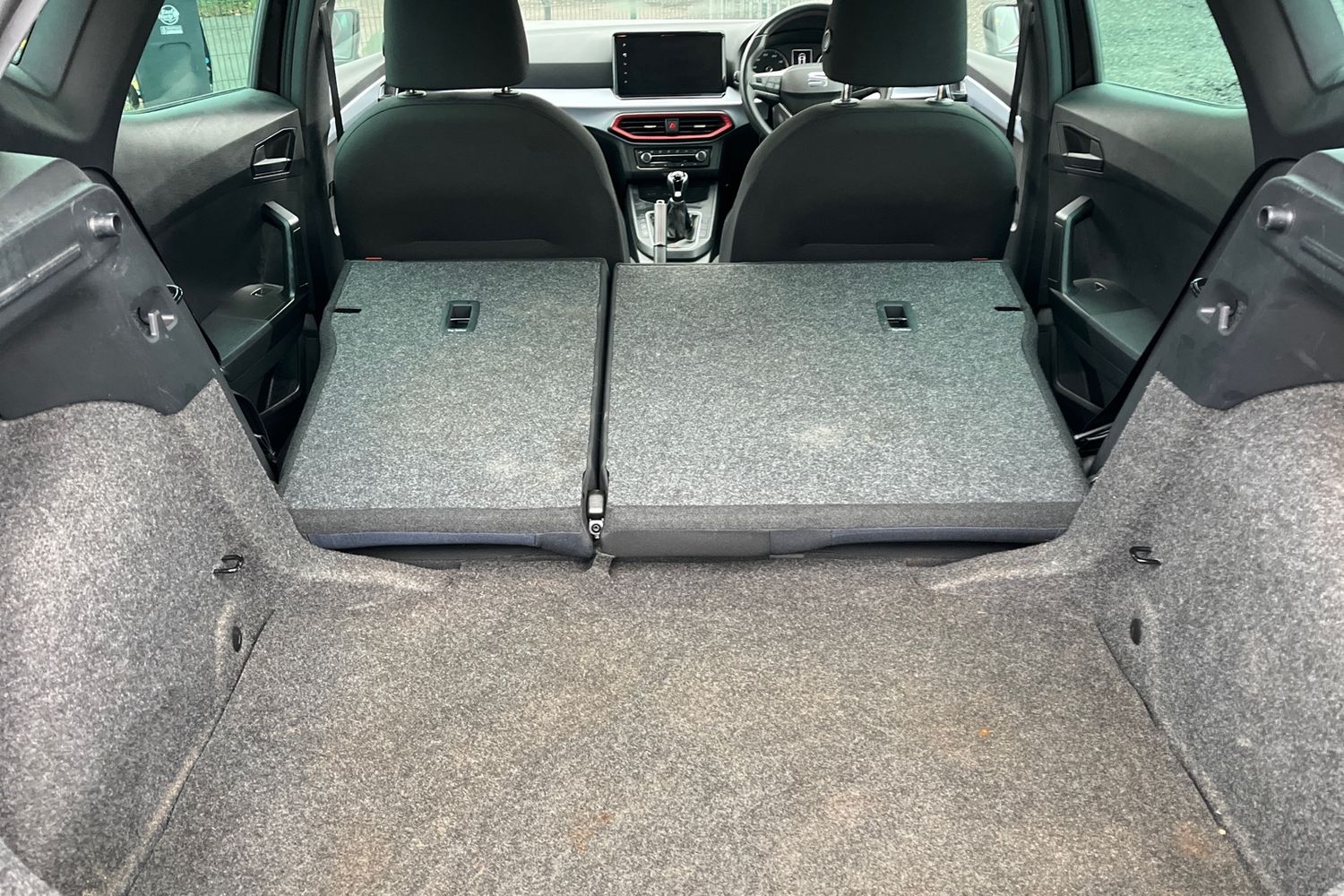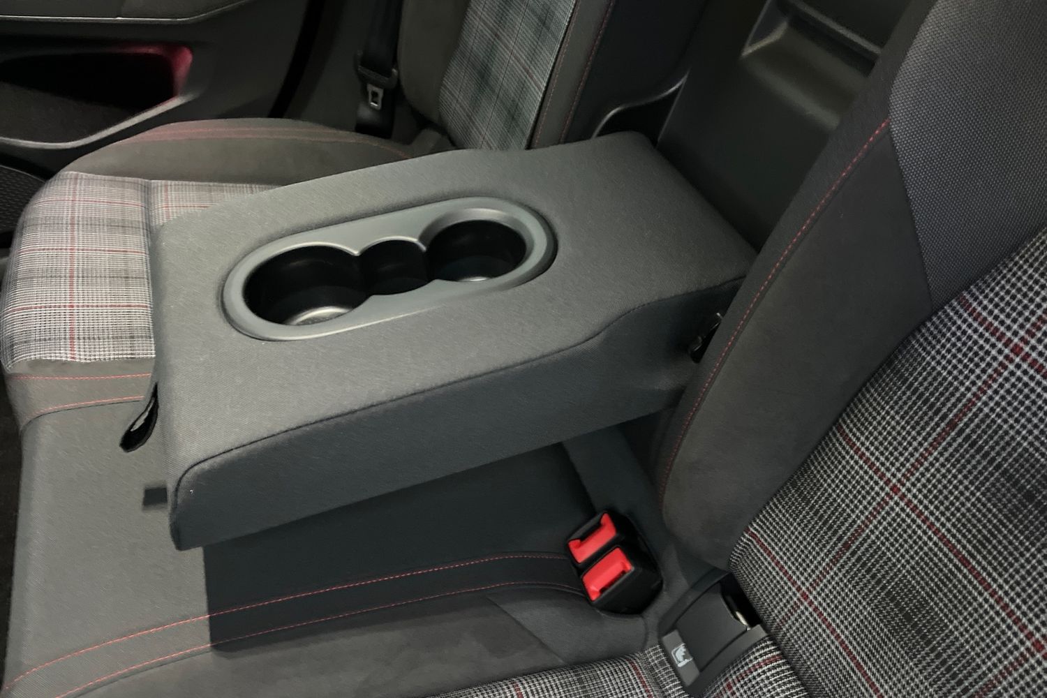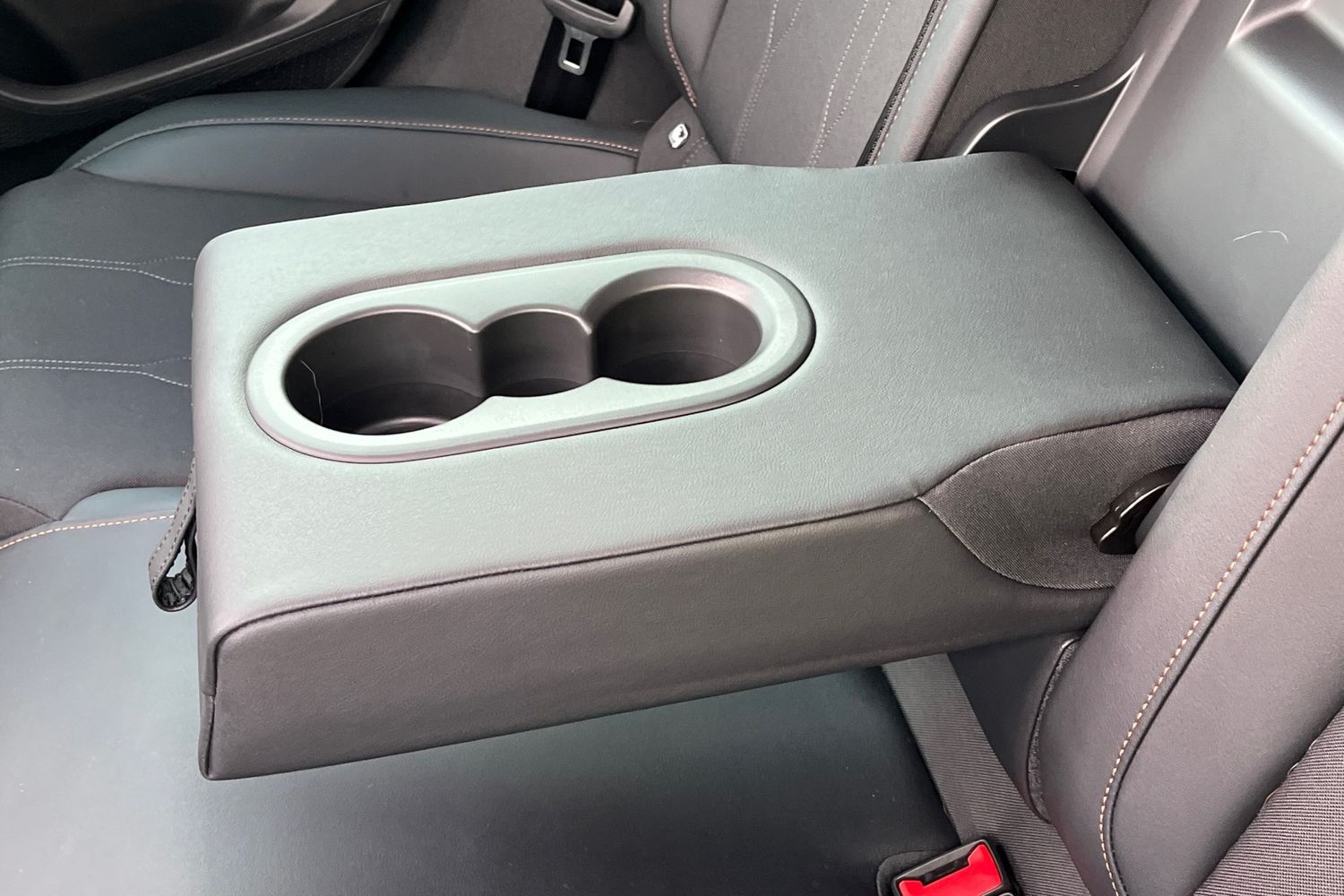 "Unsplit rear bench seat, split folding backrest with centre armrest with cupholder"