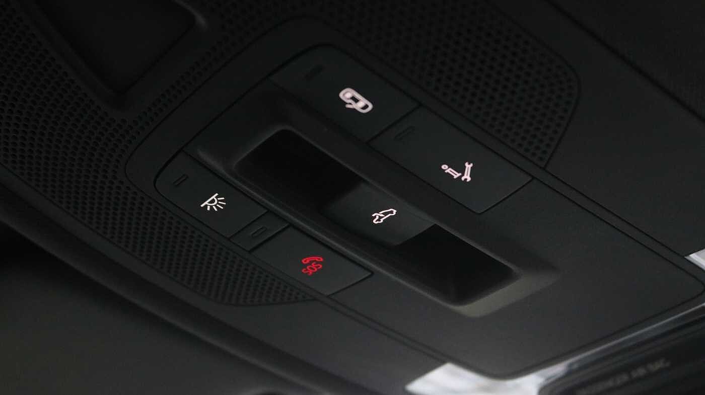 "Overhead glasses storage compartment",