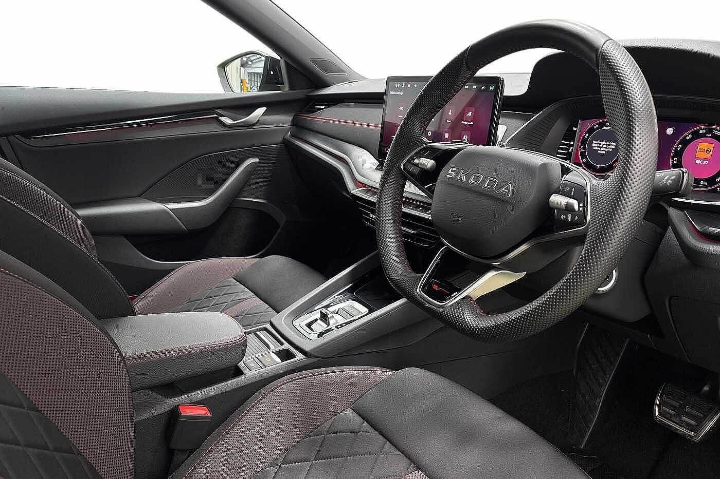 "features": "13\" satellite navigation touchscreen display, Blind spot detection with door exit warning, Bluetooth system, Drive mode selector, Driver alert with fatigue sensor, Dry display cleaner, e call+, Front cross traffic assist, Lane assist, PAS, Rear traffic assist, Traffic sign recognition, USB C Port x 2 in front centre console, Virtual Cockpit - 10.25\" digital display, Voice control system, Wireless charging for two smartphones (15W) with cooling function, Wireless SmartLink for Apple CarPlay and Android Auto, Stop/start function, 2x USB-C in the rear, DAB Digital radio, Aero front windscreen wipers with intermittent function, Auto dimming rear view mirror, Black wheel arch surrounds, Body colour bumpers, Body colour door mirrors and handles, Cornering light and poor weather light, Electric folding /adjustable/separted heated/folding door mirrors, auto dimming with boarding sports and memory function, Electric front and rear windows, Heat insulating glass in windshield, Heated rear window, Ice scraper in fuel tank cap, Invisible tailpipe, LED daytime running lights, LED rear fog light, LED third brake light in rear spoiler, Light assistant with automatic headlight control and coming home feature, Logo projection in door mirrors, Privacy glass, Rear side wing doors, Rear spoiler, Rear window wiper, Safety reflectors on front and rear doors, Window control switches with black trim, Windscreen wipers with rain sensor, Without engine designation, 1.5l bottle holder points in all door, 12V socket in boot, 1x centre rear reading light, 2 seat bench in 3rd row, 3 configurable smart dials with 32mm coloured display, 3 seat bench in 2nd row, 4 foldable roof handles with rear coat hooks, Automatic gear selector on steering wheel, Chrome interior door handles, Driver/front passenger reading lights, Fabric headlining, Fixed bench 40:60:40 split folding backrests, Front and rear floor mats, Front centre armrest with jumbo box storage compartment, cup holder and 12V socket, Front courtesy lights, Height adjustable front headrests, Interior ambient lighting, Isofix child seat fittings in outer rear seats and front passenger with top tether, Manually adjustable steering column, Pollen filter, Rear centre armrest with cupholders, Rear seat boot backrest release, Retractable luggage compartment cover, Single front passenger seat, Sliding trunk cover, Small Bags on the inner sides of the front backrests, Storage pocket including mobile phone pockets on the backs of the front seats, Sunvisors with illuminated vanity mirrors, Three rear height adjustable headrests, Ticket holder on A Pillar, Tri zone climate control, Umbrella in door panel x1 made from sustainable materials, Upper and lower glovebox with card holder and coin compartment, USB C port by rear view mirror for charging only (15W), Exterior styling package - Kodiaq, Auto door release and activation of warning lights, Driver and front passenger airbag with knee airbag and front passenger airbag deactivation, Driver drowsiness alert system, Electric child locks, Electronic parking brake, ESC (incl. ABS+EMD+MSR+ASR+EDL+HBA+DSR+RBS+ESBS+MCB+TSA+XDS), Front assist with braking reaction to vehicles, pedestrians and cyclists, Front disc brakes, Fuel cut off safety device, Height adjustable front 3 point seatbelts + pretensioners, Hill hold control, Junction assist with automatic emergency braking, Rear disc brakes, Safety vest holder in door, Seat belt reminder for all seats, Tailgate unlocking from outside, Three point rear seat belts, Two tone horn, Tyre pressure monitor, Anti-theft wheel bolts, Immobiliser, Remote central locking with 2 keys, Black/grey fabric with green cross stitching on dashboard, Swan feathers grey dashboard and door decorative inserts, ",