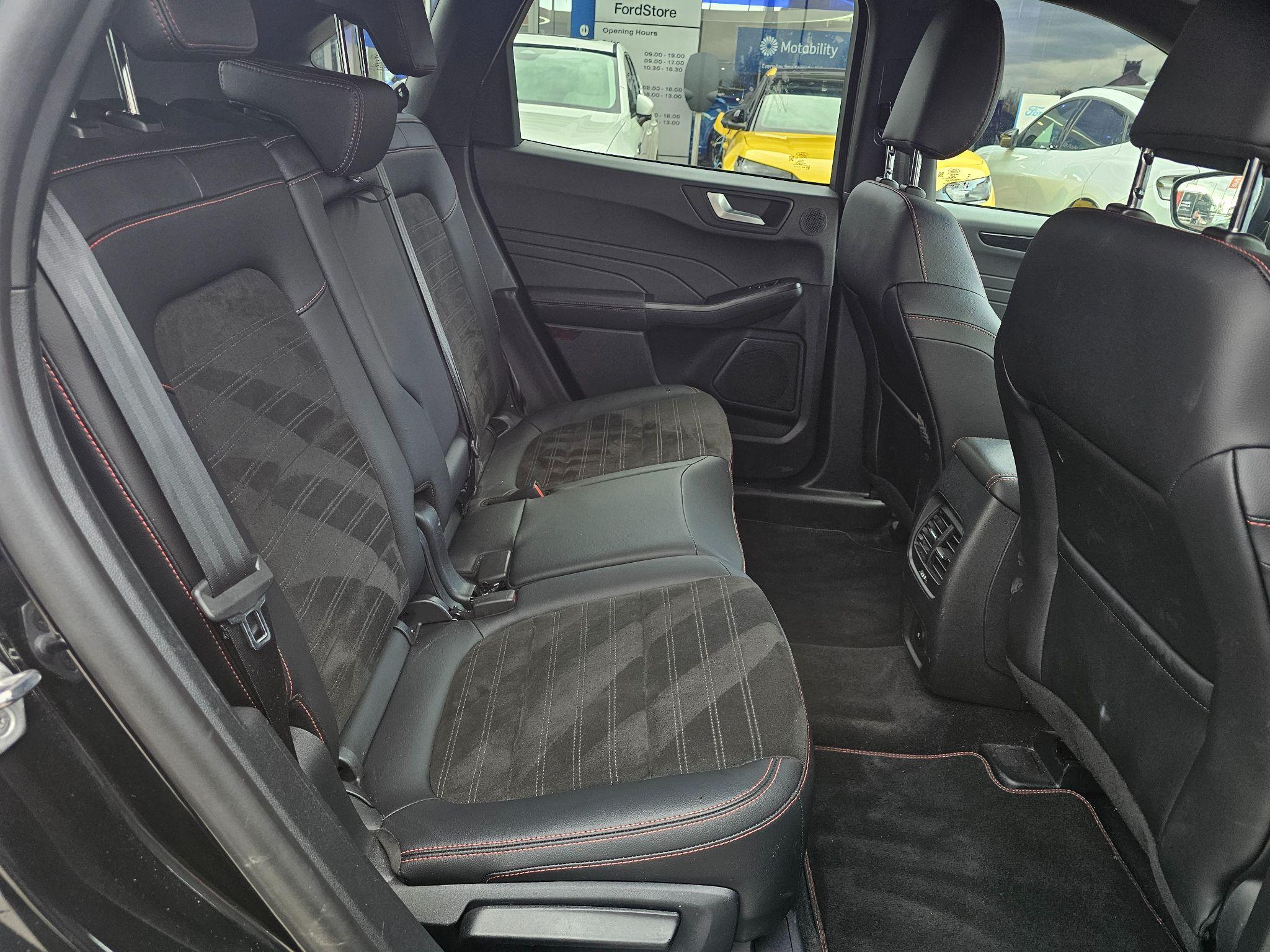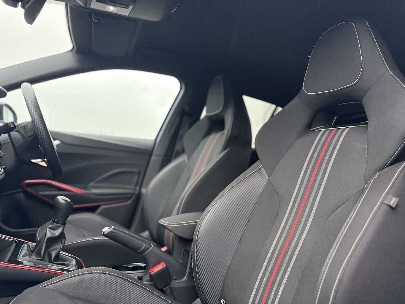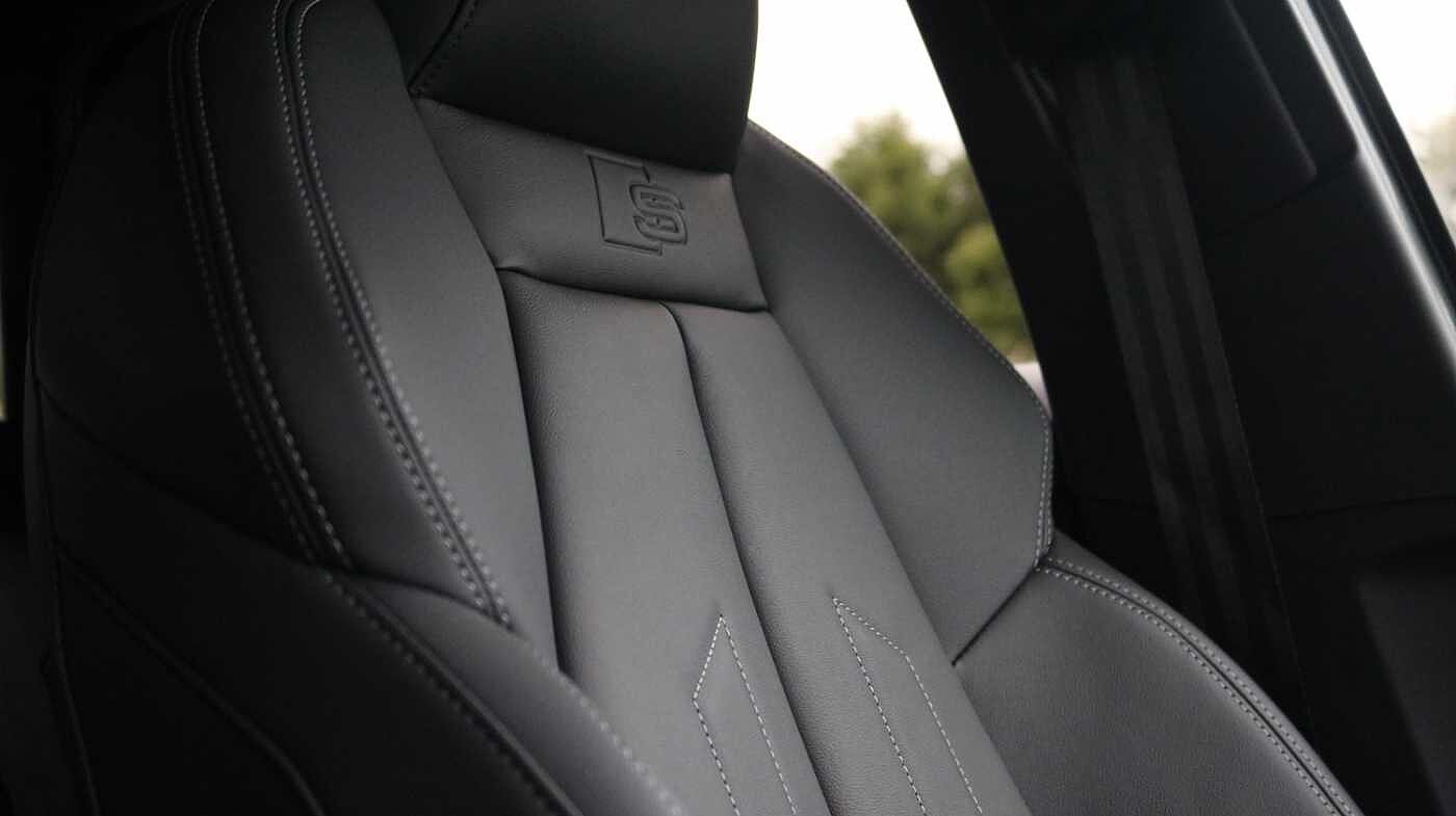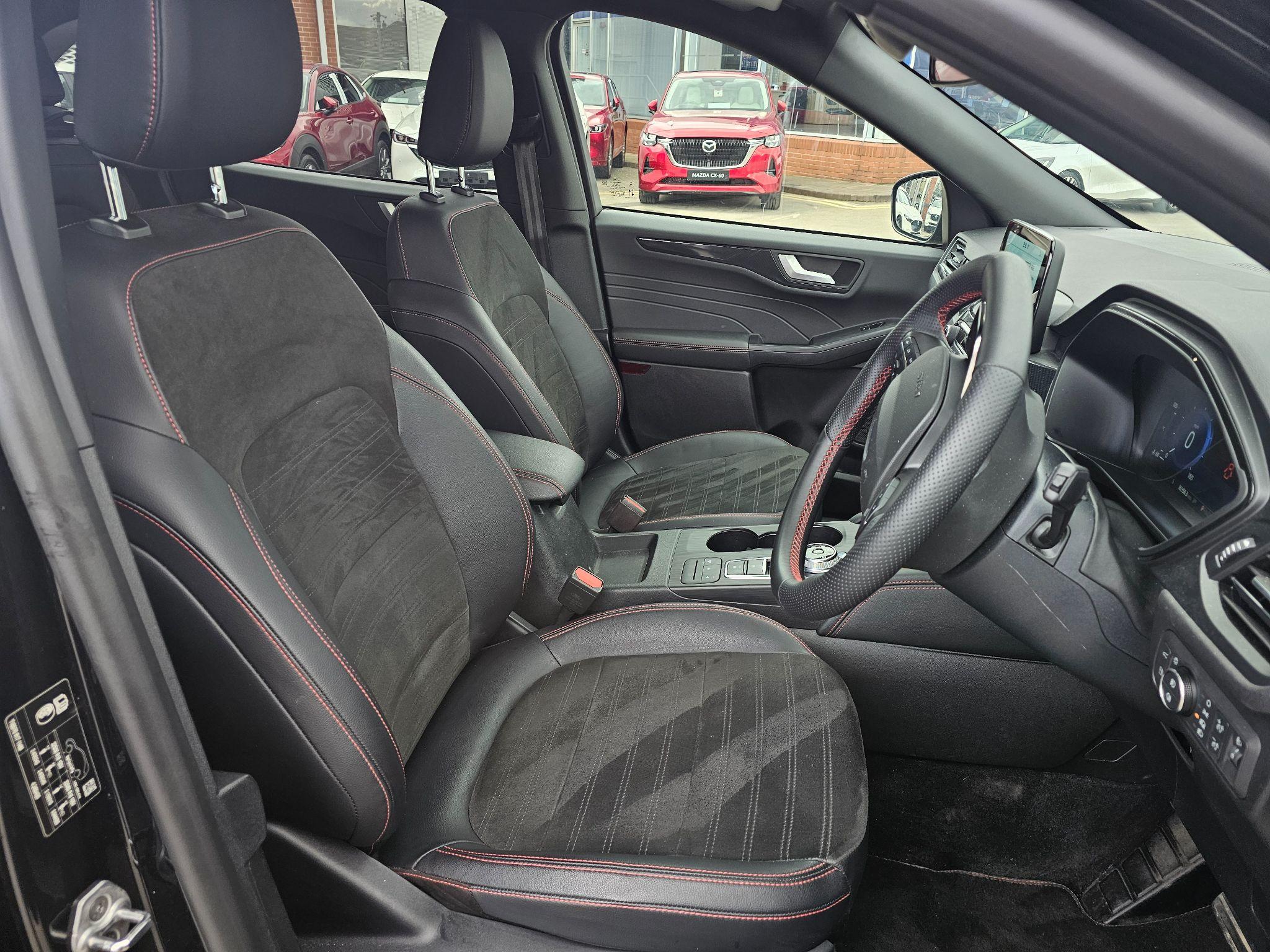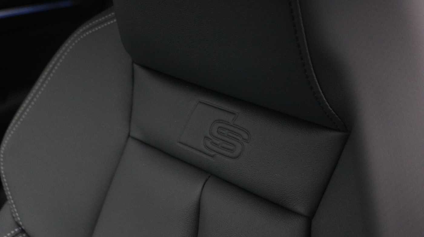 "Microsuede/leather upholstery with silver diamond stitching sports seats",