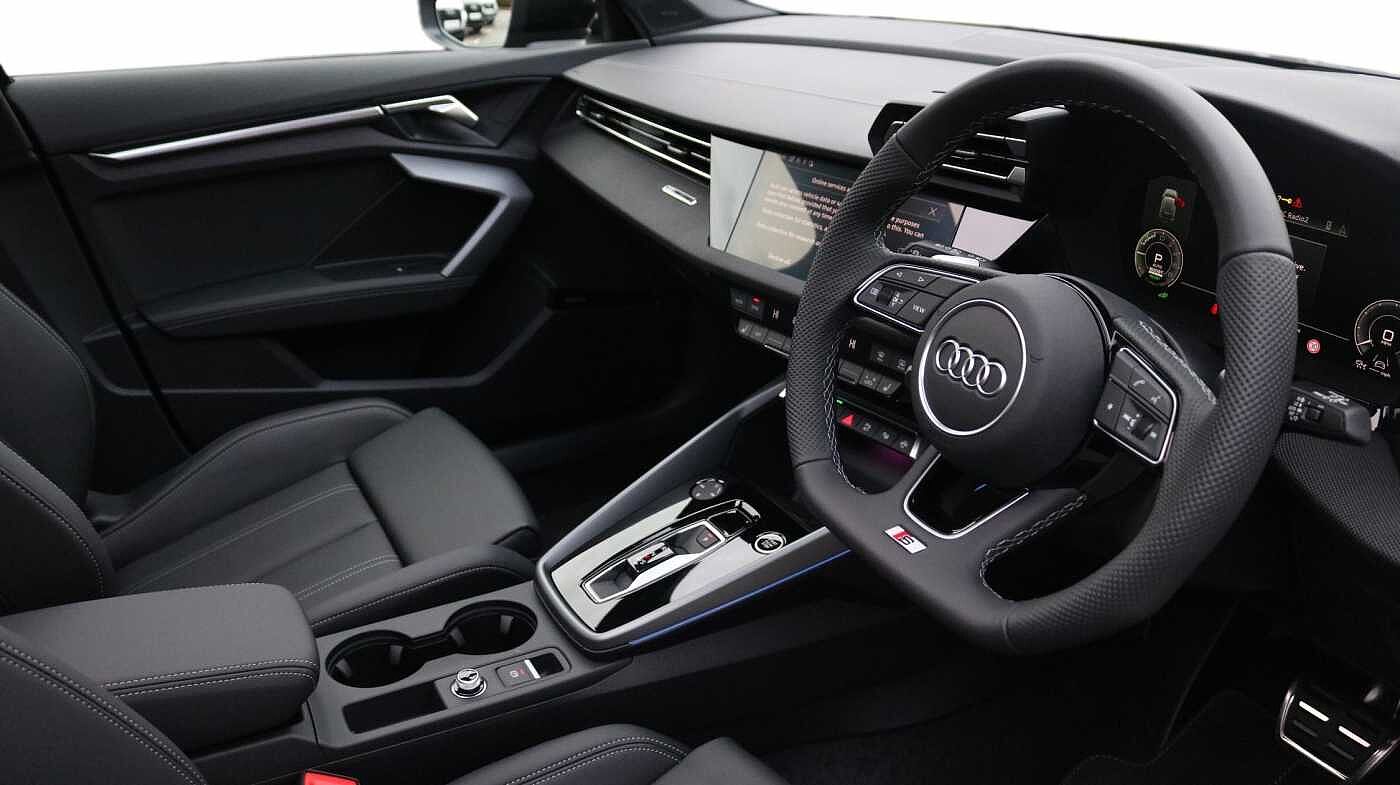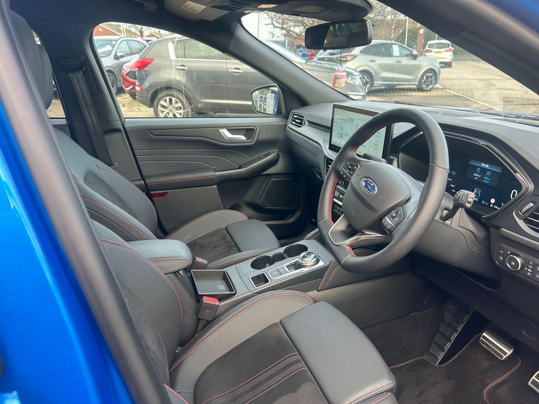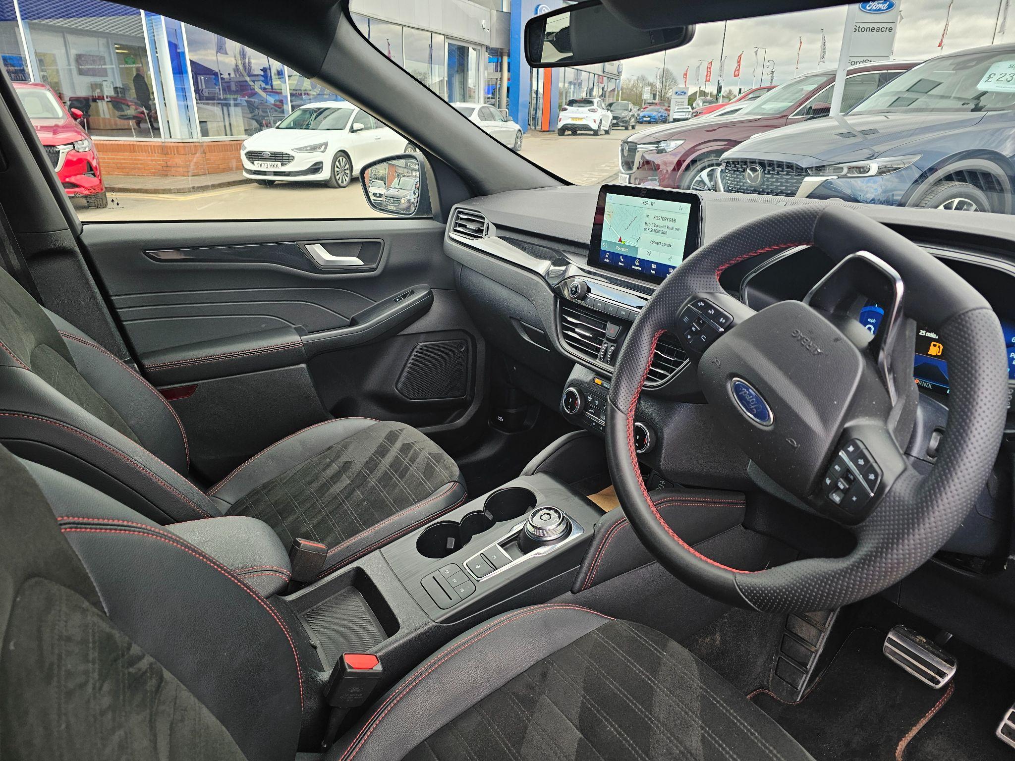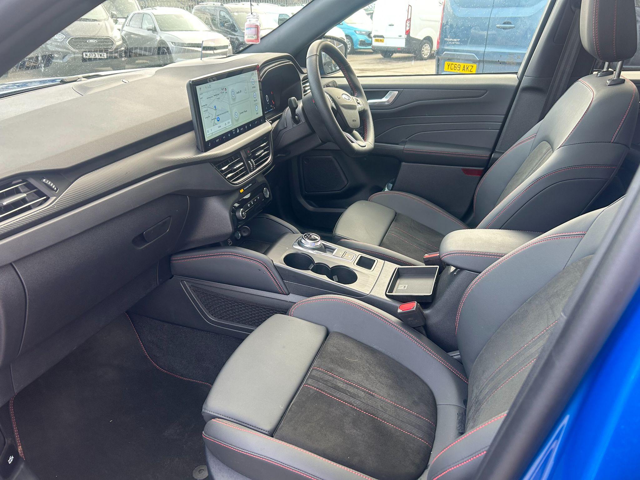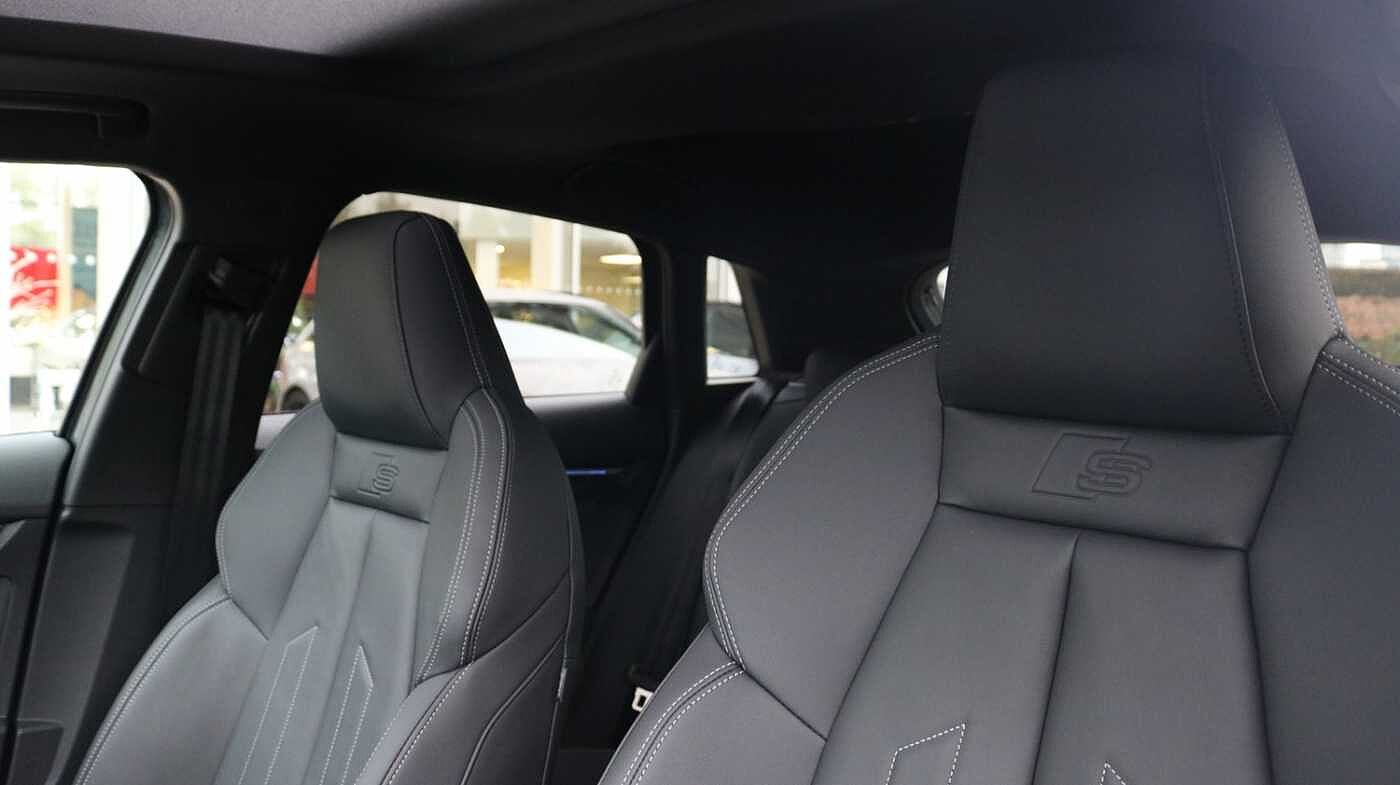 "Microsuede/leather upholstery with silver diamond stitching sports seats",