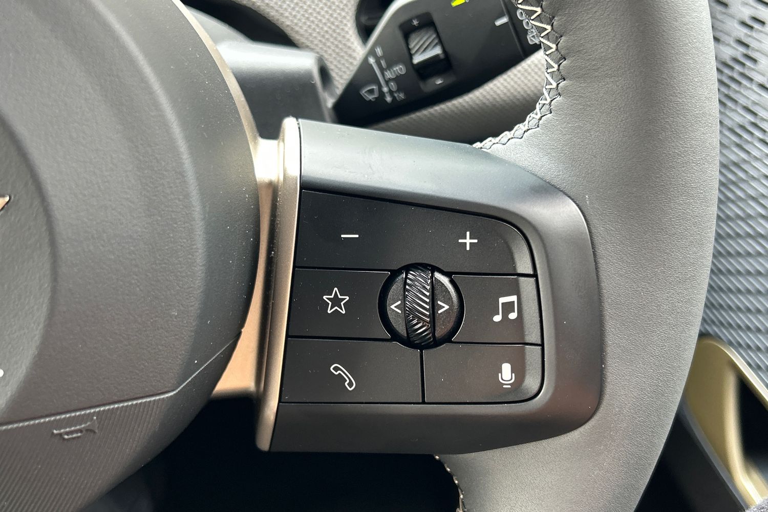 "Leather steering wheel and gear knob",