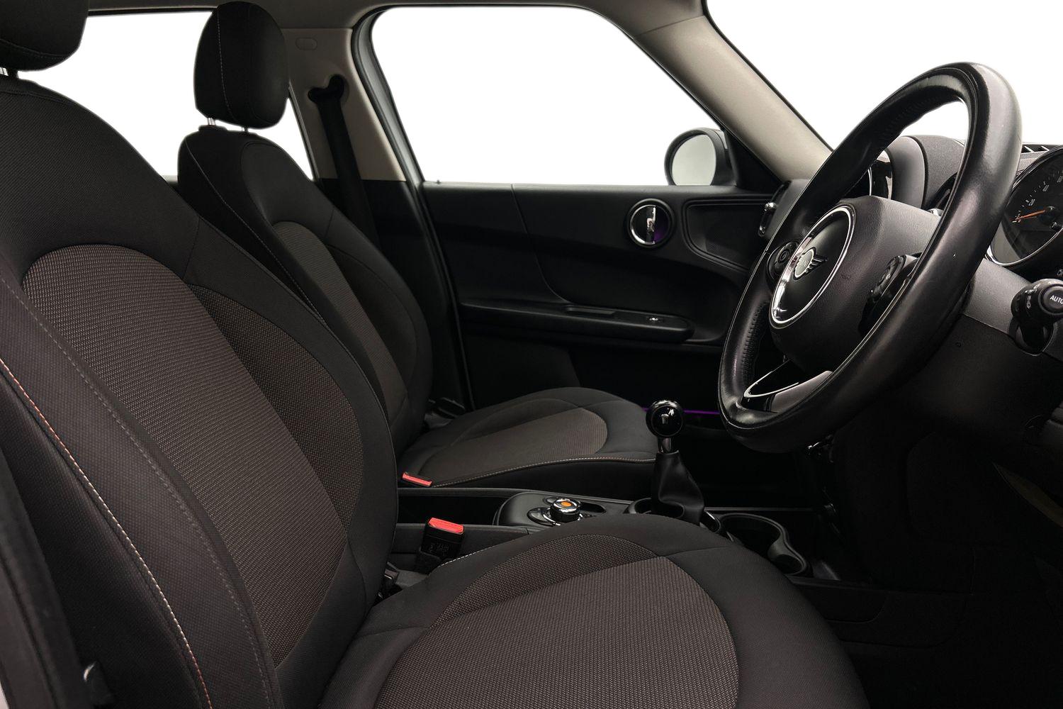 "features": "Active Guard incl speed limiting and lane departure functions with auto steering, and front collision warning with brake intervention, Automatic start/stop function with brake energy recuperation, Electro-mechanical speed dependant steering assistance, Instrument cluster, Mini E-call, MINI TeleServices, On board computer, Rear parking distance control, Double Vanos system, Fully variable valve control, High precision injection, FM tuner and DAB digital radio, Body colour fuel filler cap, Day time driving lights, Door sill strips, Dynamic brake lights, Electric windows, Heated rear window, Heated windscreen washer jets, Left exhaust tailpipe with chrome finisher, Model logo, Model logo on Tailgate, Radiator grille, Rain sensor with auto headlights, Rear fog lights, Rear window wiper, Side scuttle panel with integrated indicator, Split rear doors, Sun/heat protection glass, White indicator lenses, 12V Accessory socket in centre console, 360L luggage compartment capacity, 4 lashing eyes in luggage compartment, 40:20:40 split folding rear seats, Chrome interior highlights, Colour line - Carbon black, Cupholders, English handbook, Front headrests, Glove compartment, Headliner with grab handles and clothes hooks, Height and length steering column adjustment, Interior lighting with 12 basic colours selectable via toggle switch in roof, Isofix rear child seat preparation, Leather gearshift lever and handbrake gaiters, LED reading lights, vanity mirror lights, front foot well light and spotlight on front seats, Manual air conditioning, Mechanical seat adjustment, driver seat height adjust, forward/back and front seats backrest, Multifunction steering wheel, Passenger seat height adjuster, Rear headrests, Storage compartments in doors, Sunvisors with vanity mirrors, Excitement pack - Countryman, Navigation pack - Countryman, 2 tone horn, 3 point seatbelts on all seats, 6 Airbags - front, side, head and seat belt tensioners, Anti-lock braking system (ABS), DSC - Dynamic Stability Control, Electronic handbrake, Front and rear disc brakes, Hill start assist, Tyre pressure monitoring system, Alarm system with tilt sensor, monitoring doors, bonnet interior and tailgate, Auto drive away locking, Deadlocking function, Electronic vehicle immobiliser, Locking wheel bolts, Start/stop toggle with keyless go, Tool kit, ",