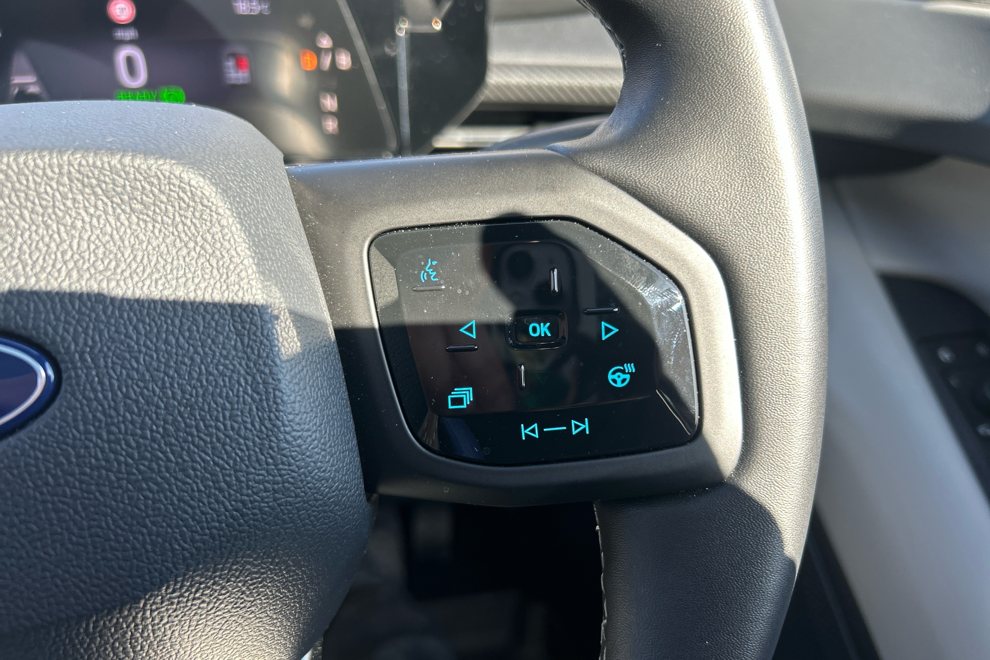 "Smooth synthetic leather steering wheel",