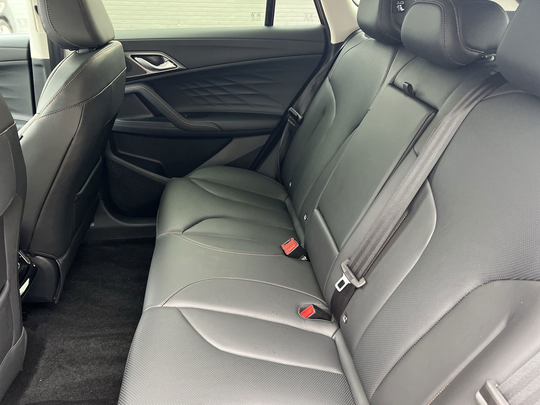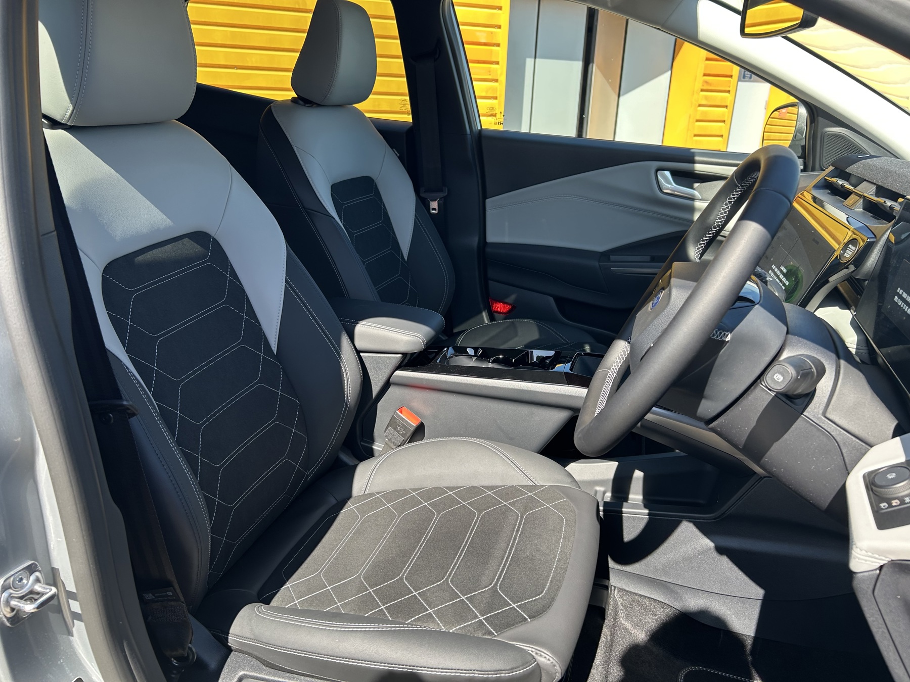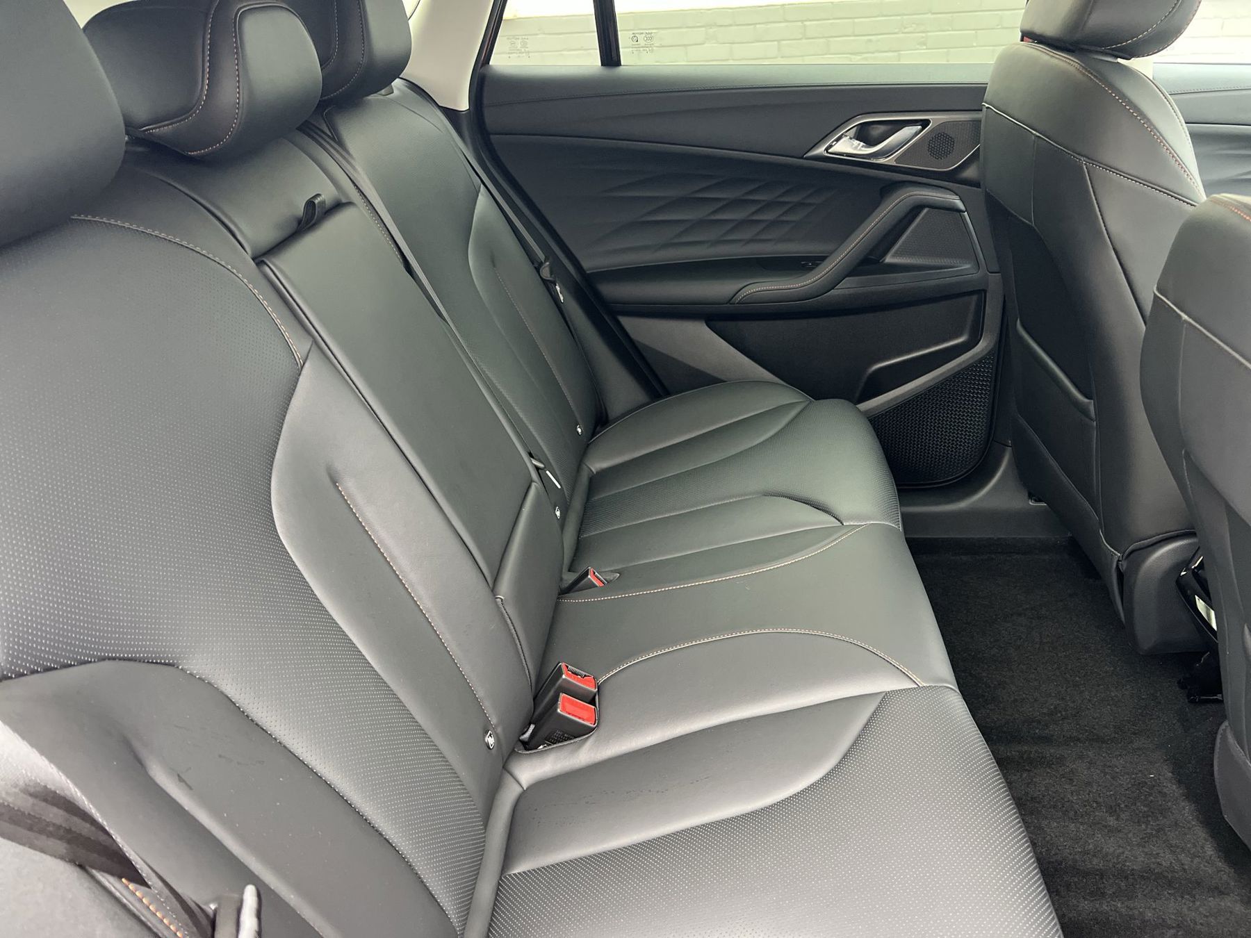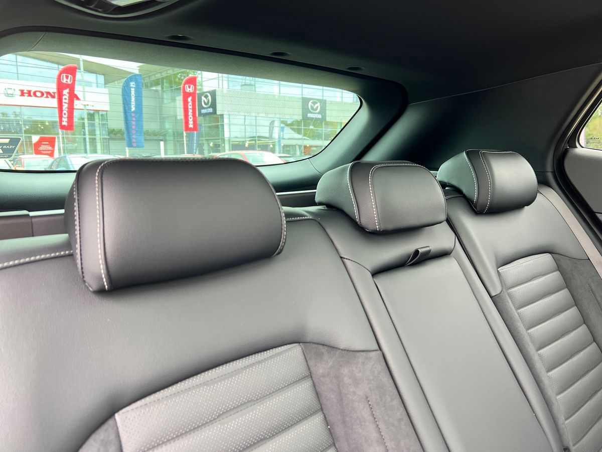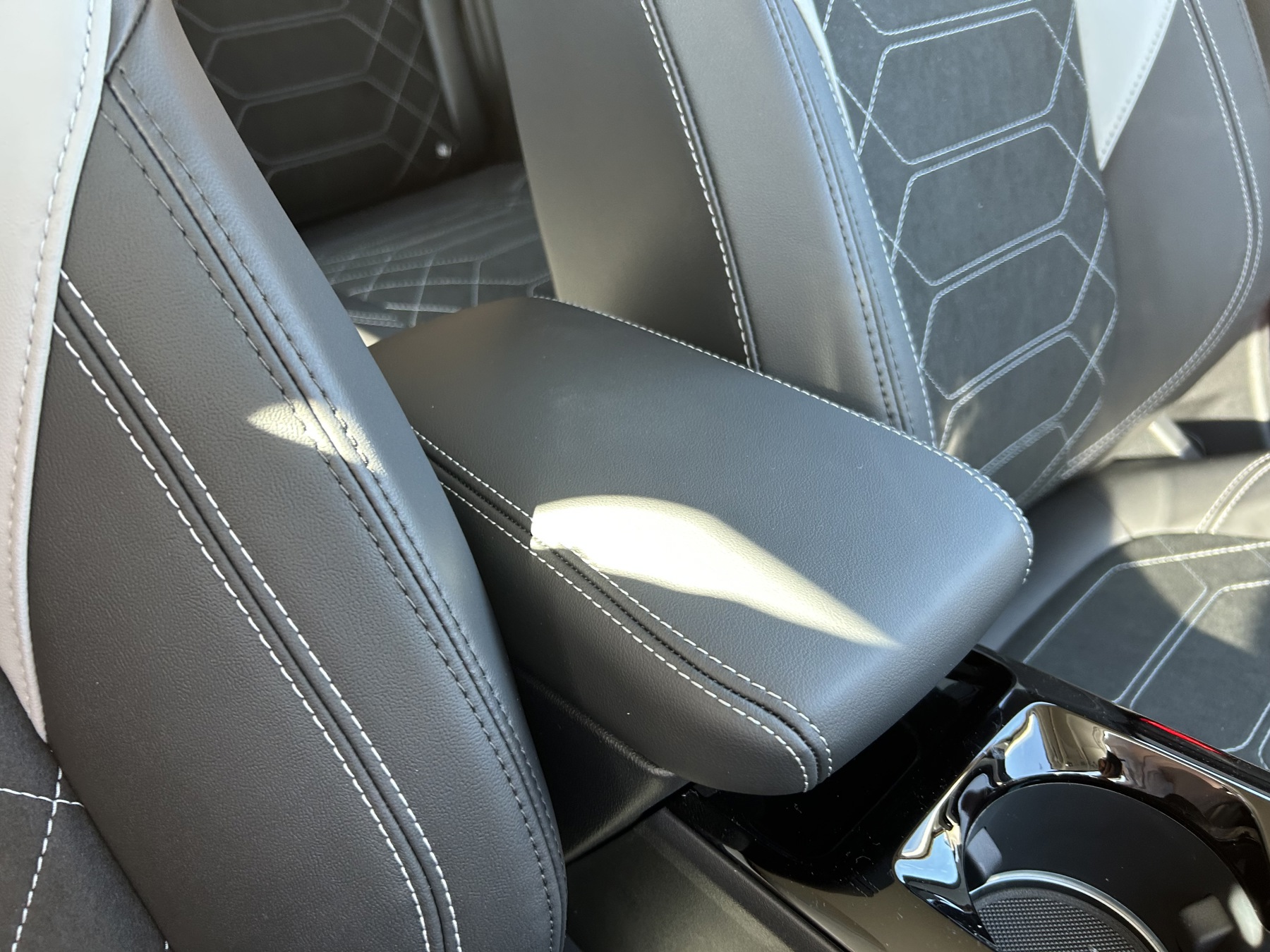 "Premium sensico leather upholstery with metal grey stitching",