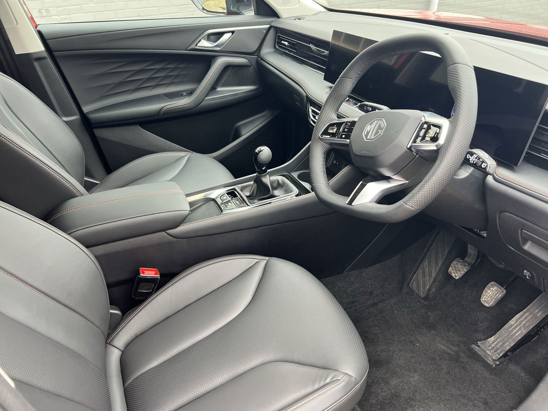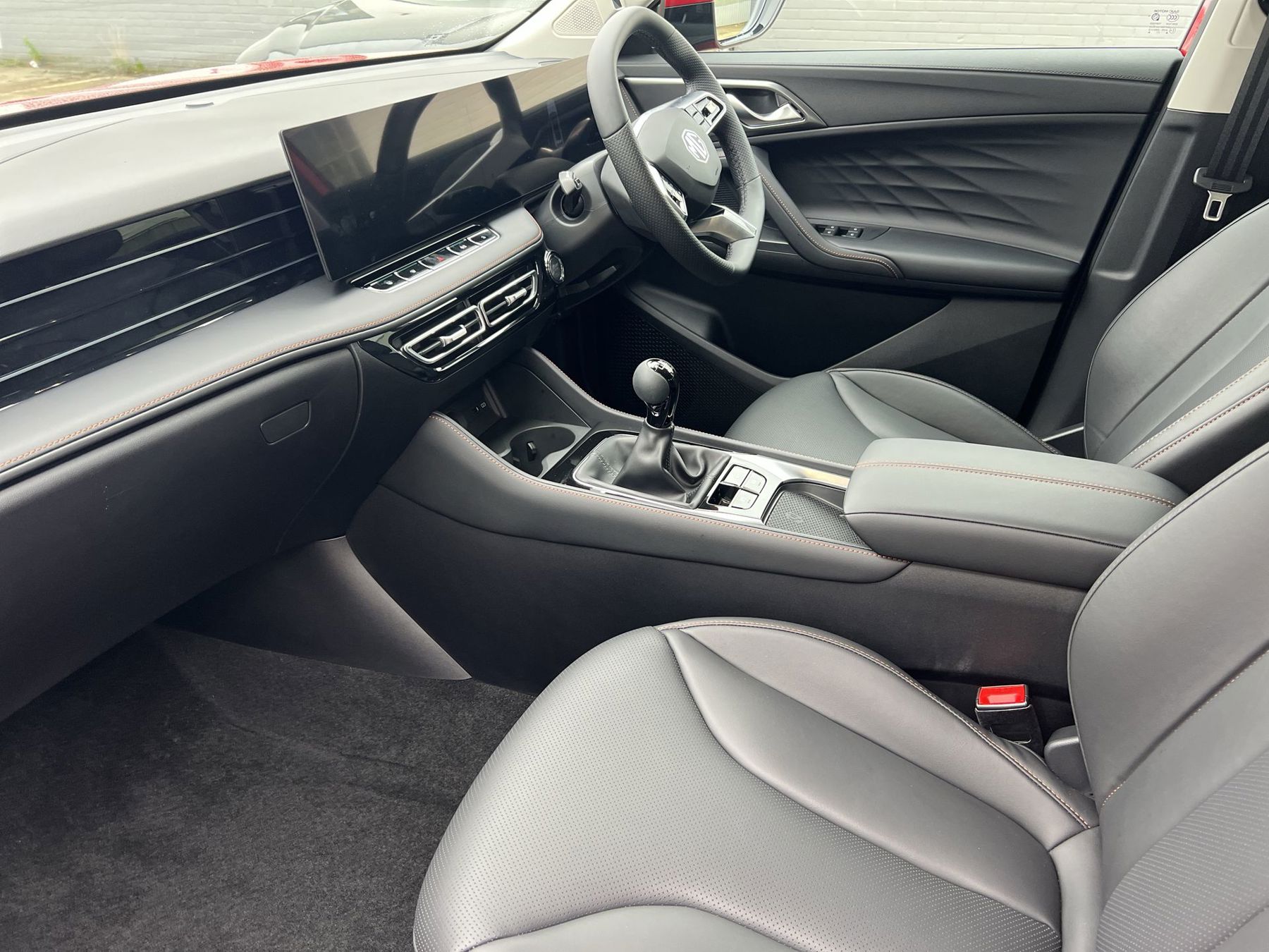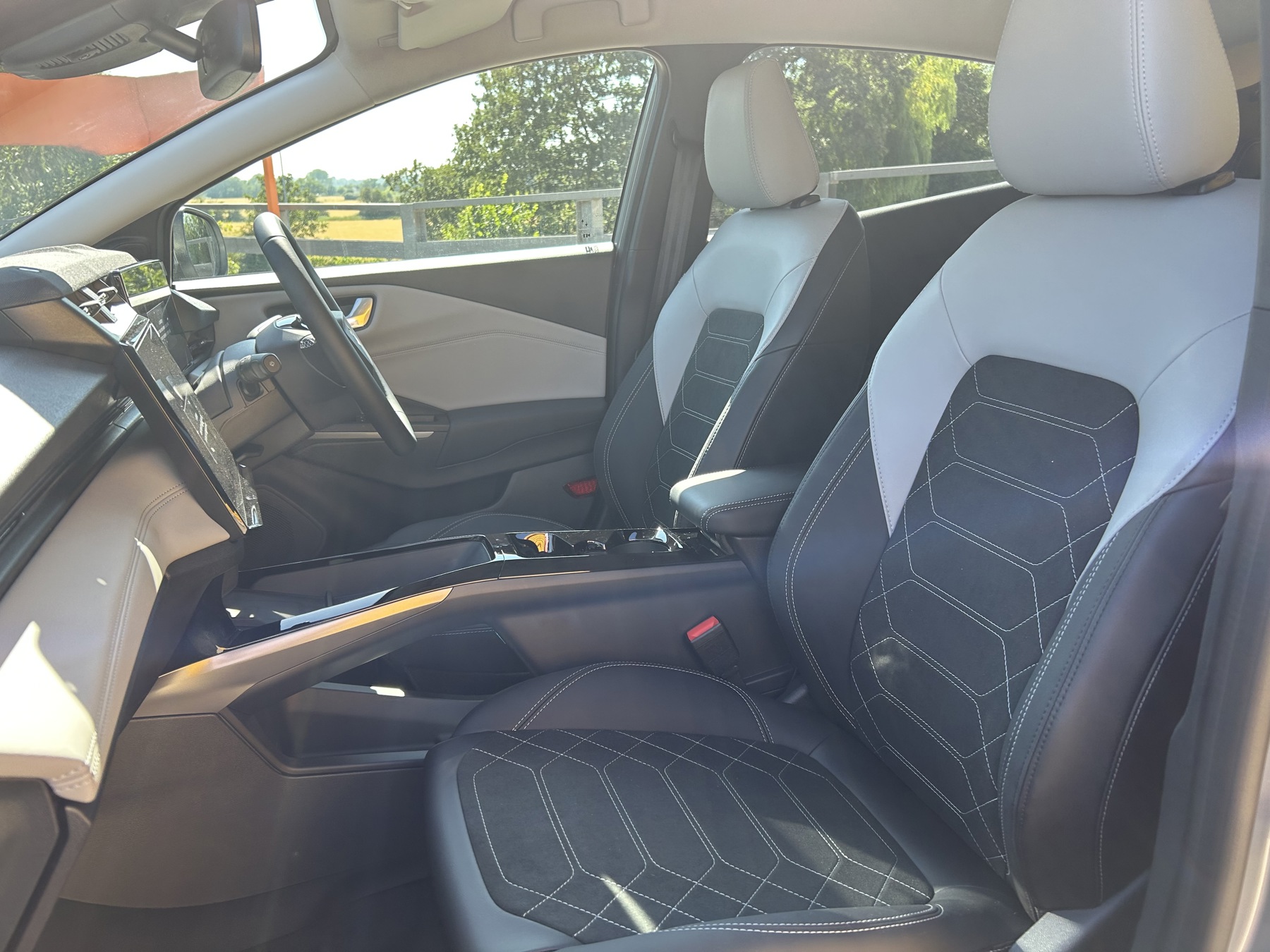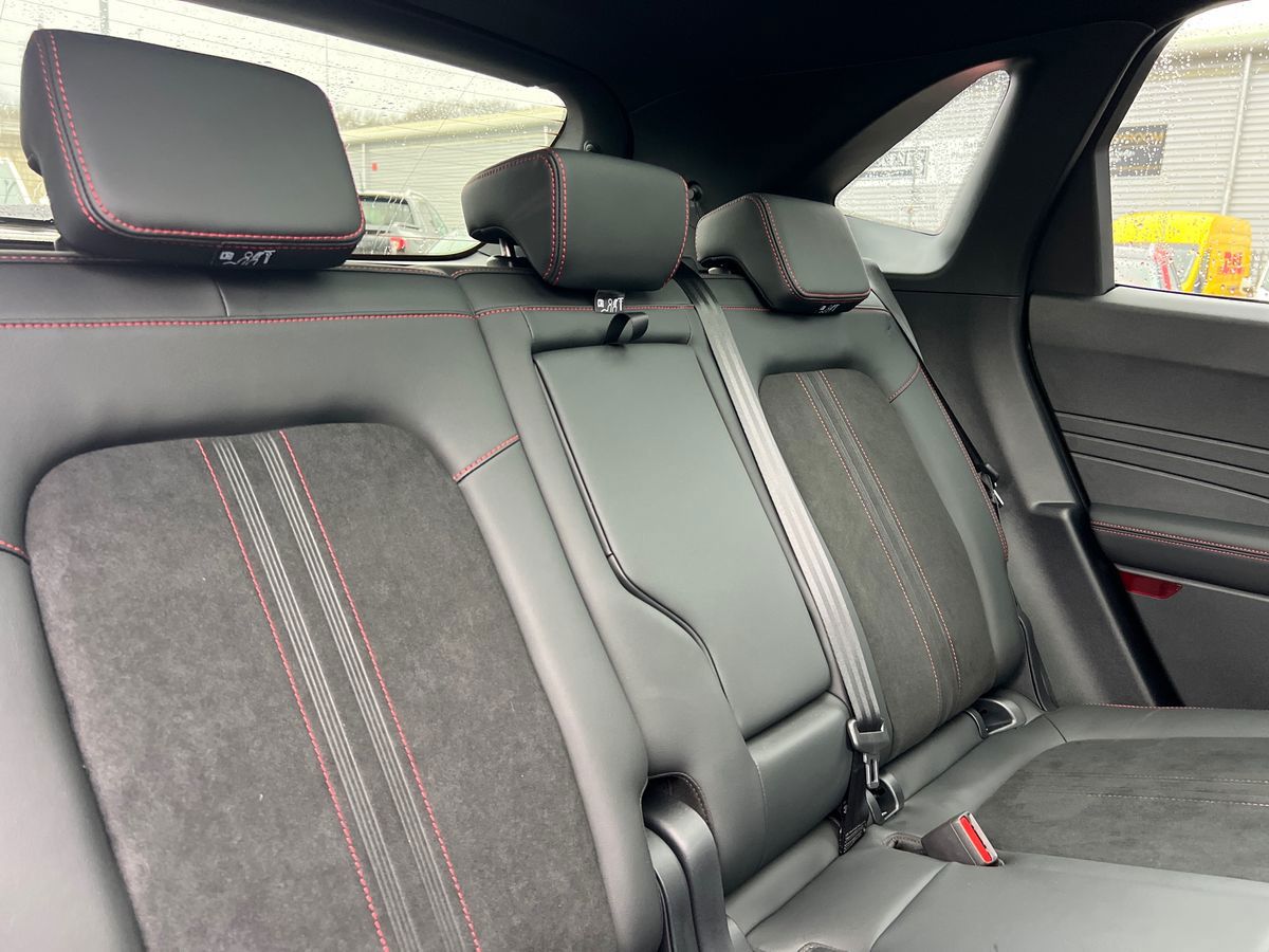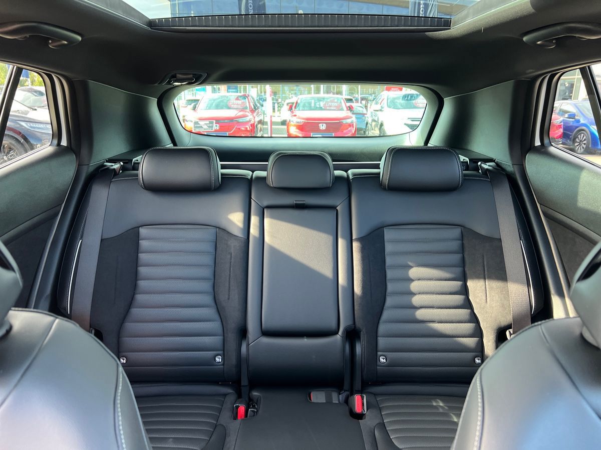 "Premium sensico leather upholstery with metal grey stitching",