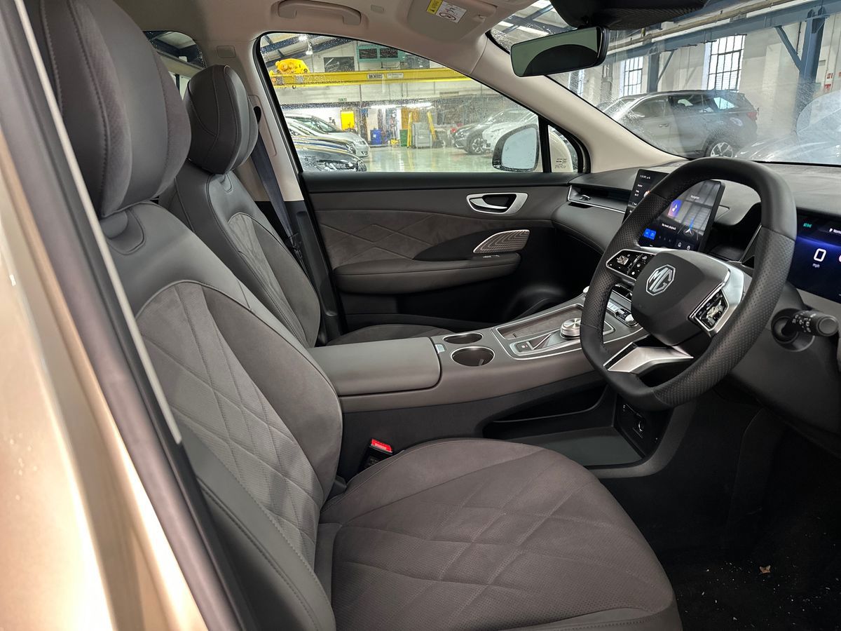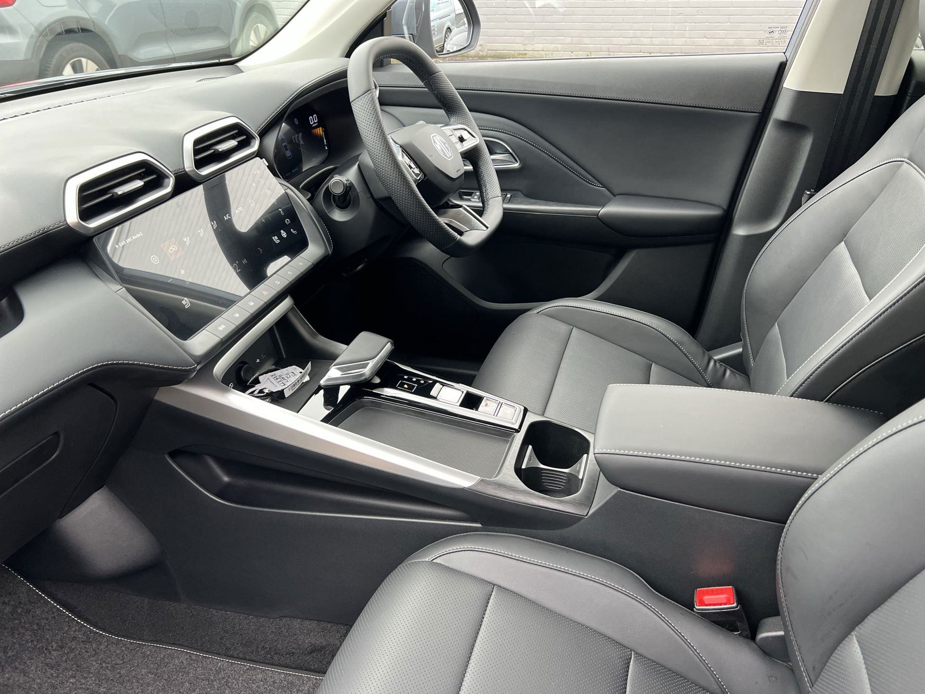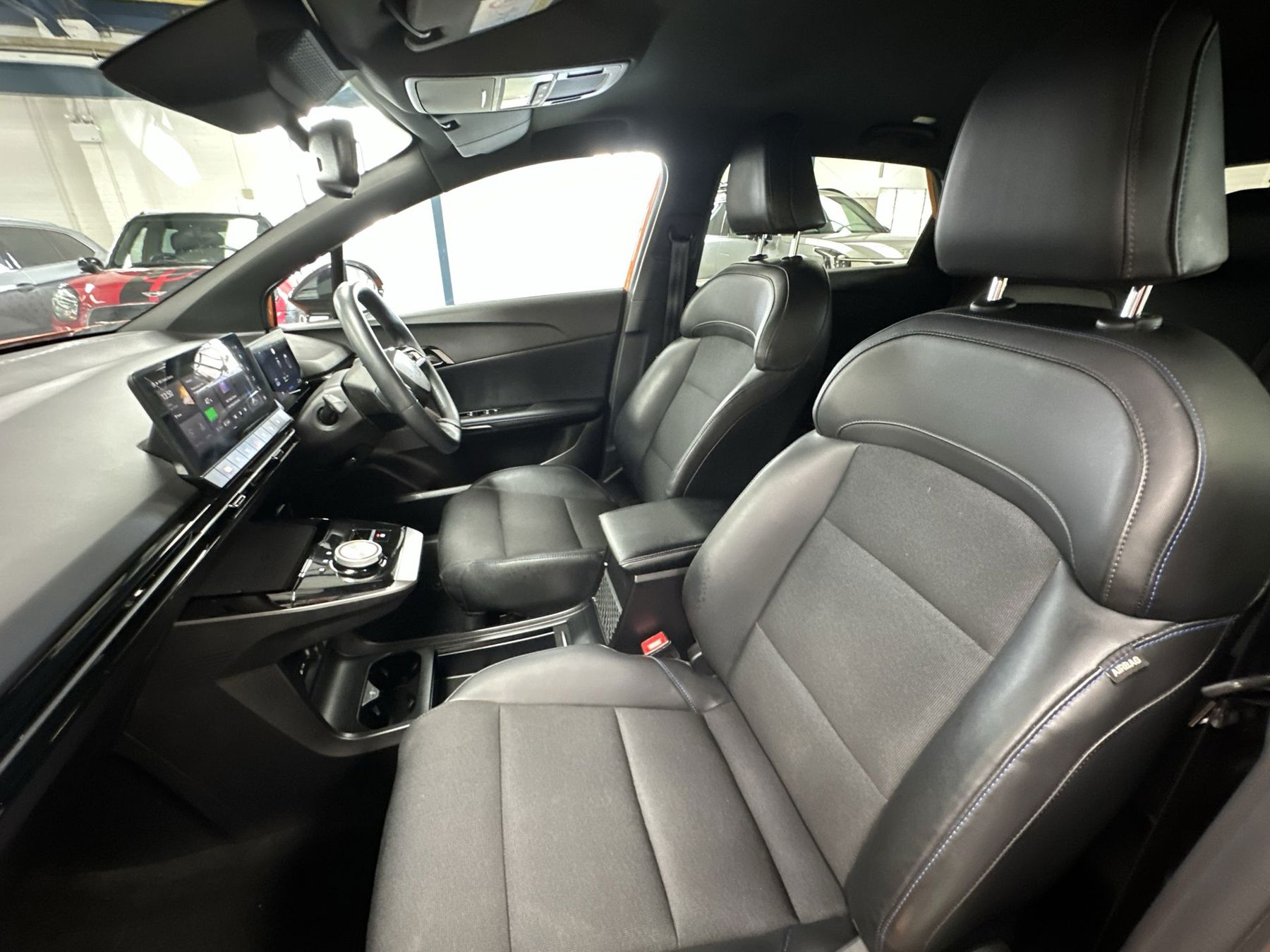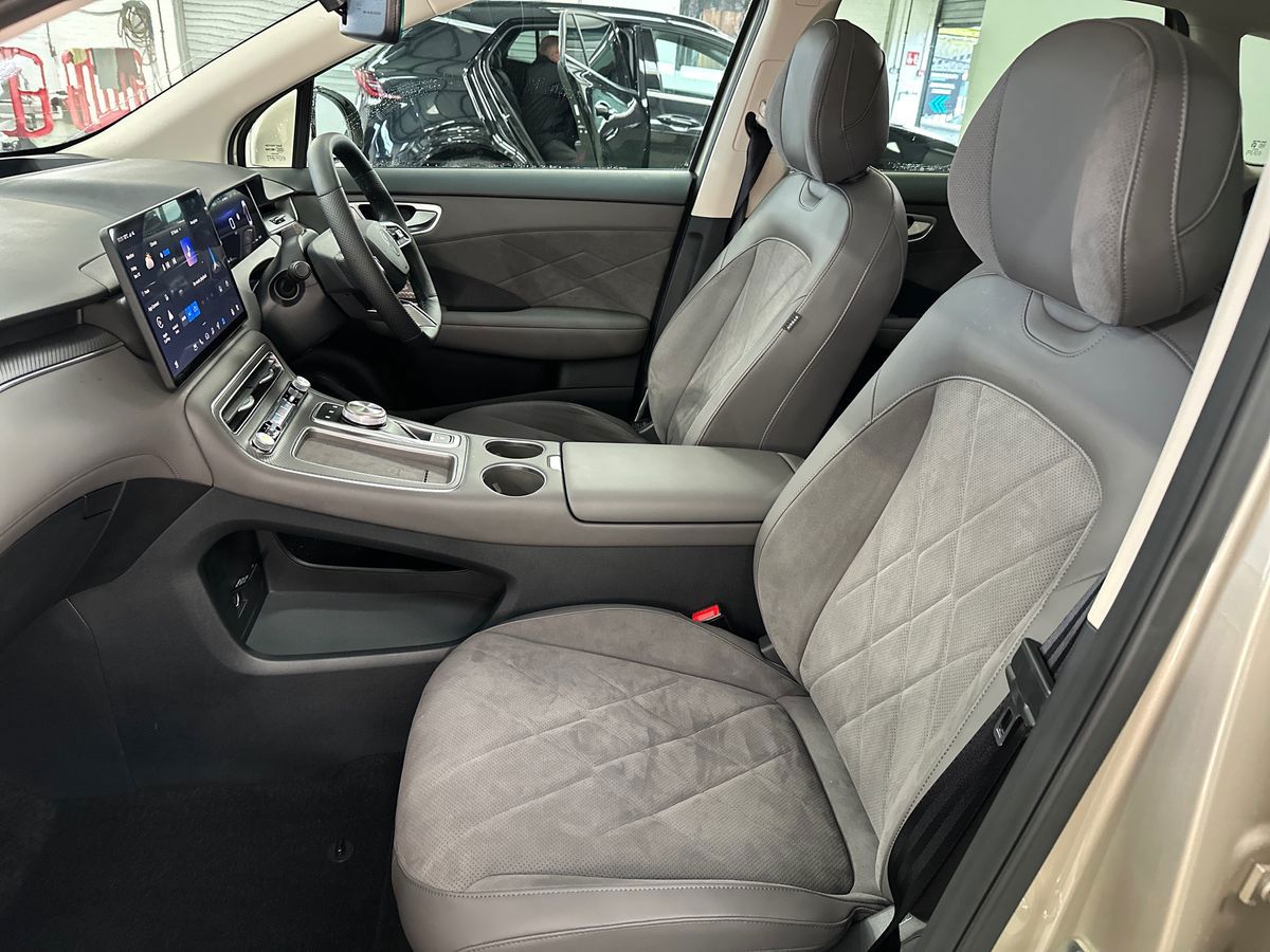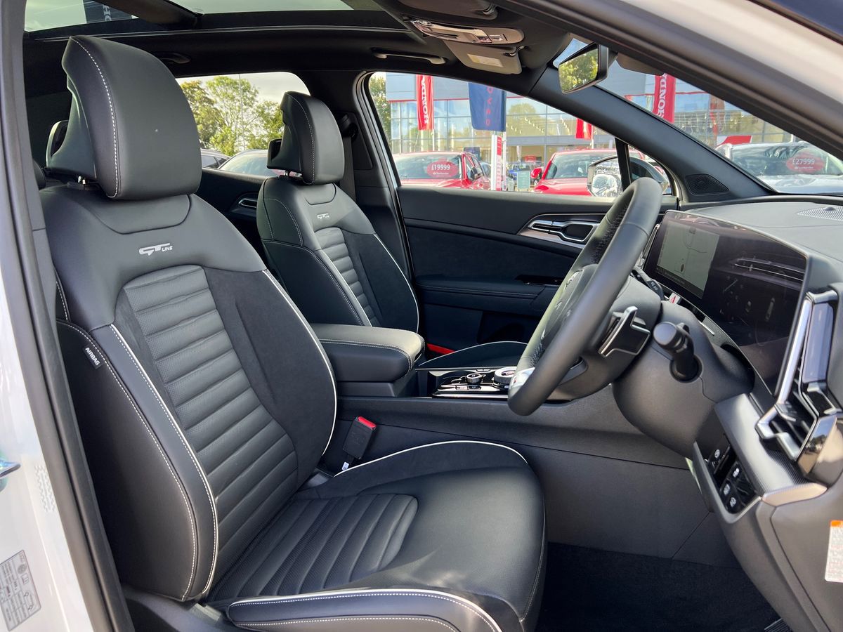 "Premium sensico leather upholstery with metal grey stitching",
