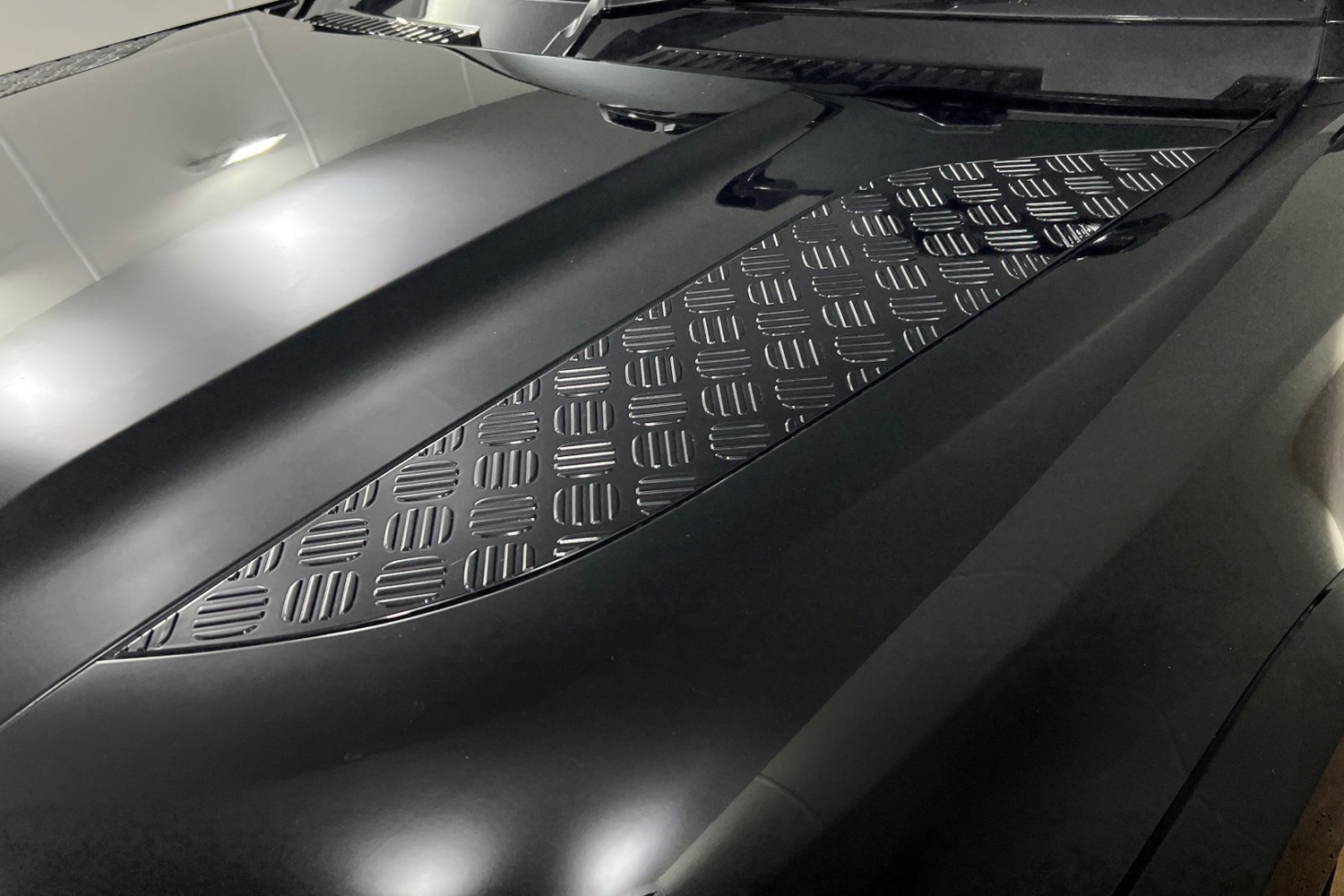 "Honeycomb structure radiator grille in grained matt black",