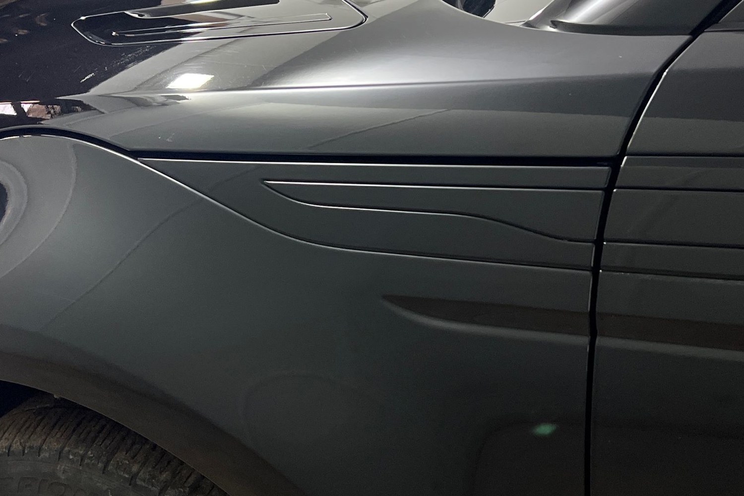 "Grained matt black side air inlets with matt aluminium silver inlay",