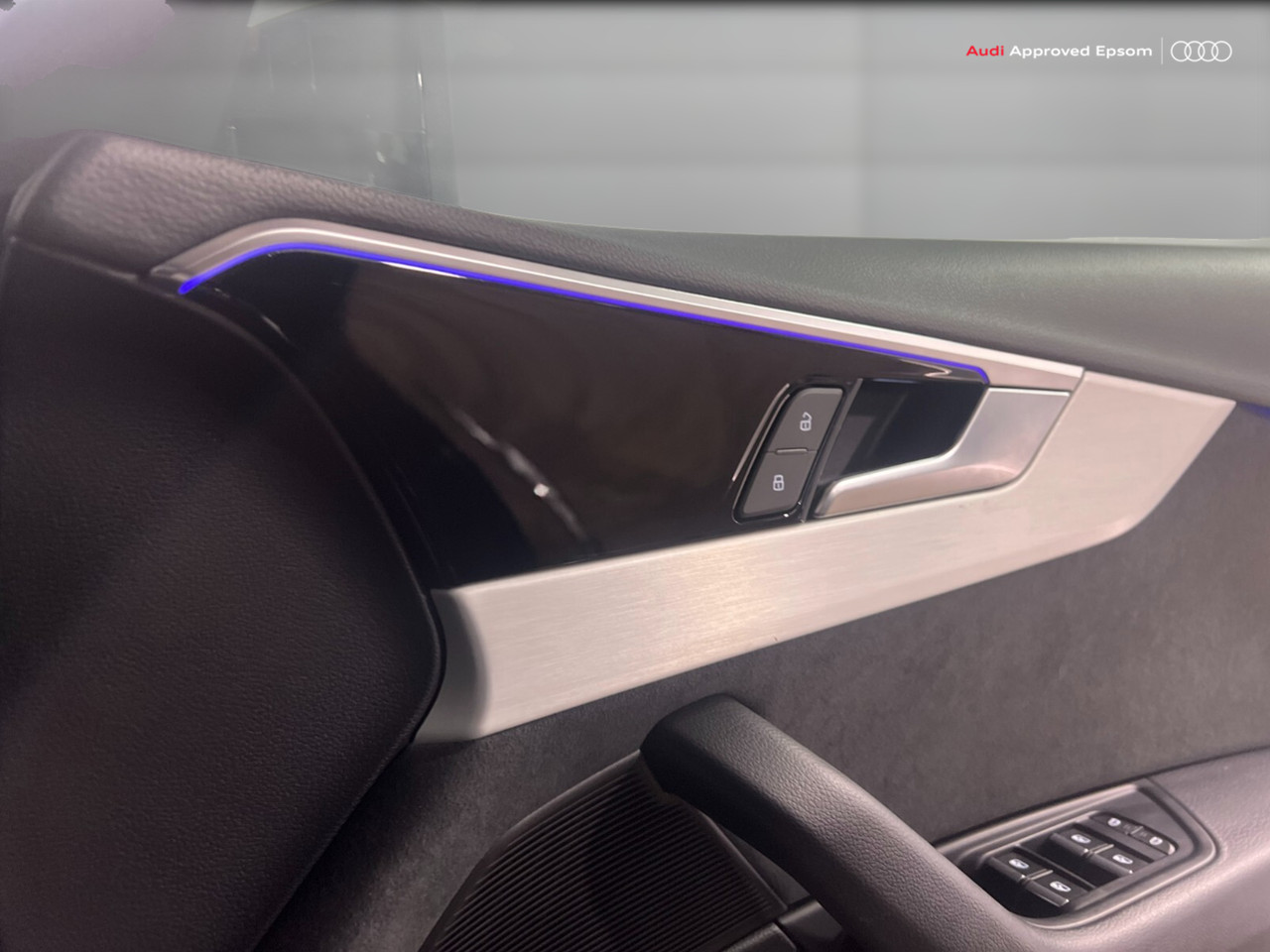 "Illuminated door sill trims with S logo",
