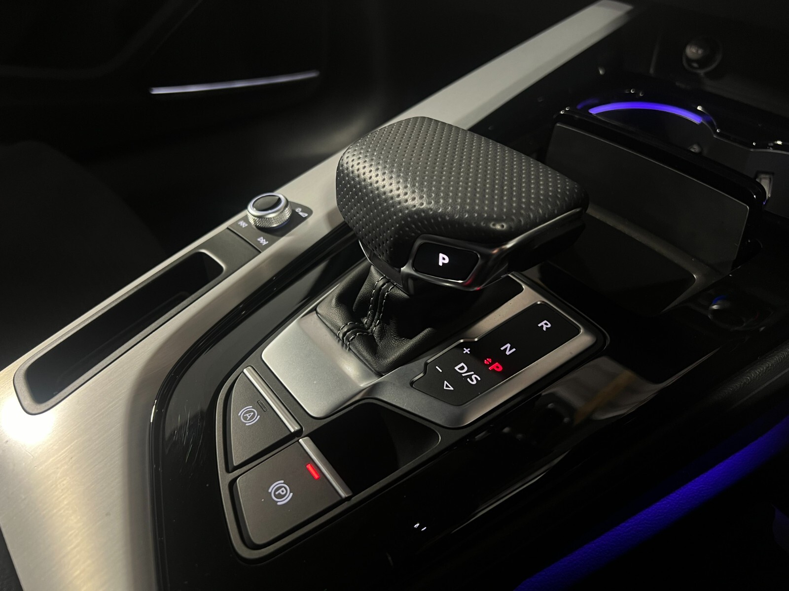 "Black perforated leather gearknob",