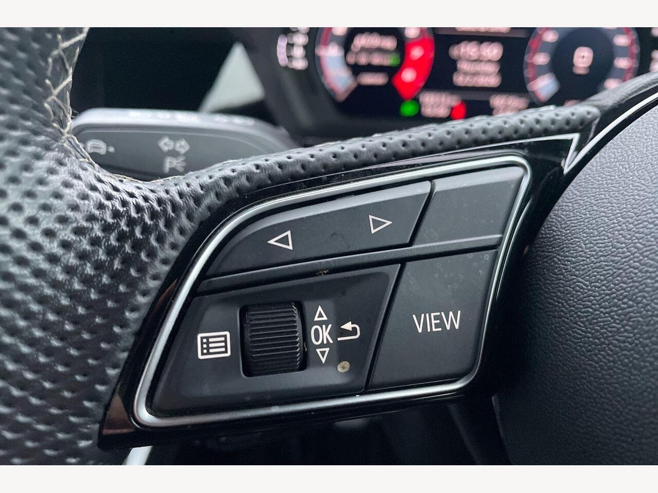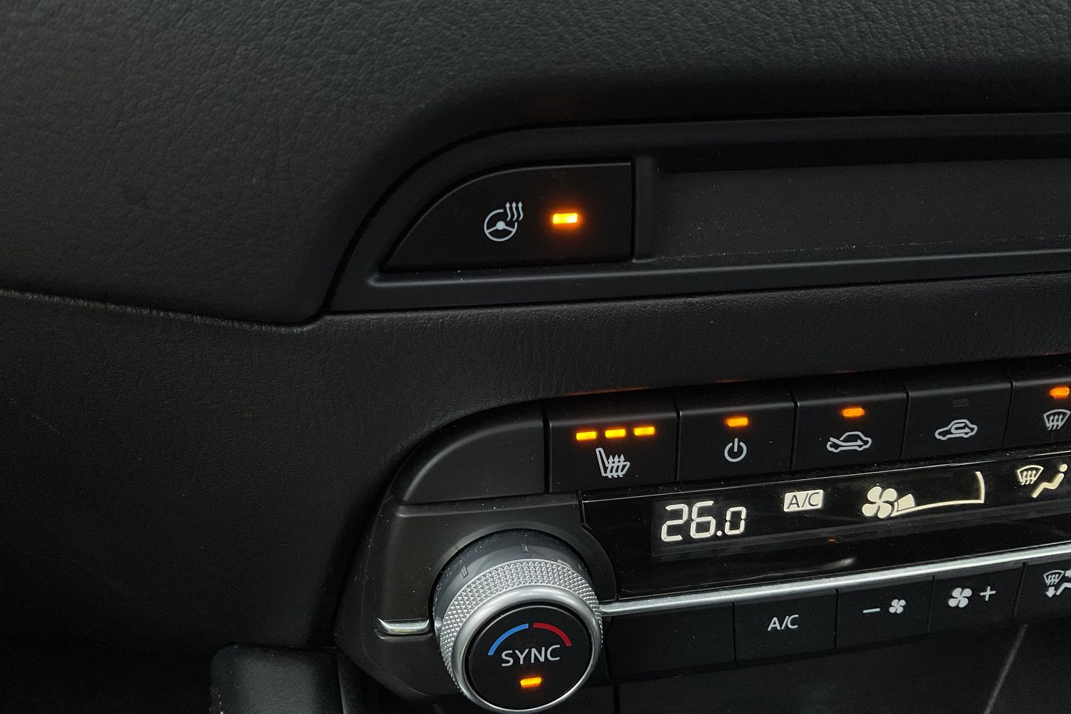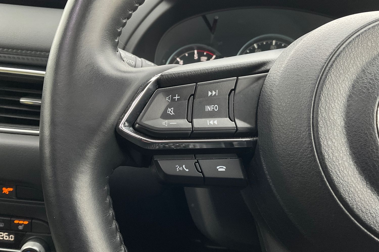 "Heated leather wrapped multi function steering wheel with satellite buttons",
