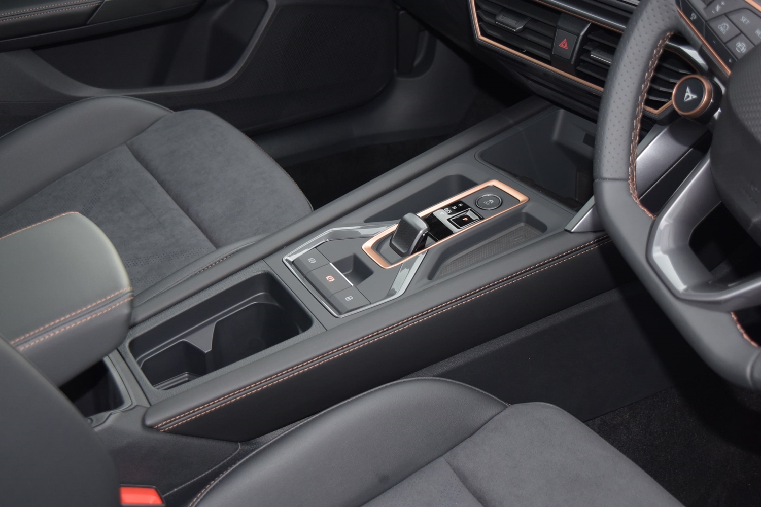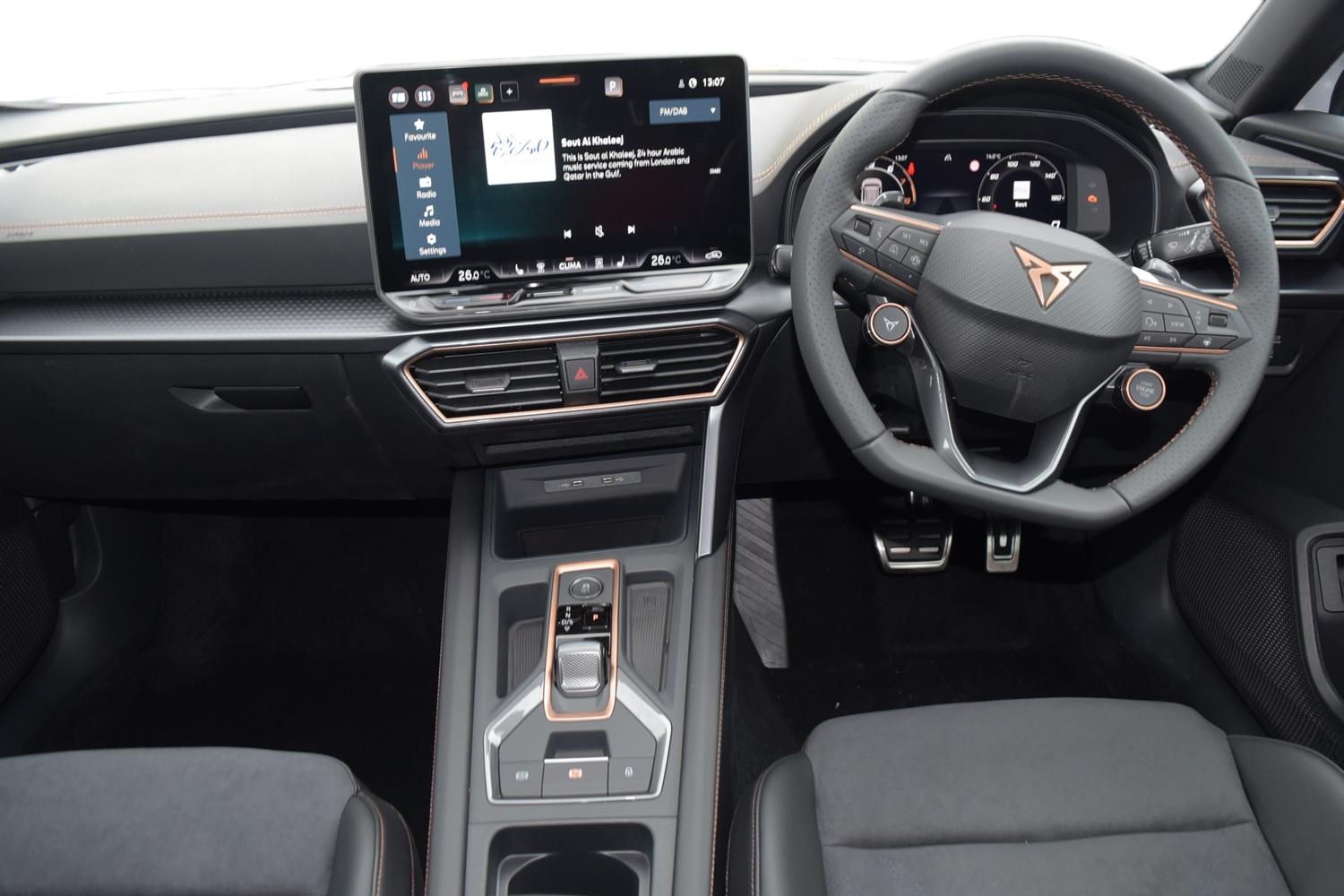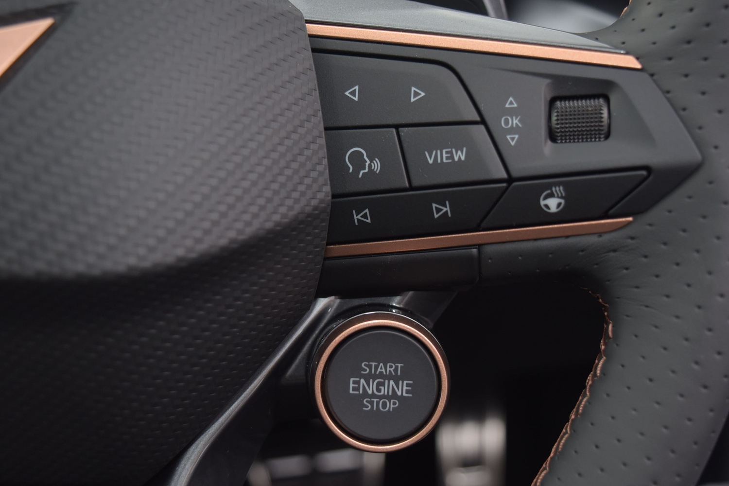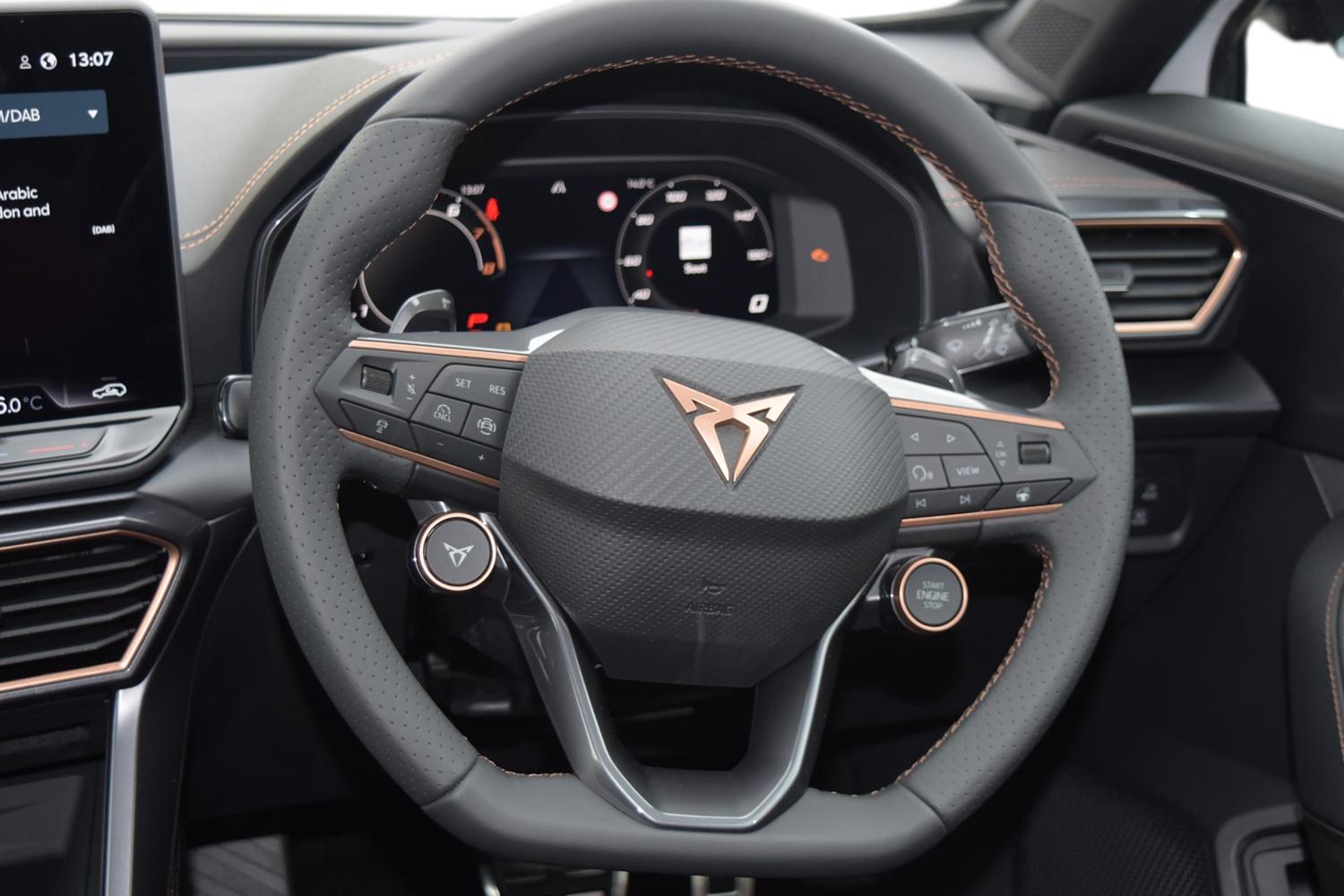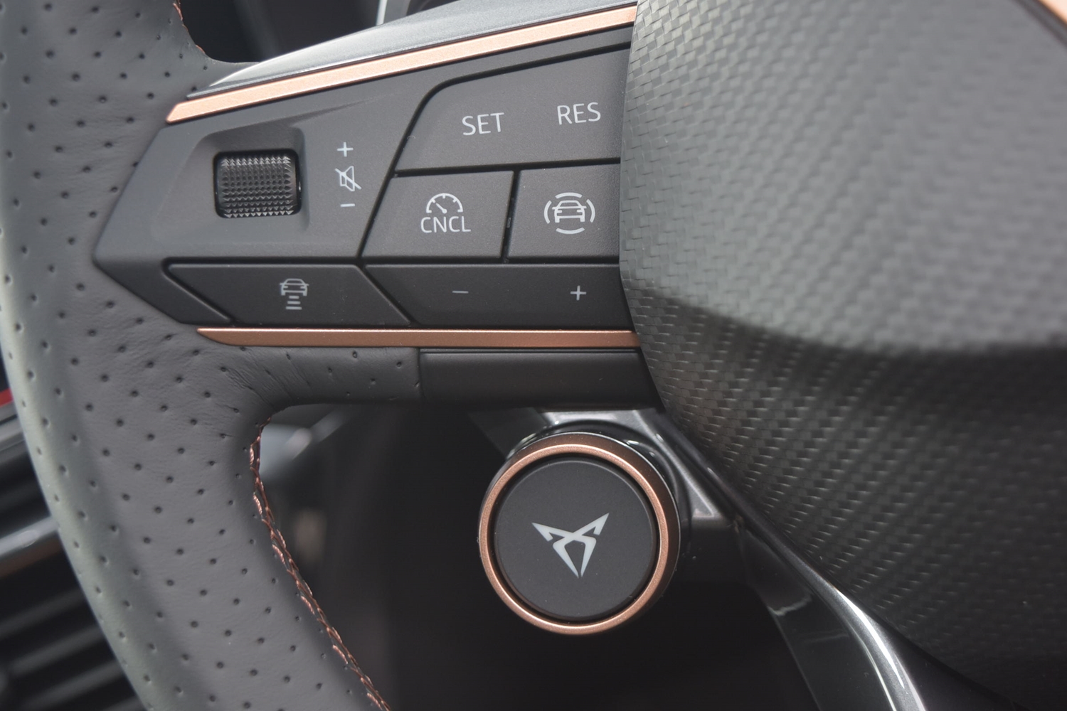 "CUPRA emblem on steering wheel",