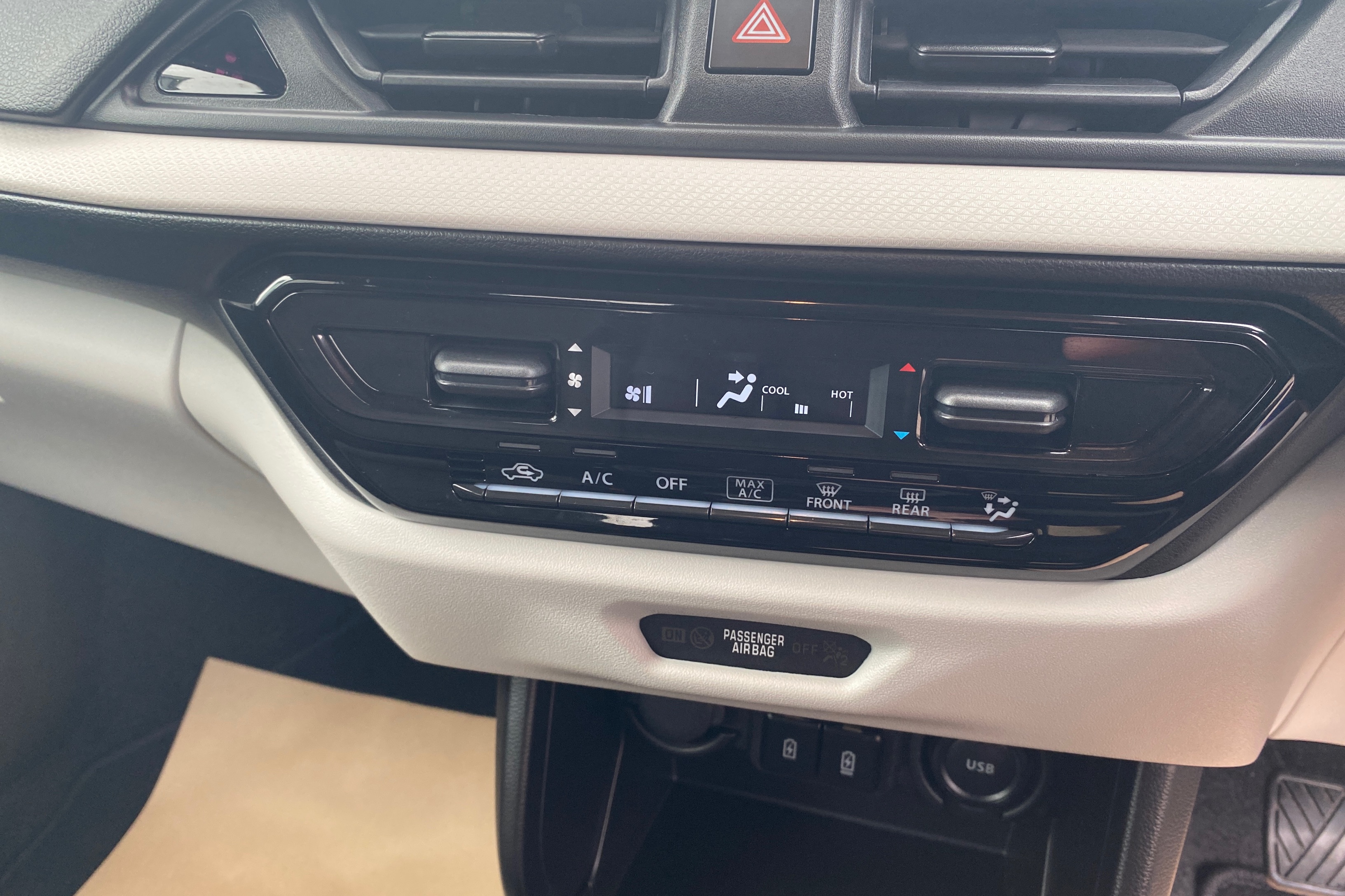 "12V outlet in front and tray",