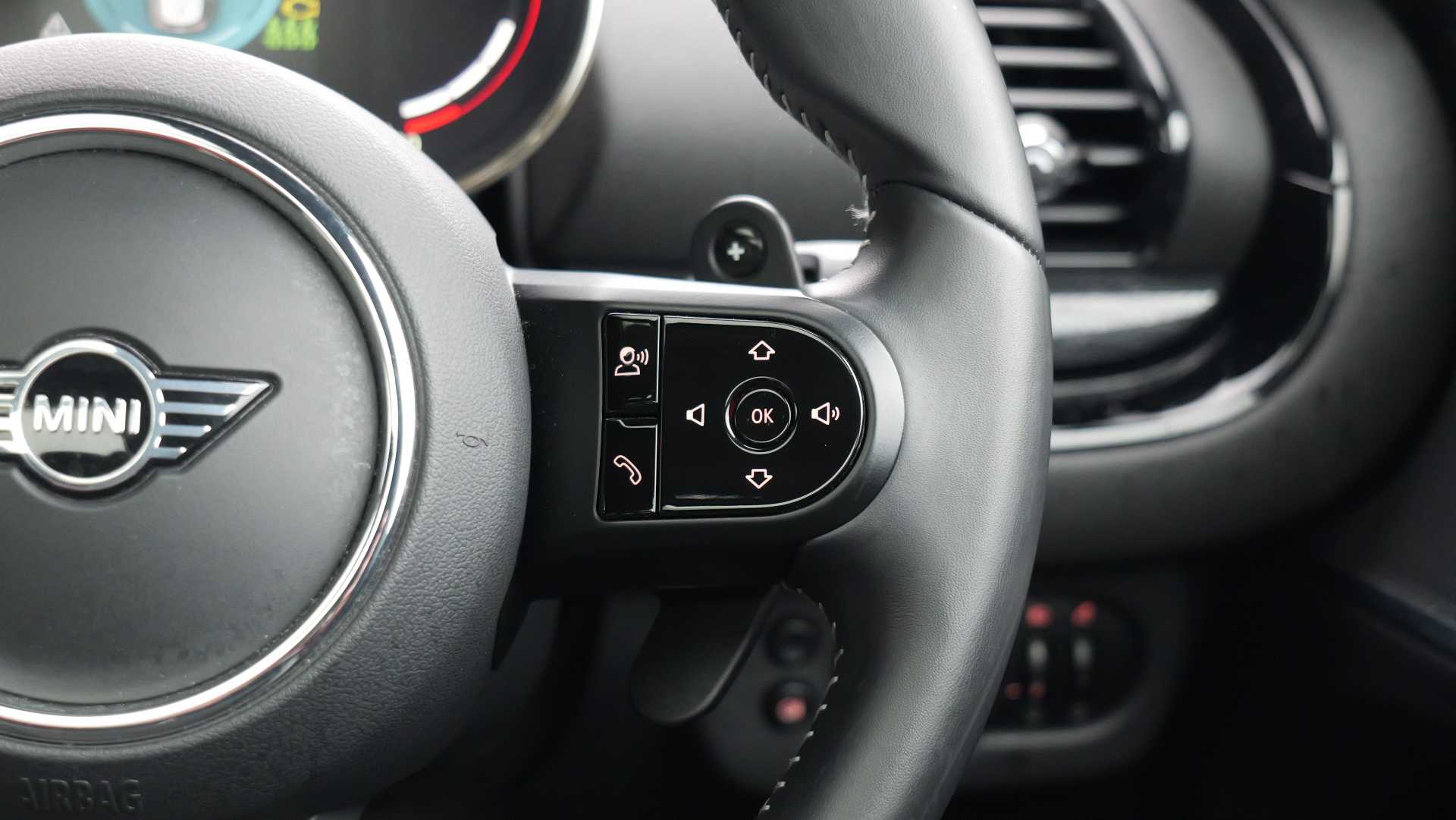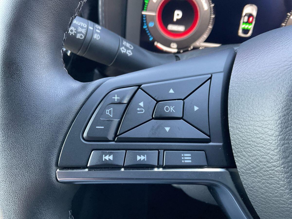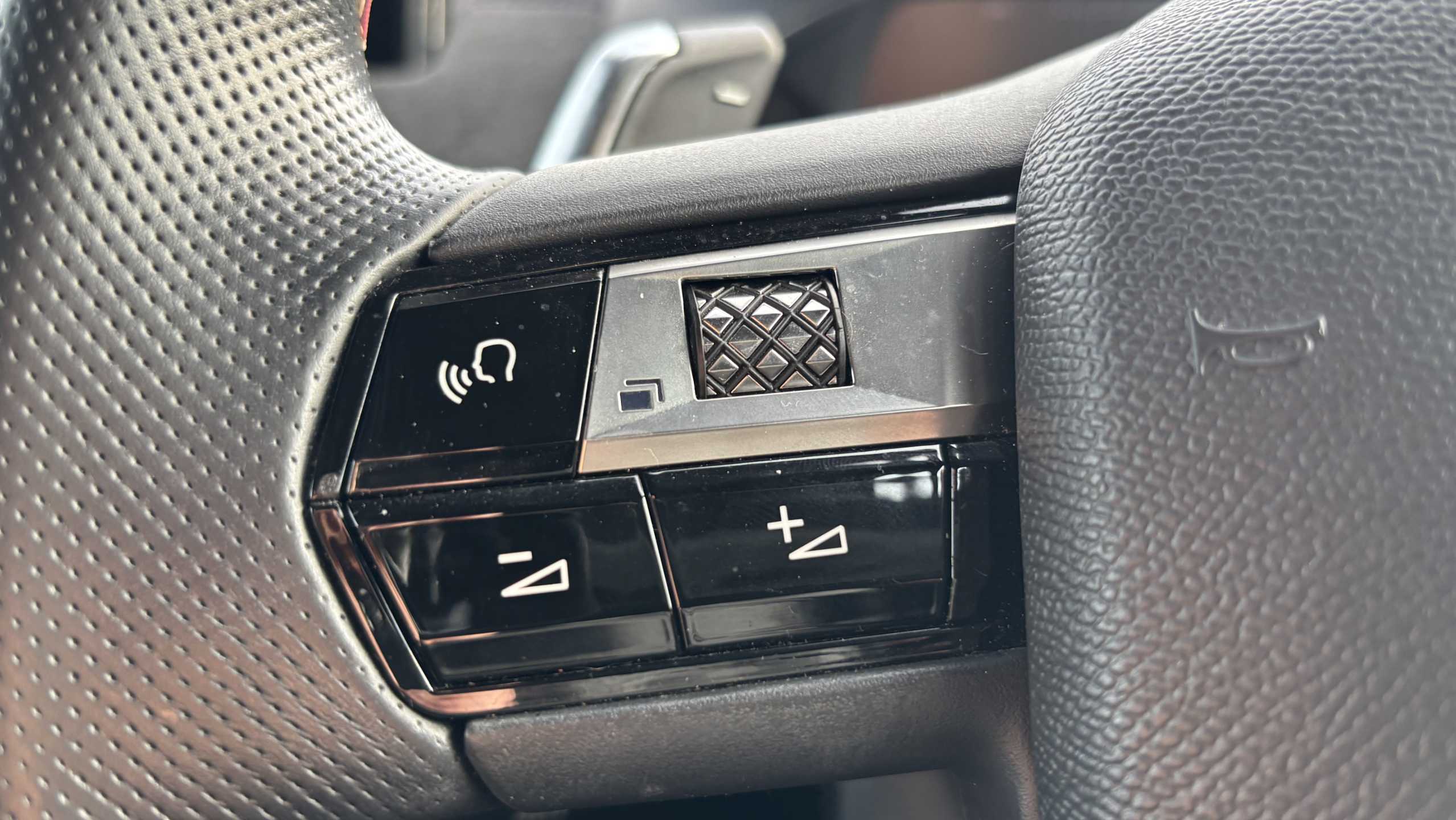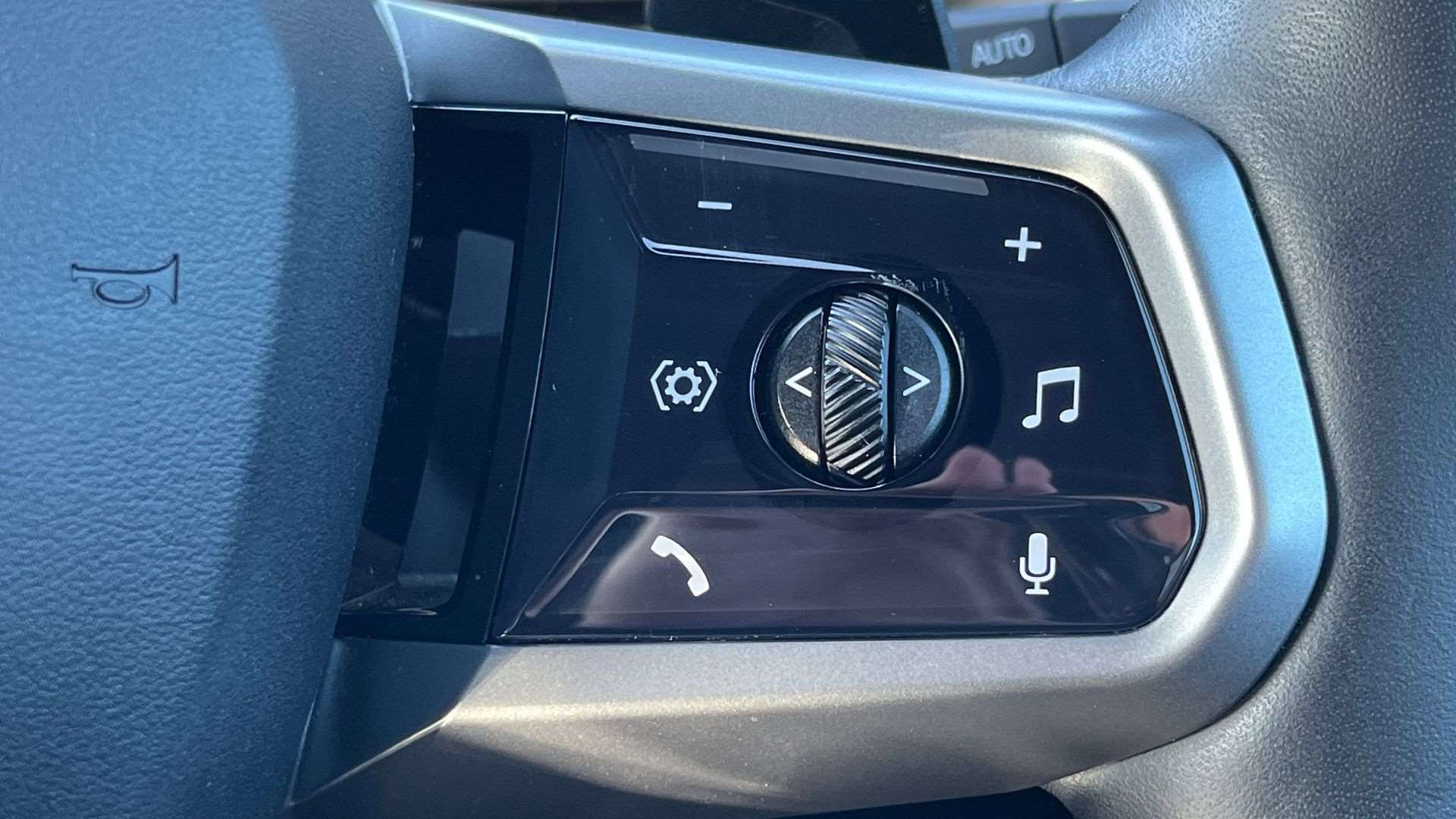 "Audio controls mounted on steering wheel",
