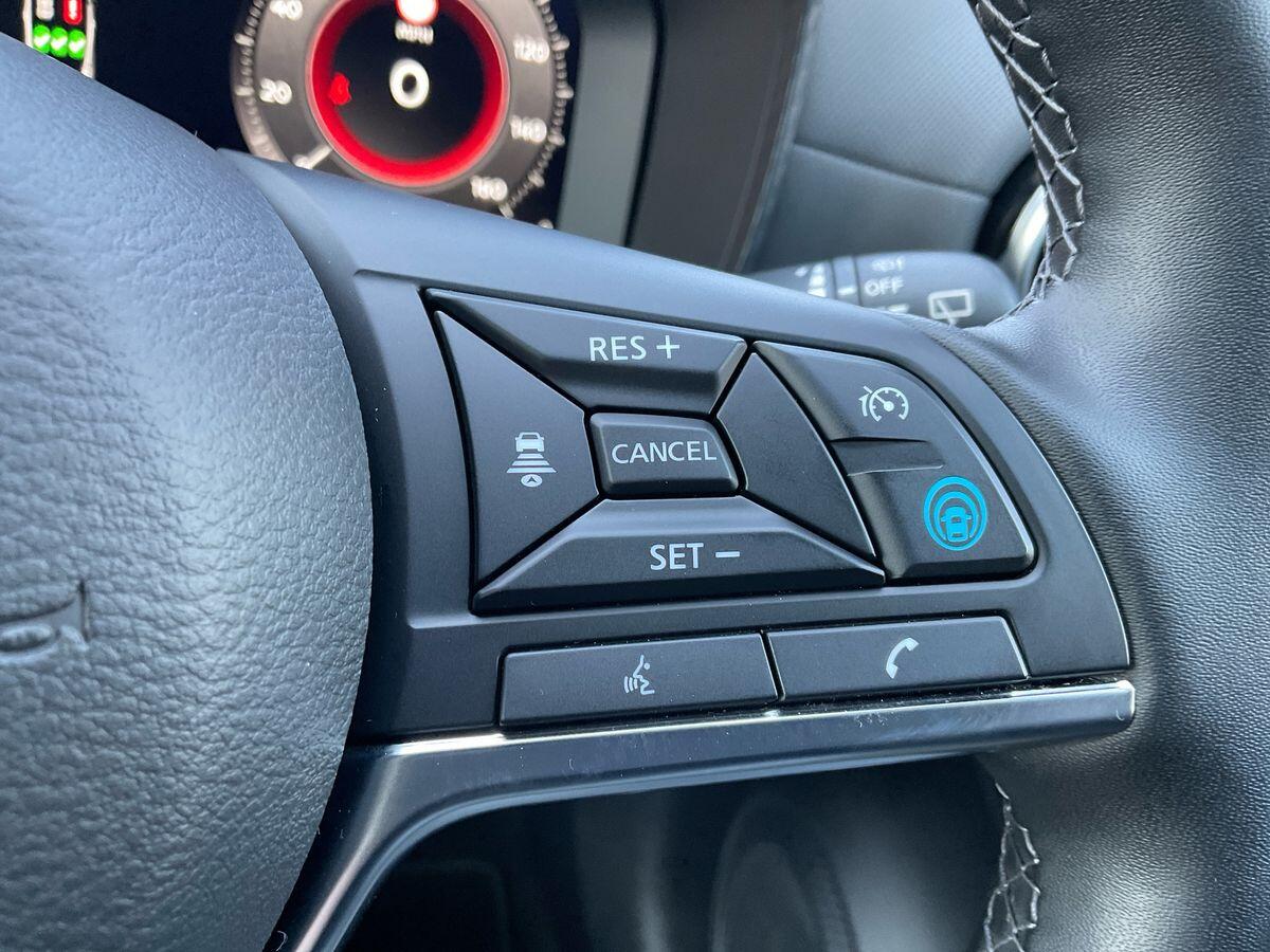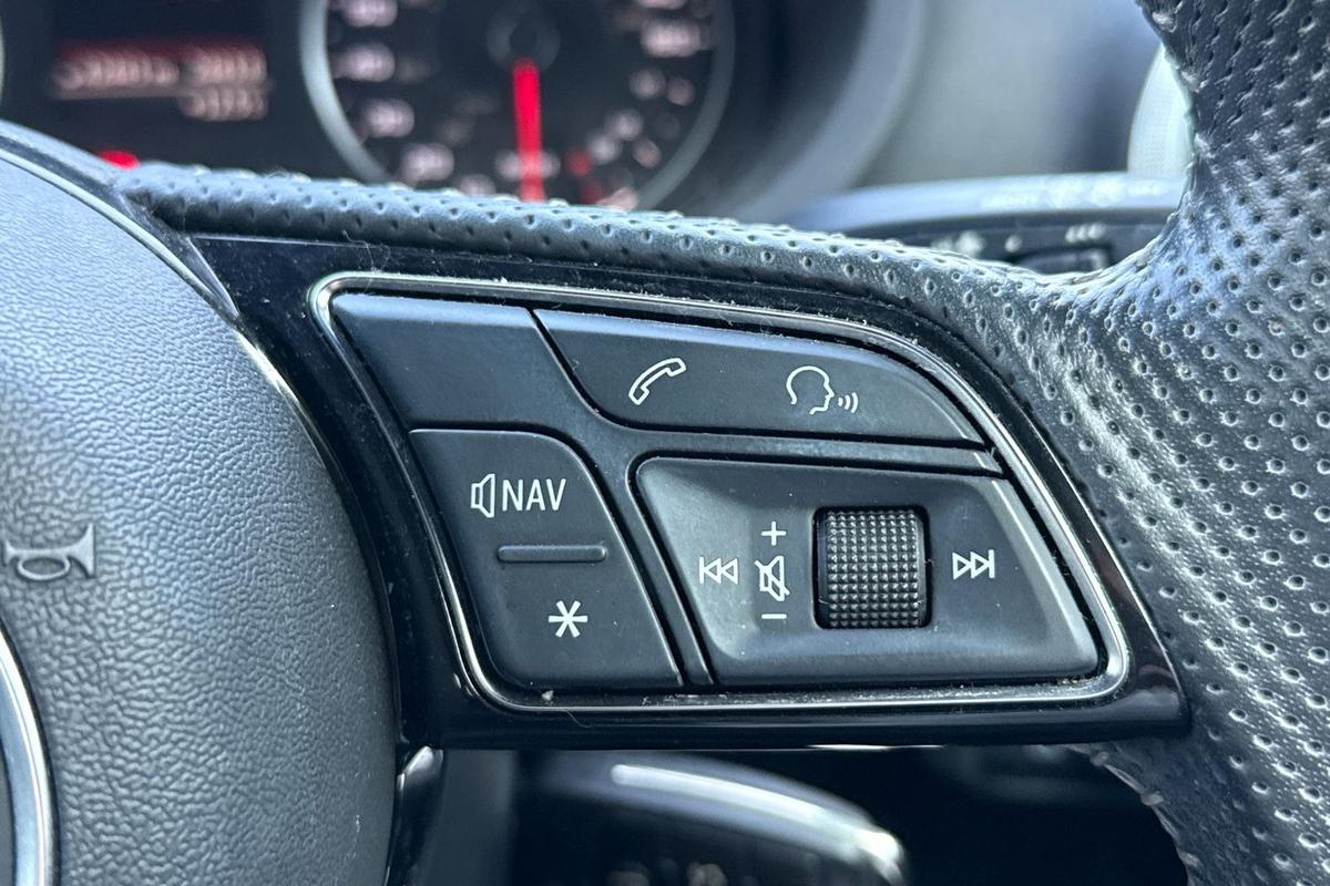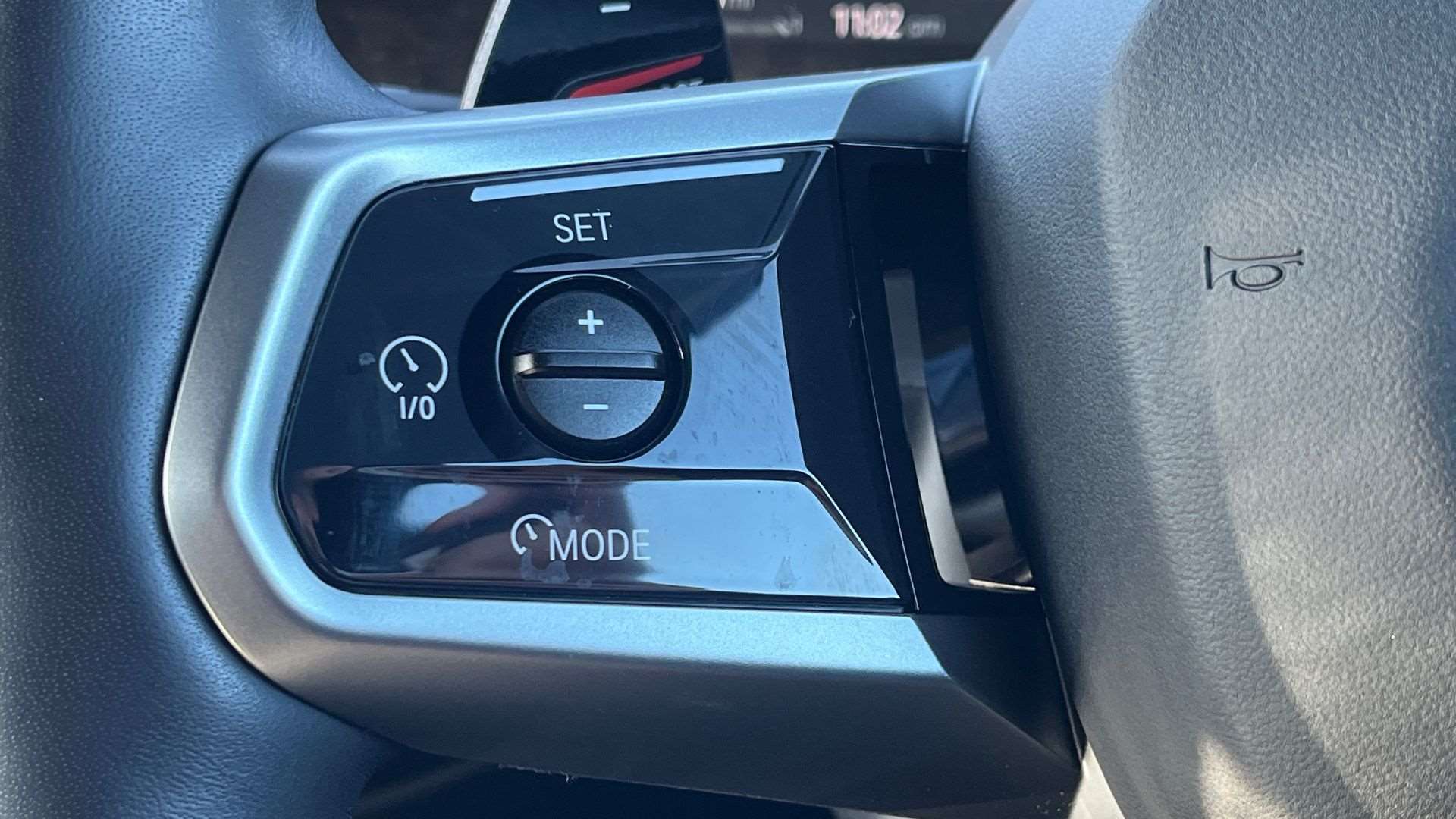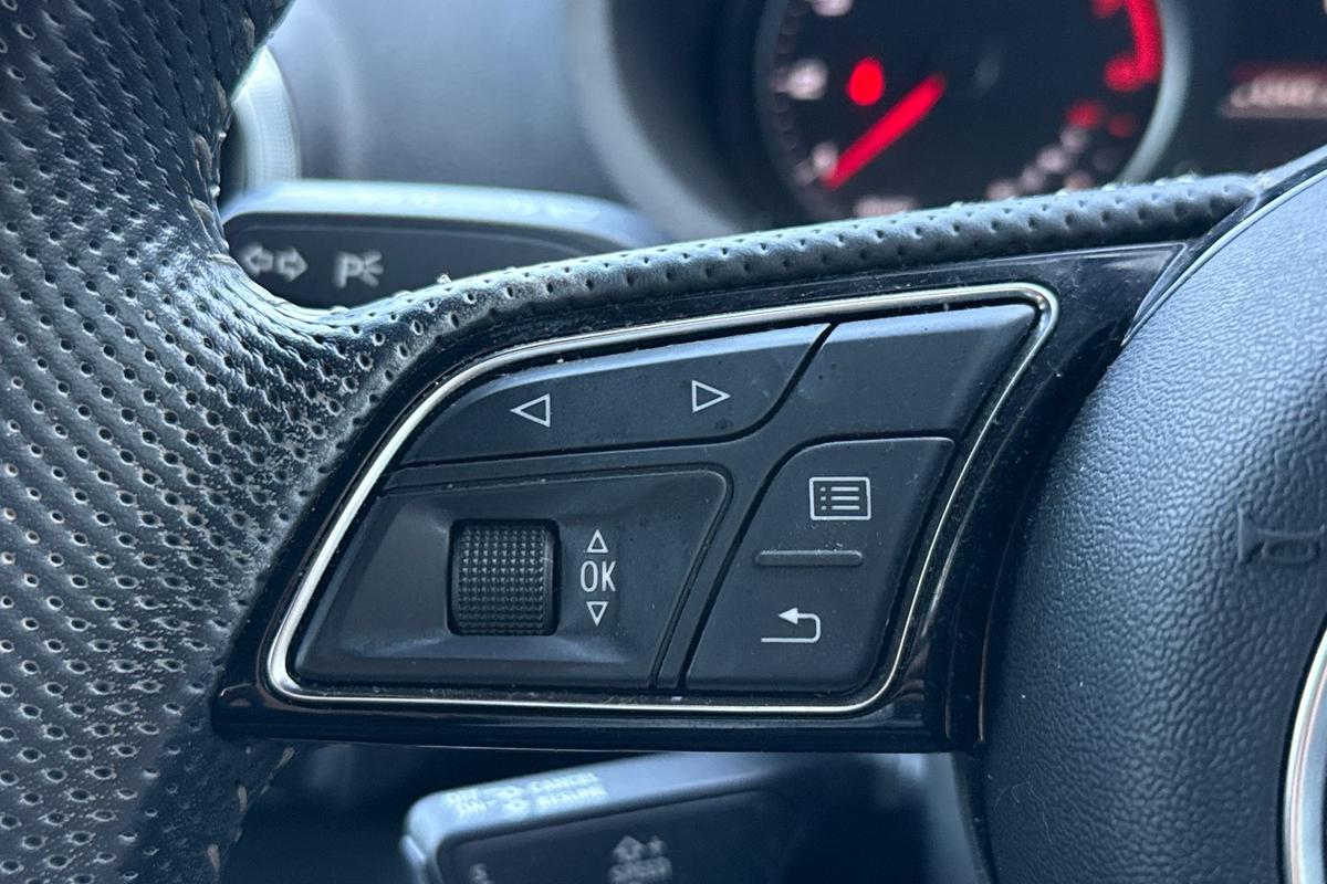 "Audio controls mounted on steering wheel",