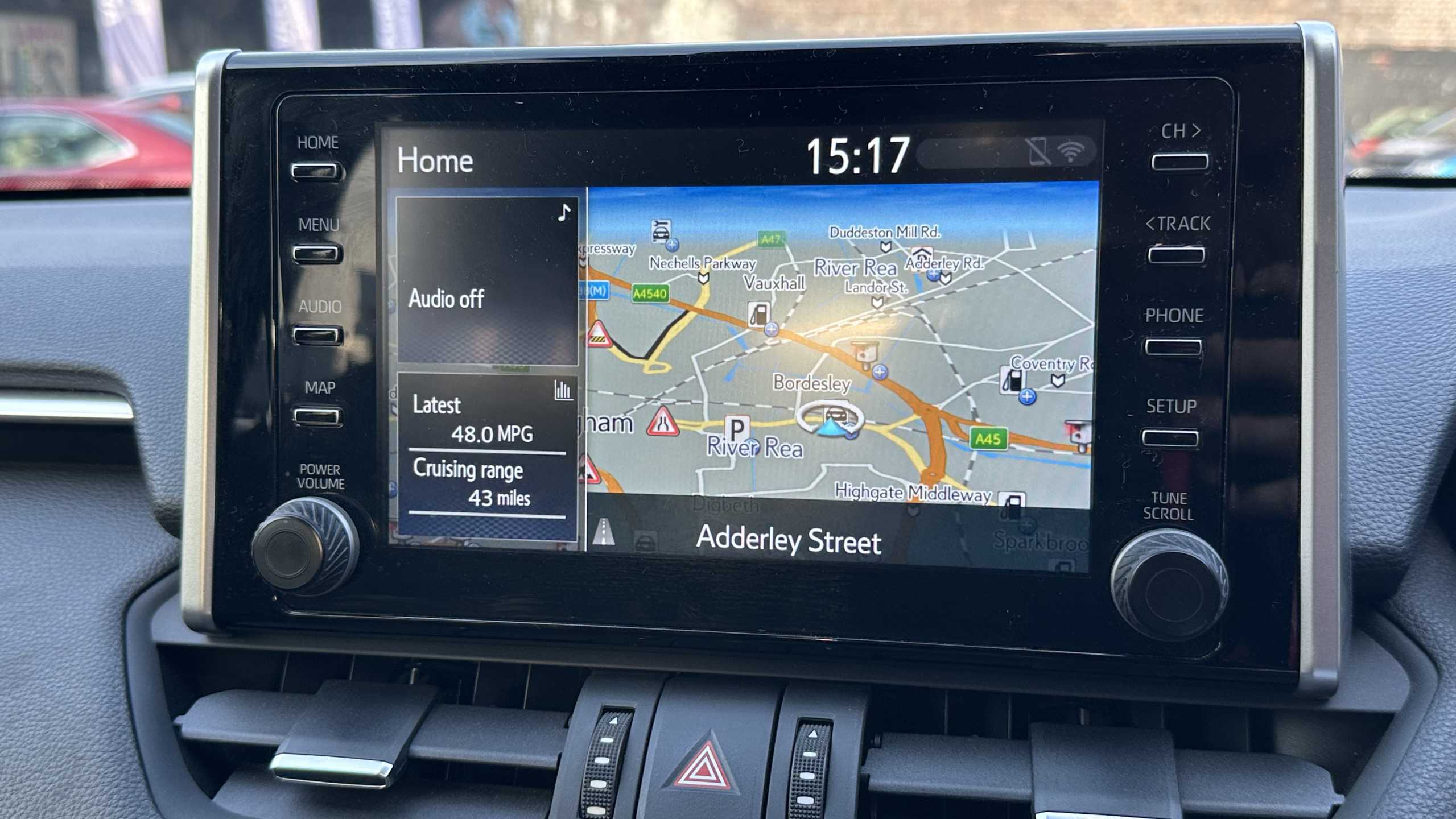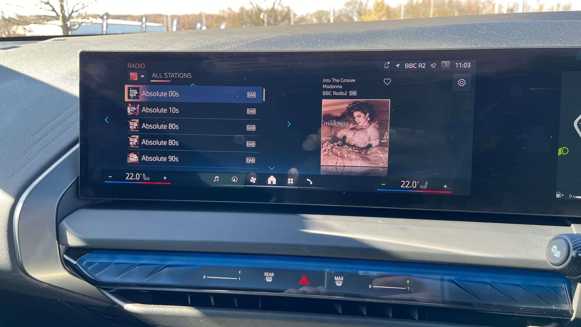 "Central fascia display with digital clock, outside air temperature and audio information",