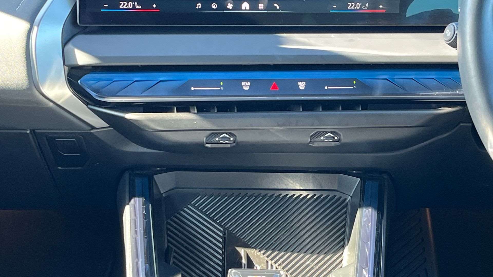 "Mistral black dashboard trim with liquid paladium decor strip in mid-section"