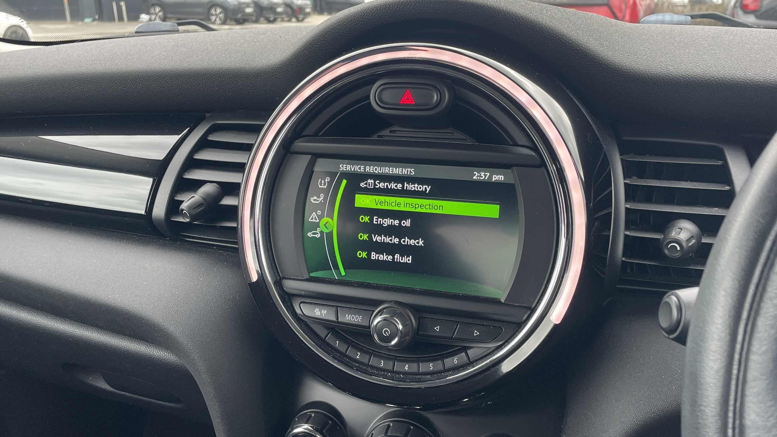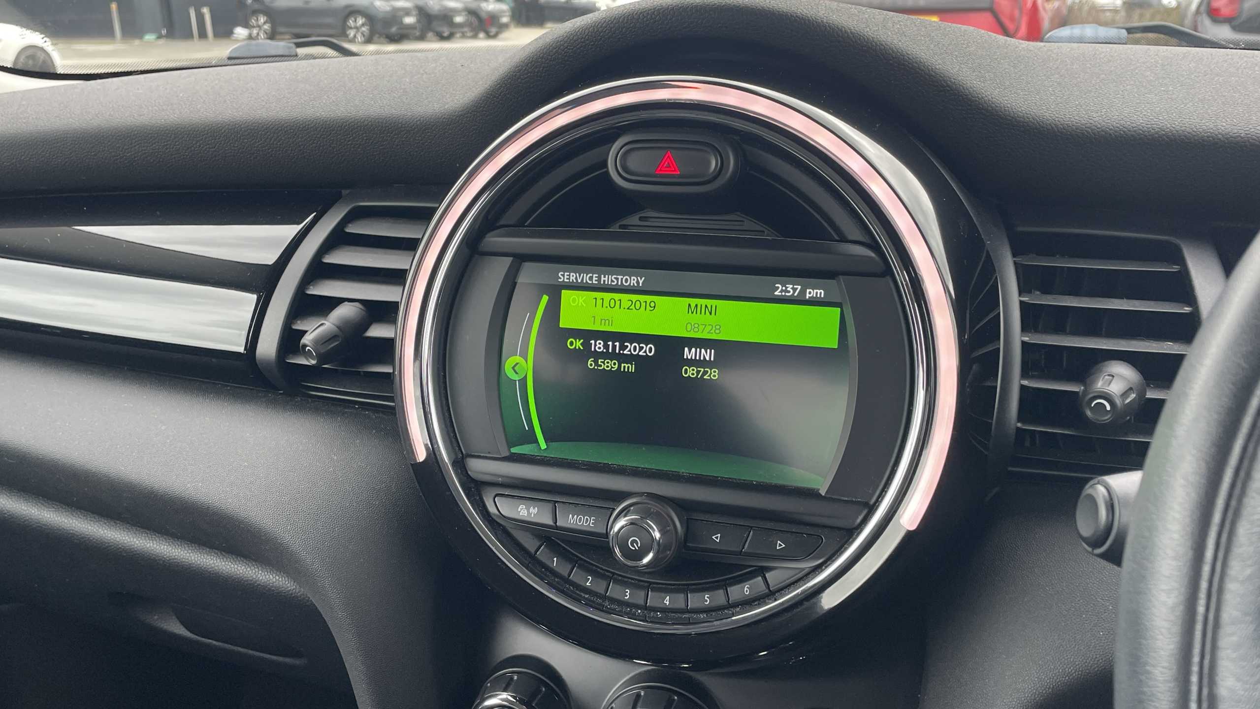 "features": "Acoustic seat-belt warning, Basic bluetooth function with USB audio, Brake fluid level warning light, Brake pad wear indicator warning light, DTC - Dynamic traction control, Exterior temperature gauge, Intelligent emergency call, MINI TeleServices, Oil level indicator, On board computer, Push button starter, Service interval indicator, Servotronic PAS, Electronic differential lock, Auxiliary input socket, DAB digital radio module, 2 speed wipers+intermittent wipe, Anti dazzle mirror, Anti trapping/one touch open close front windows, Body coloured bumpers, Chrome bezels around rear lights and headlights, Chrome door handles, Chrome exhaust tailpipe, Chrome grille surround, Chrome plated trim on bottom edge of window, Chrome strip on lower grille, Electric front windows, Electric rear windows, Electrically adjustable door mirrors, Flared wheel arches, Follow me home headlights, Green tinted heat insulating glass, Heated door mirrors/heated windscreen washers, Heated rear window with auto timer, High gloss black tailgate, LED fog lights, LED rear lights, Rear wiper, Roof spoiler in roof colour, Side scuttles, White indicator lights, 2 rear head restraints, 4 boot load lashing points, 4 way manually adjustable passenger seat with height, reach, tilt, backrest and headrest, 6-way manually adjustable driver's seat, Active carbon filter, Adjustable front seats backrest, Air recirculation system, Auxiliary socket in centre console storage compartment, Centre console storage, Driver's seat height adjuster, Driver/passenger sunvisors, Easy entry seats, Front and rear cupholders, Front head restraints, Front passenger grab handle, Gear/selector and handbrake in artificial leather, Internal chrome door handles, Isofix child seat preparation, Luggage compartment lighting, Multifunction steering wheel, Reach + rake adjustable steering column, Rear grab handles, Rear storage trays, Split folding rear seats, Storage compartments in doors, Toolkit in luggage compartment, 3 point seatbelts, 3x3 point rear seatbelts, ABS/EBD, ASC+T, Cornering brake control (CBC), Crash Sensor - activates hazard/interior lighting + unlocks doors, Driver and passenger airbags, Driver/front passenger side airbags, DSC - Dynamic Stability Control, Fuel cut off safety device, Head airbags, Hill start assist, Manual passenger airbag deactivation function, Seatbelt pretensioners, Tyre pressure warning, Ventilated front disc brakes, Drive away door locking, Locking wheel bolts, Remote central locking/doors+fuel cap+tailgate, Second remote key, Thatcham category 1 alarm + immobiliser, ",