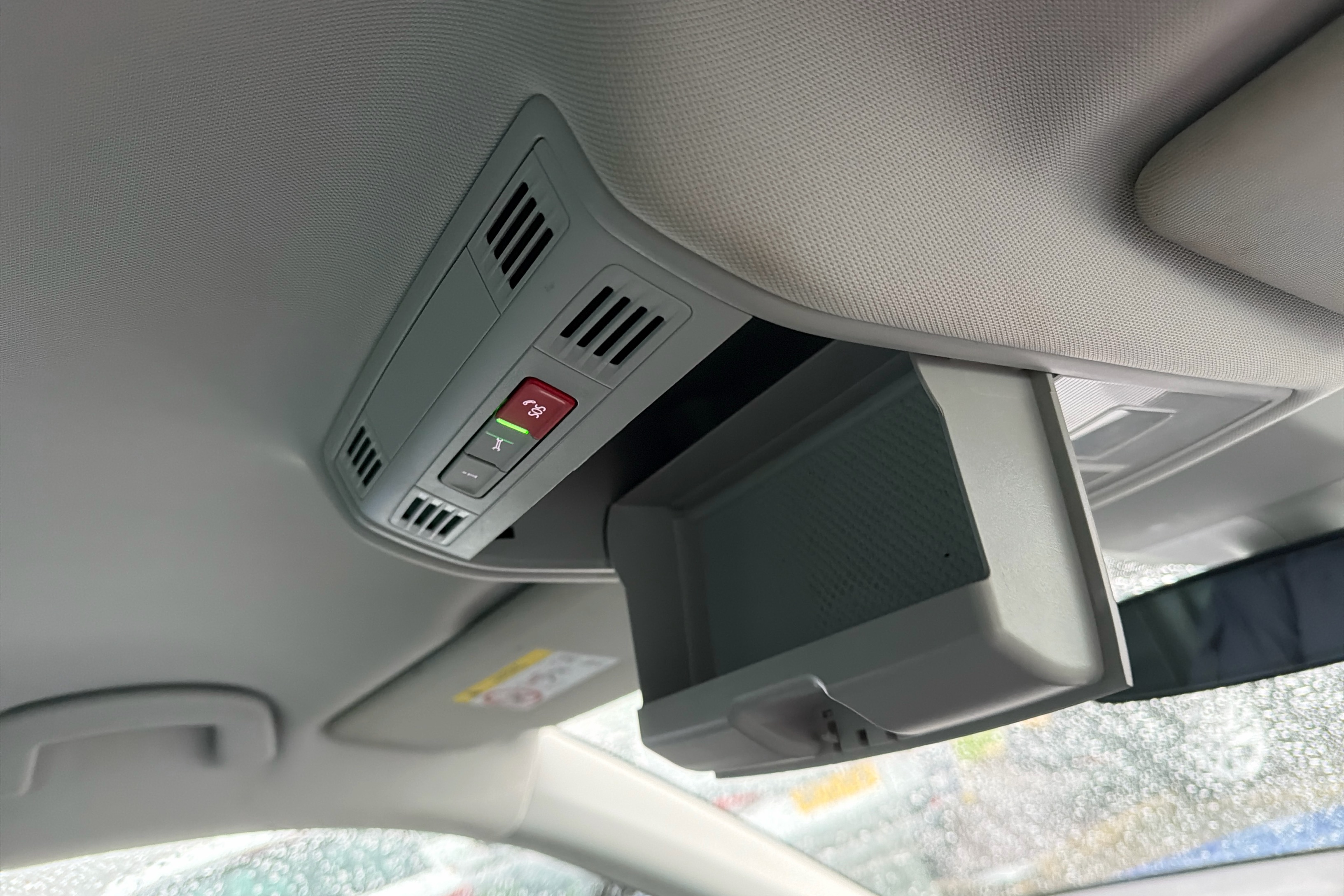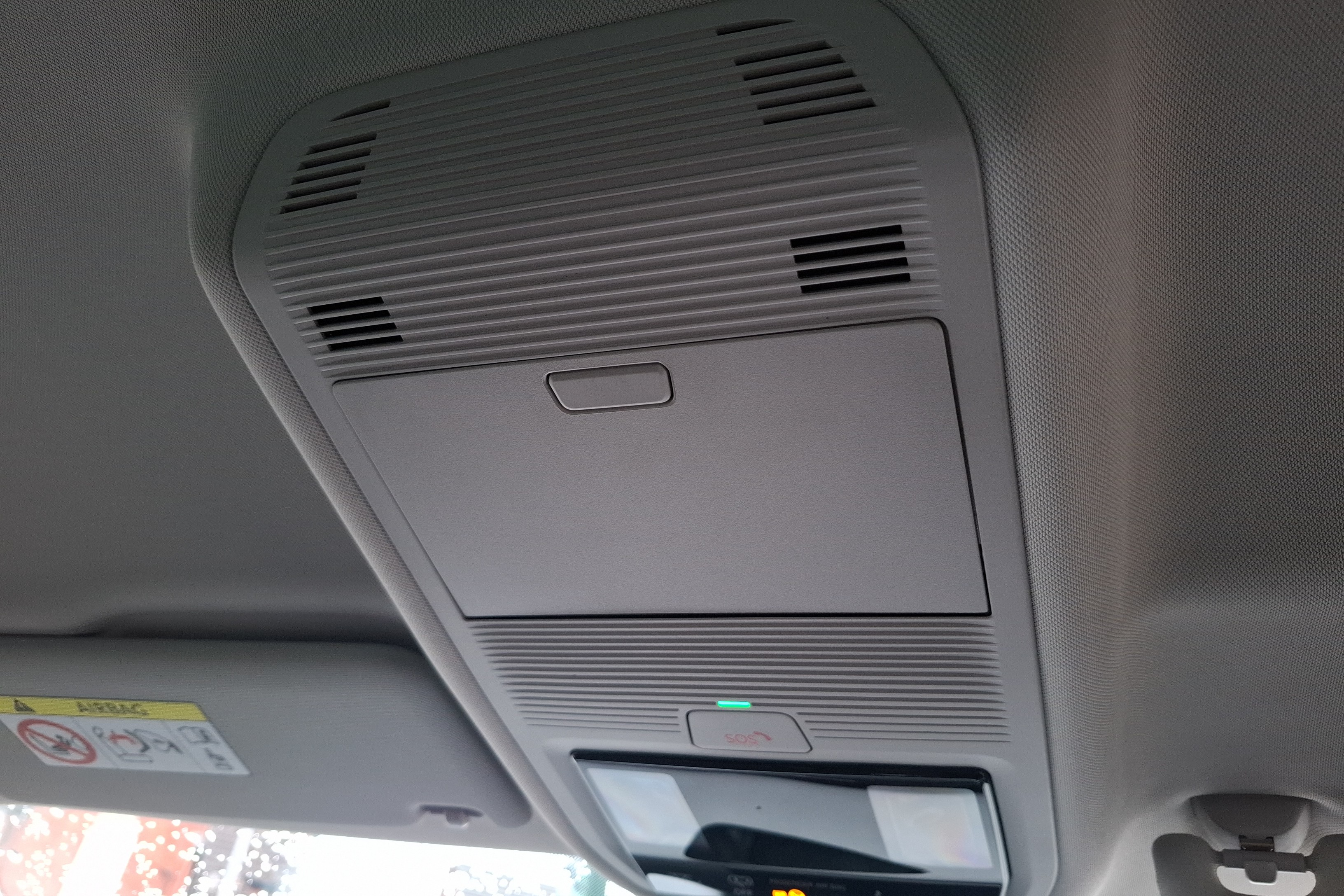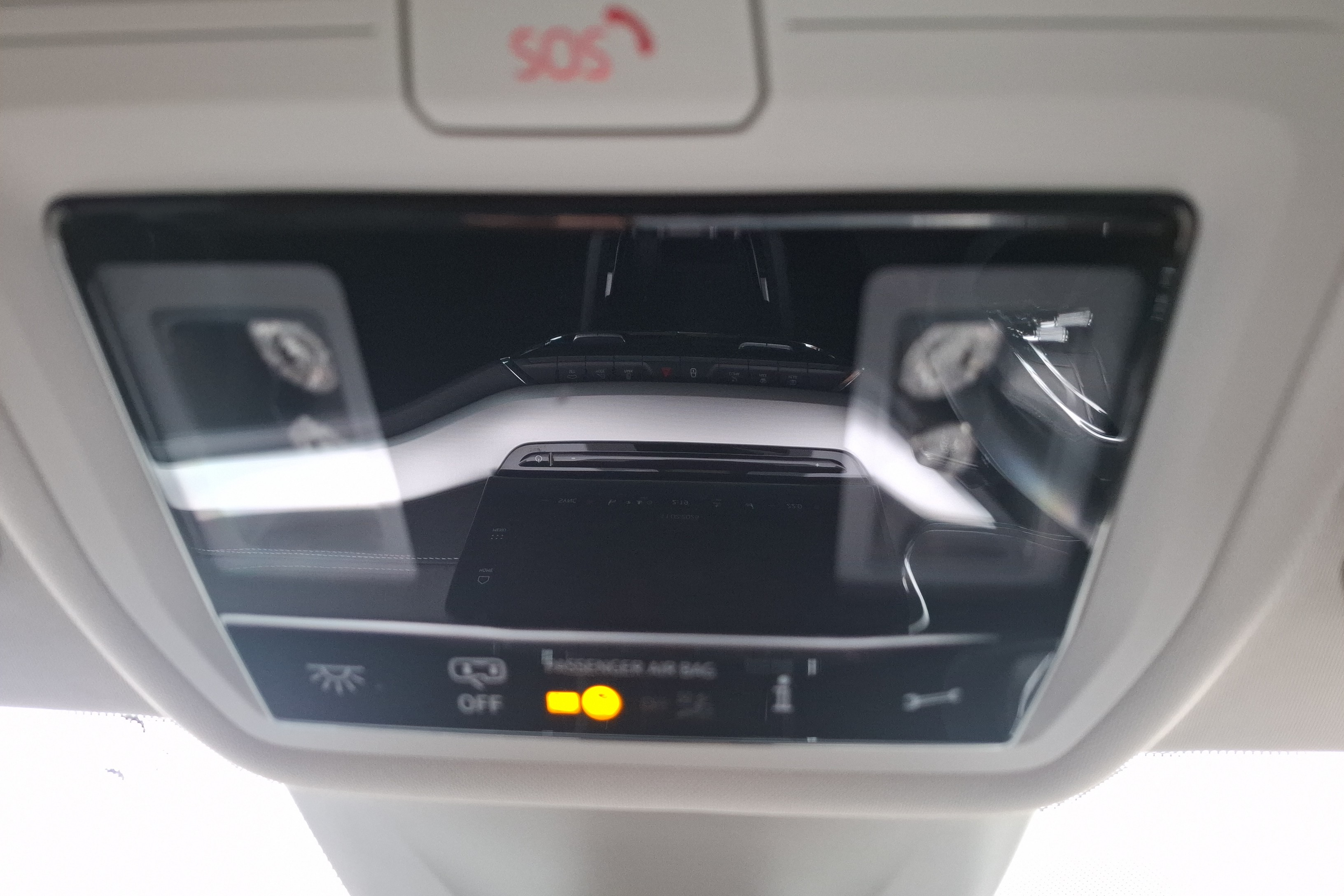 "Sun visors with mirror and airbag label on passenger side",
