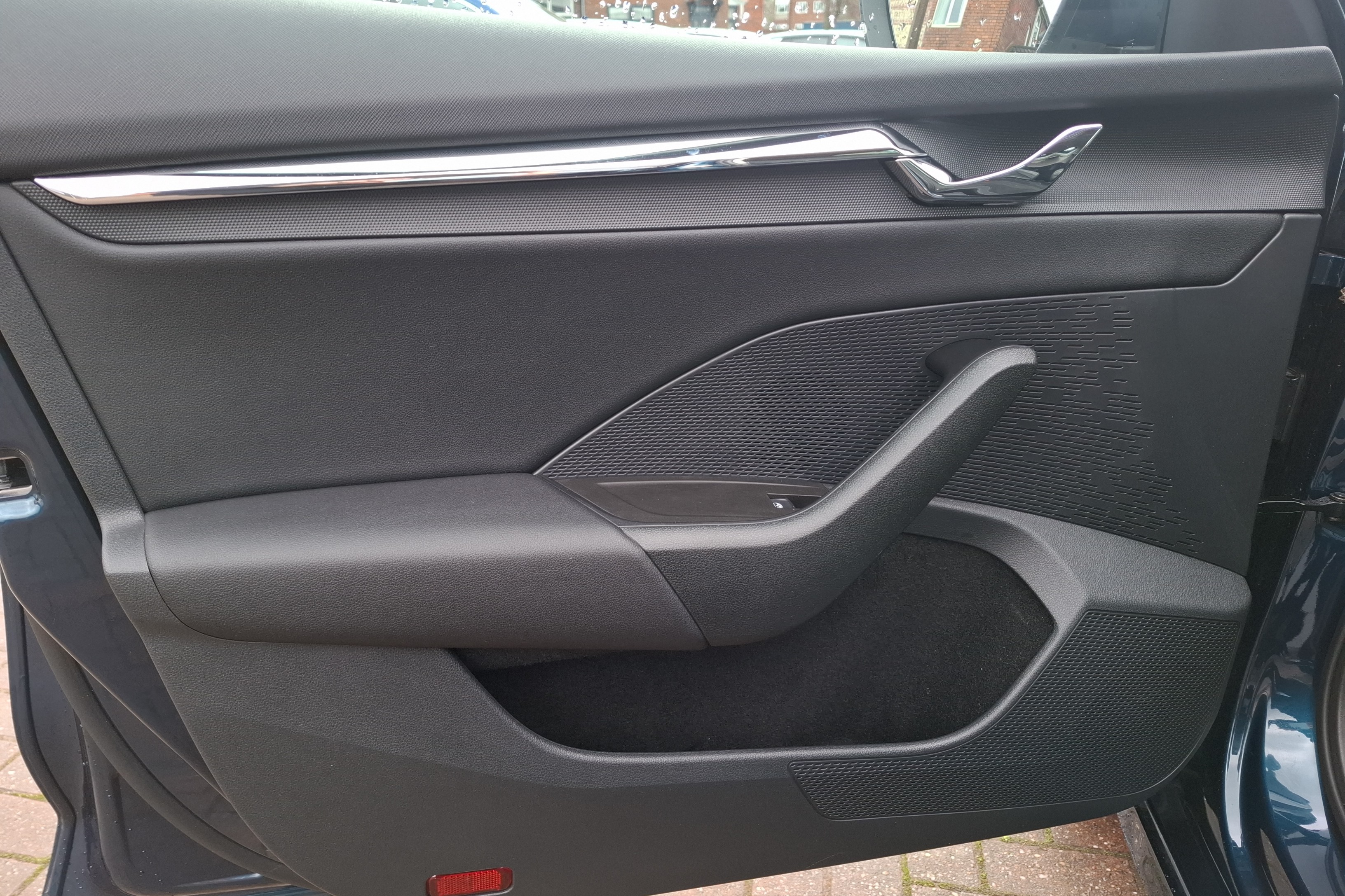"Satin black door and side trim panel in front",