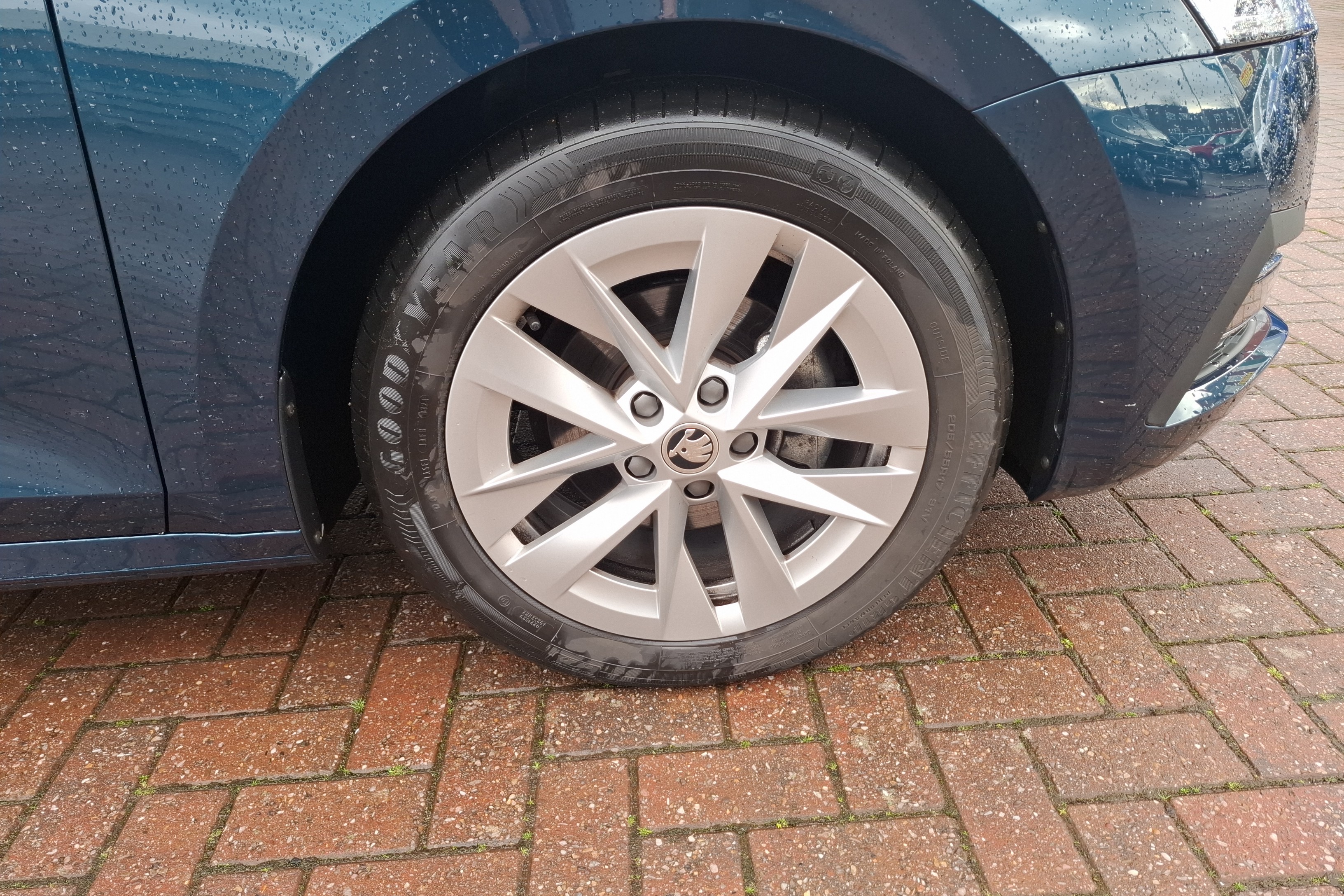 "SKODA tailgate lettering in chrome",