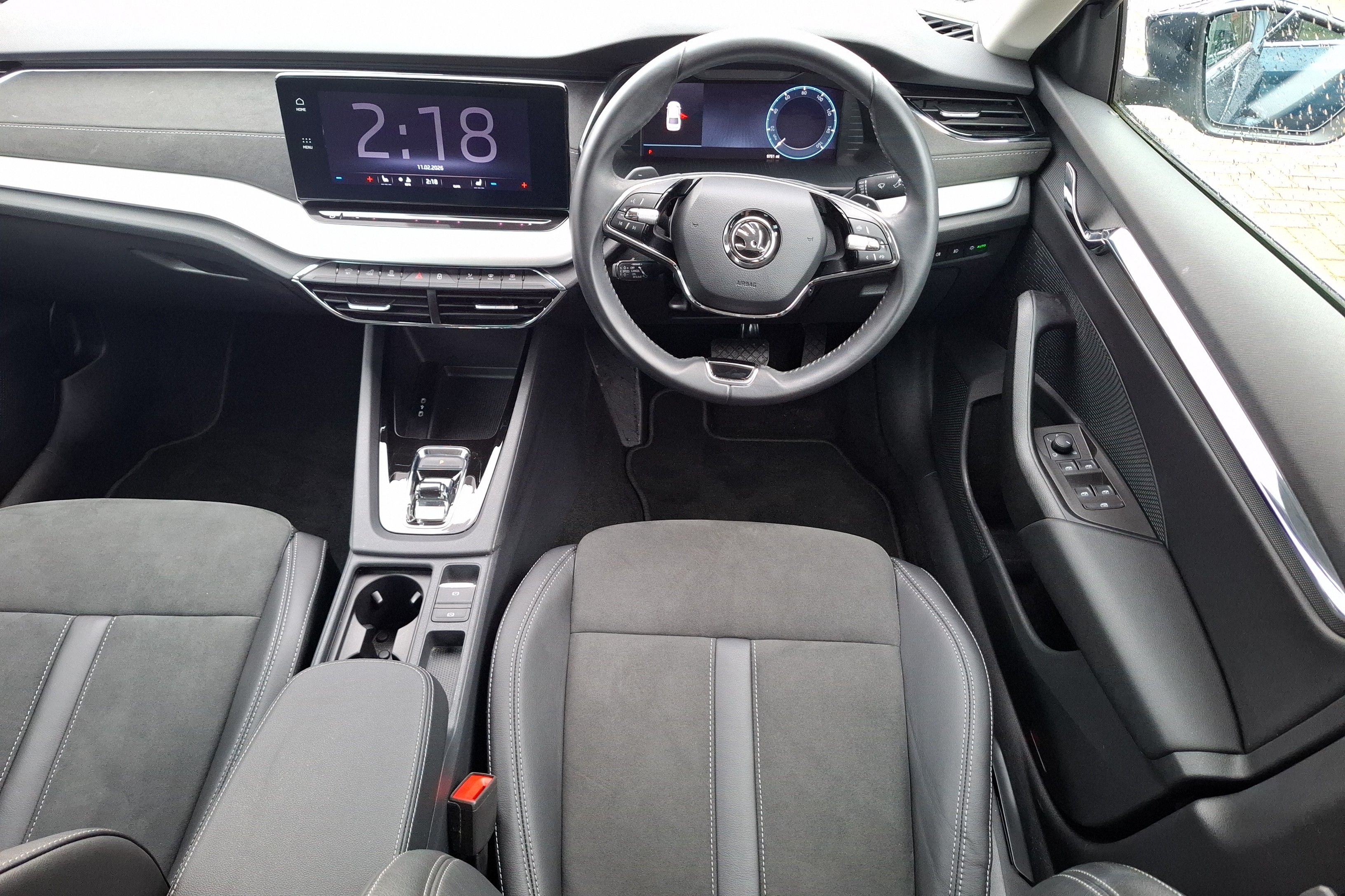 "features": "13\" touchscreen display, Blind spot detection, Bluetooth, Cruise control and speed limiter, Digital cockpit, Driver alert control, eCall emergency system, Electronic engine sound, Emergency steering support with turn assist, Gesture control, Lane assist, Manual tailgate, Power assist steering, Preparation for satellite navigation system, Rear parking sensors, Rear view camera, Skoda Connect iV remote services with charging, air conditioning and smart schedules, Speed assist, Traffic sign recognition, Voice control, Washer fluid level indicator, Wi-Fi hotspot, Wireless smartlink, 145 kW DC charging, 6m mode 3 cable (32A), 45W USB-C ports (charging + data) in front, 8 Speakers, DAB Digital radio, Auto dimming door mirrors, Black roof rails, Black window trims, Electric adjustable heated folding door mirrors with boarding spots and welcome logo, Frameless auto dimming rear view mirror, Heat insulating glass windscreen, LED 3rd brake light, LED headlights with LED daytime running lights and headlight range control, Light and rain sensors, Light assistant including coming home and leaving function, Manually operated boot, Rear LED lights, Rear side wing doors, Rear spoiler, Rear window wiper with washer system and intermittent control, Side and rear windows in heat insulating glass, 12V socket in boot, 1x umbrella, 2 spoke leather multifunction steering wheel, 3 rear headrests, 3 seat bench in 2nd row, Boot lighting, Dual zone climate control, Folding boot cover, Front head restraints, Isofix child seat fittings in outer rear seats with top tether, Isofix child seat preparation for front passenger seat, LED ambient lighting, Manual lumbar support for front seats, Manually adjustable front seats, Single front passenger seat, Loft design pack - Elroq, 3 point rear seatbelts, Crew protect assist, Driver and front passenger airbag with passenger airbag deactivation, ESC (incl. ABS+MSR+ASR+EDS+HBA+DSR+RBS+MKB), Front assist with braking reaction to vehicles, pedestrians and cyclists, Front disc brakes, Front side airbags with curtain airbags and central interaction airbag, Rear drum brakes, Single tone horn, Three point seatbelt in front, with pretensioner, lap belt pretensioner and height adjustment, Tyre pressure monitoring system, Visual and acoustic seat belt reminder, Anti theft alarm system with interior monitoring, backup horn and towing protection, Central locking system with SAFE system, Keyless start/stop, Manual child locks, Anti-theft wheel bolts protection, Tyre repair kit, ",