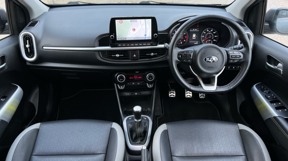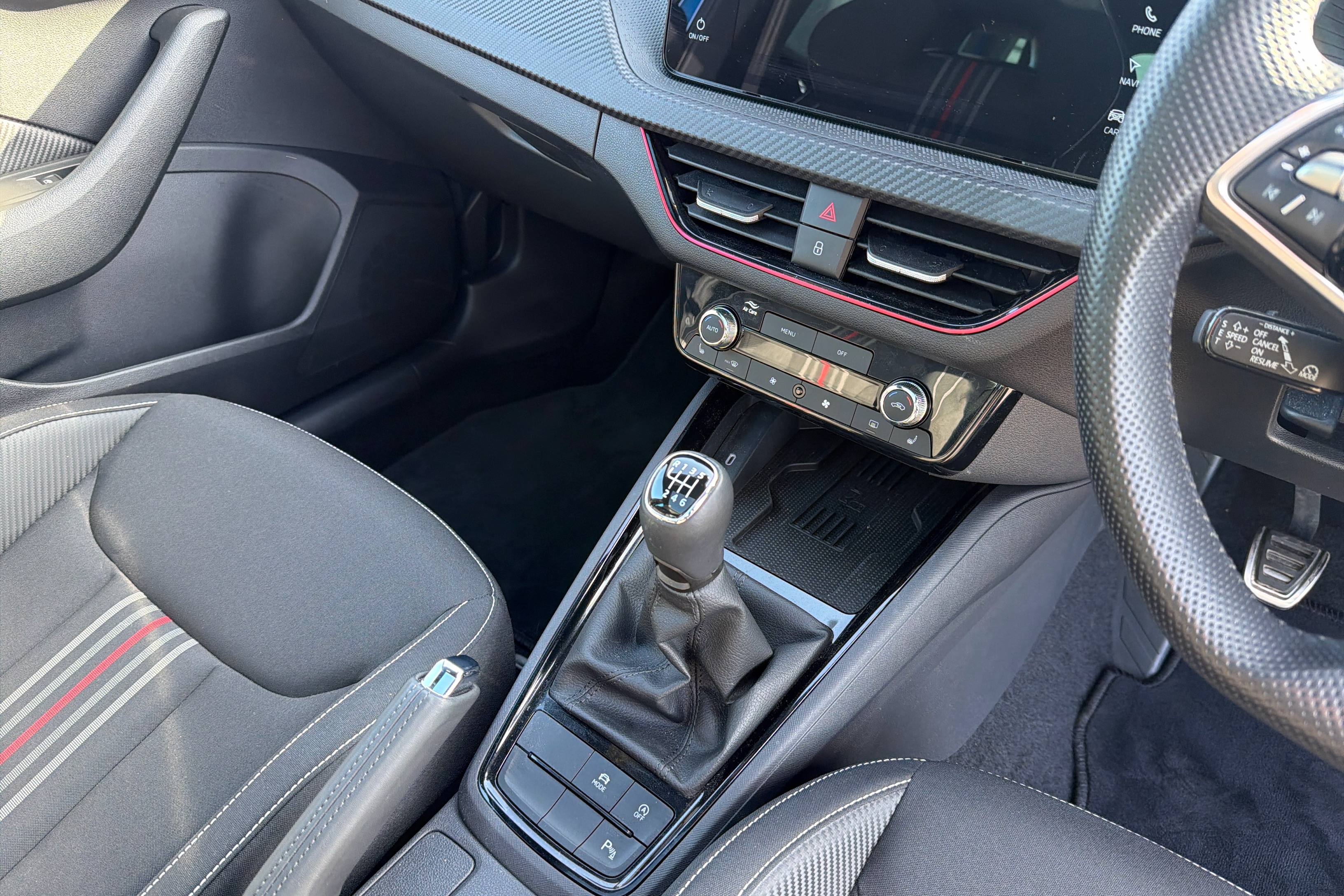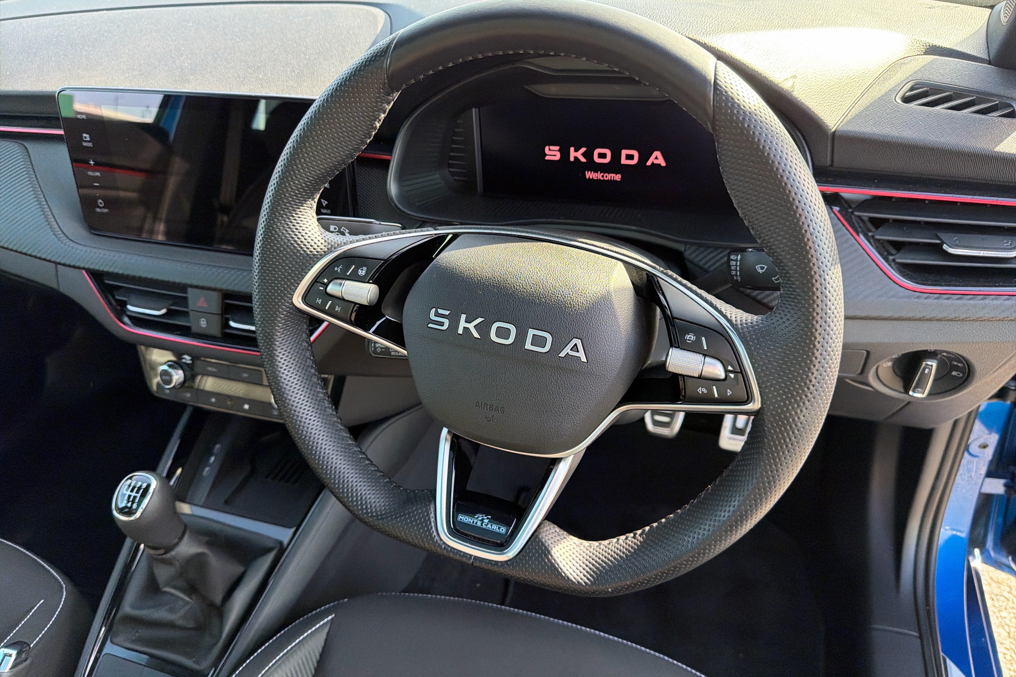 "Leather wrapped steering wheel and gear knob",