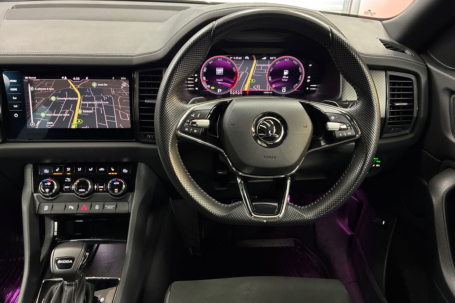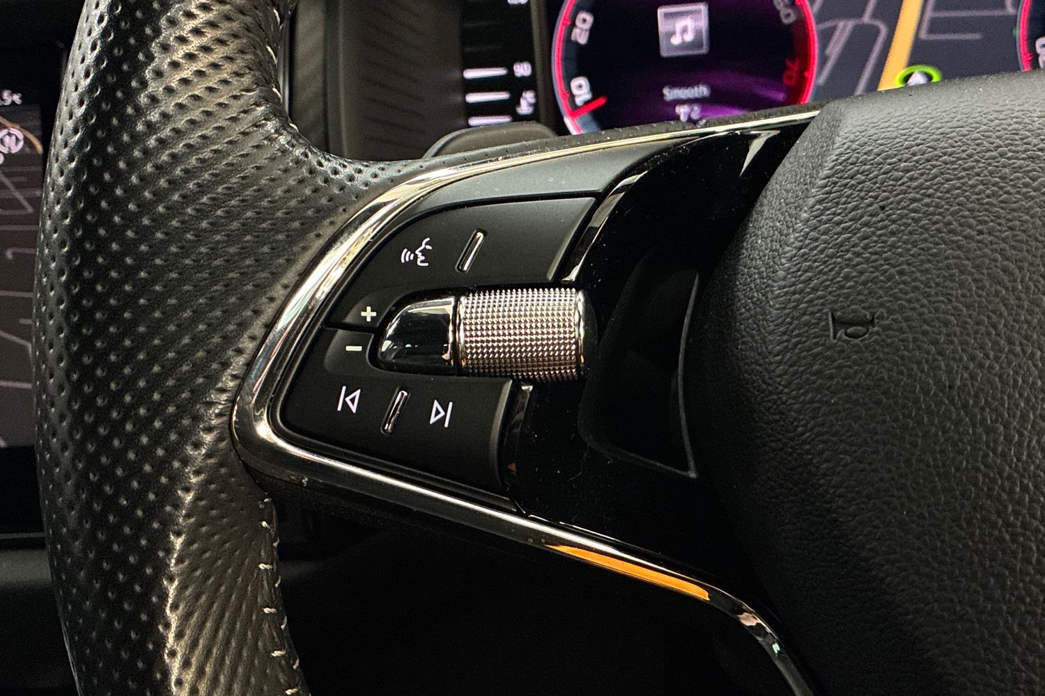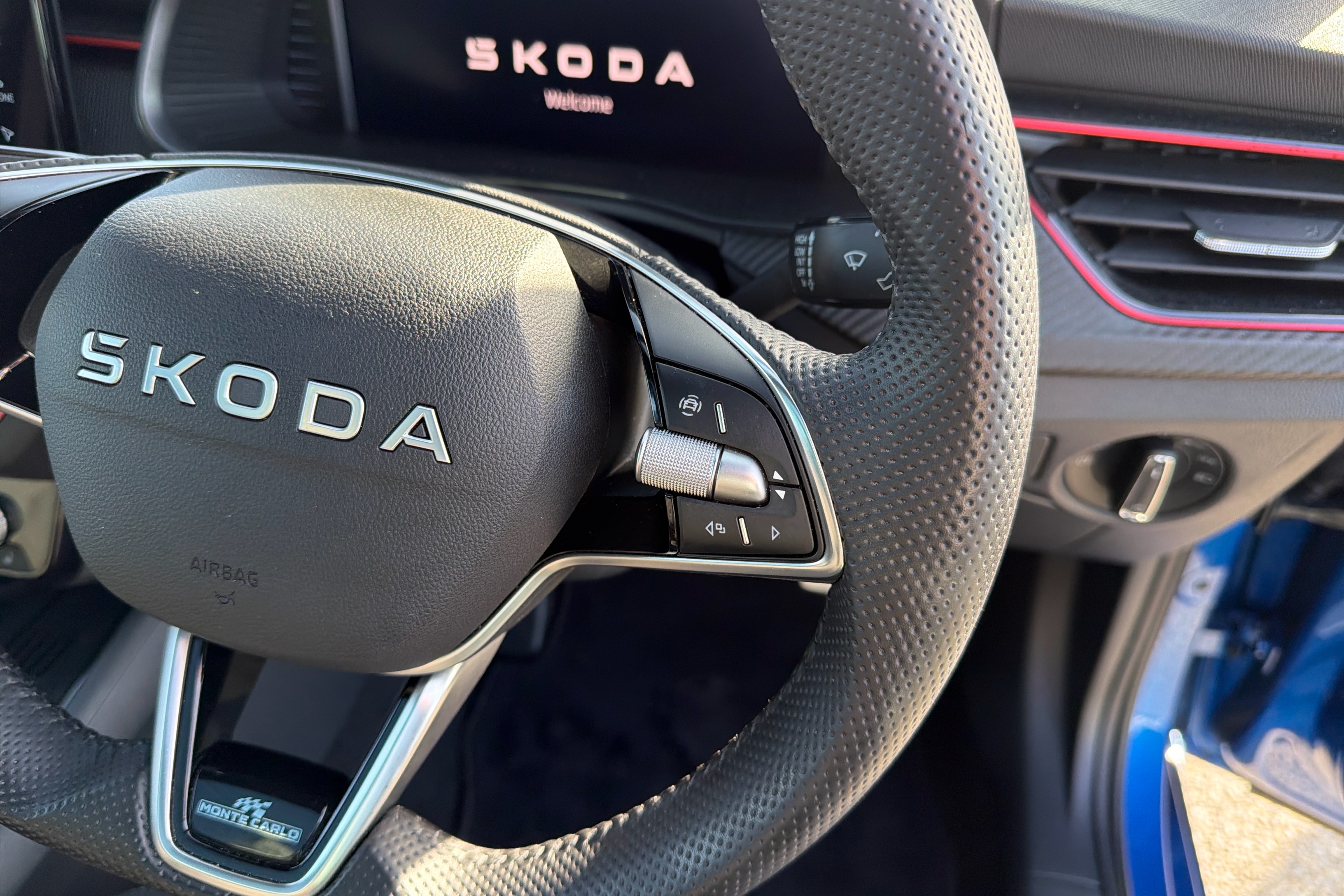 "Leather wrapped steering wheel and gear knob",