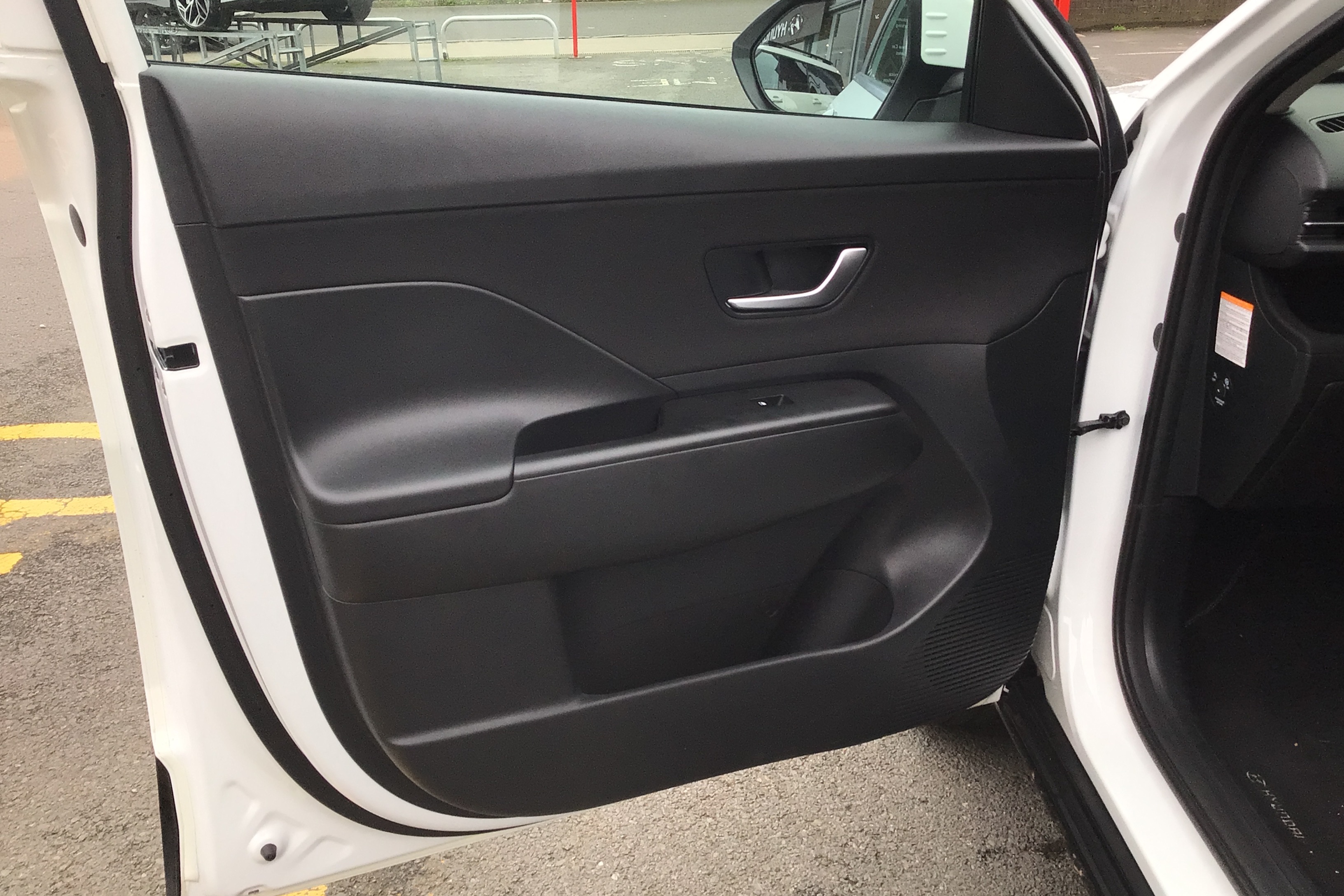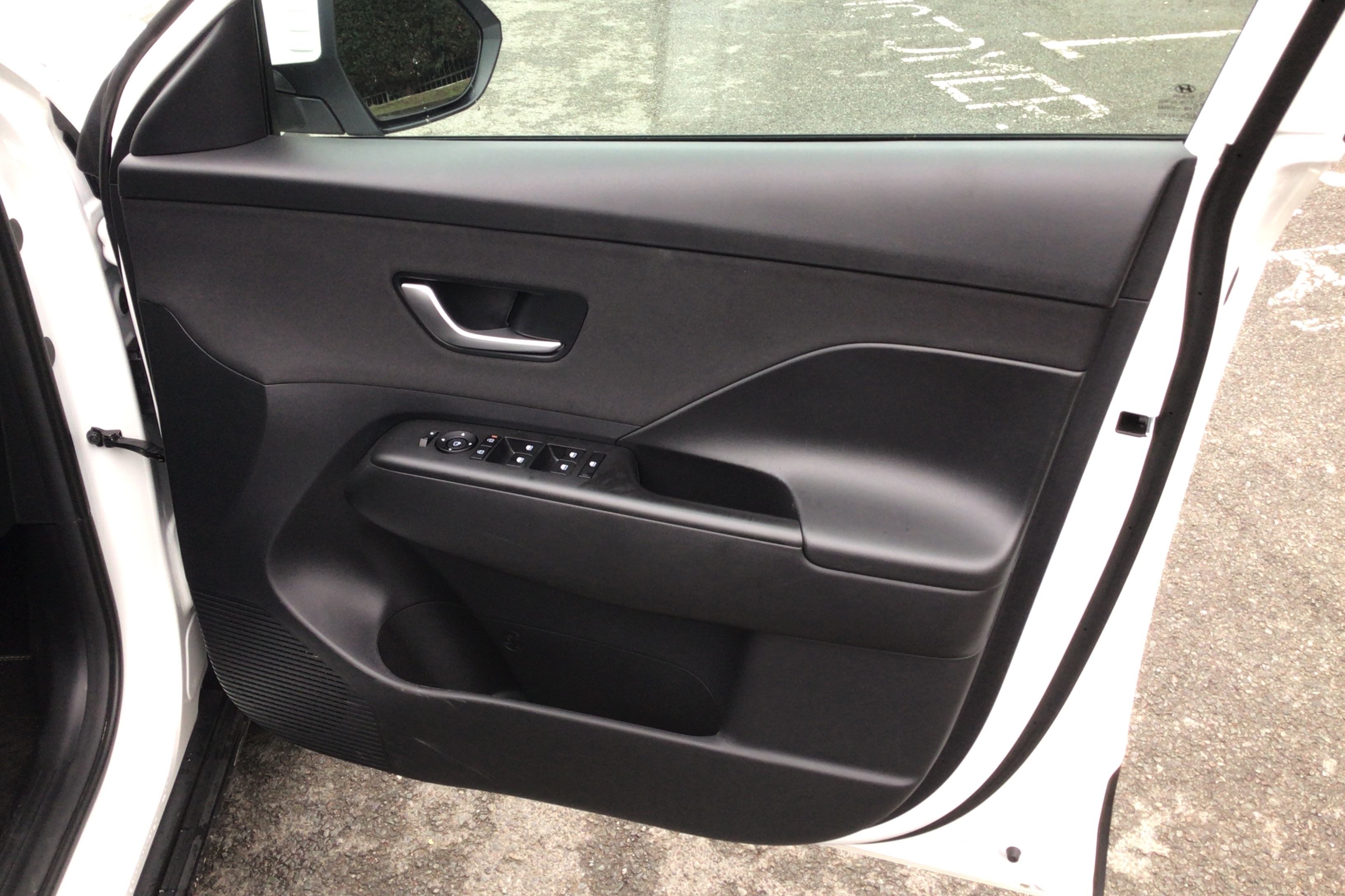 "Satin black door and side trim panel in front",