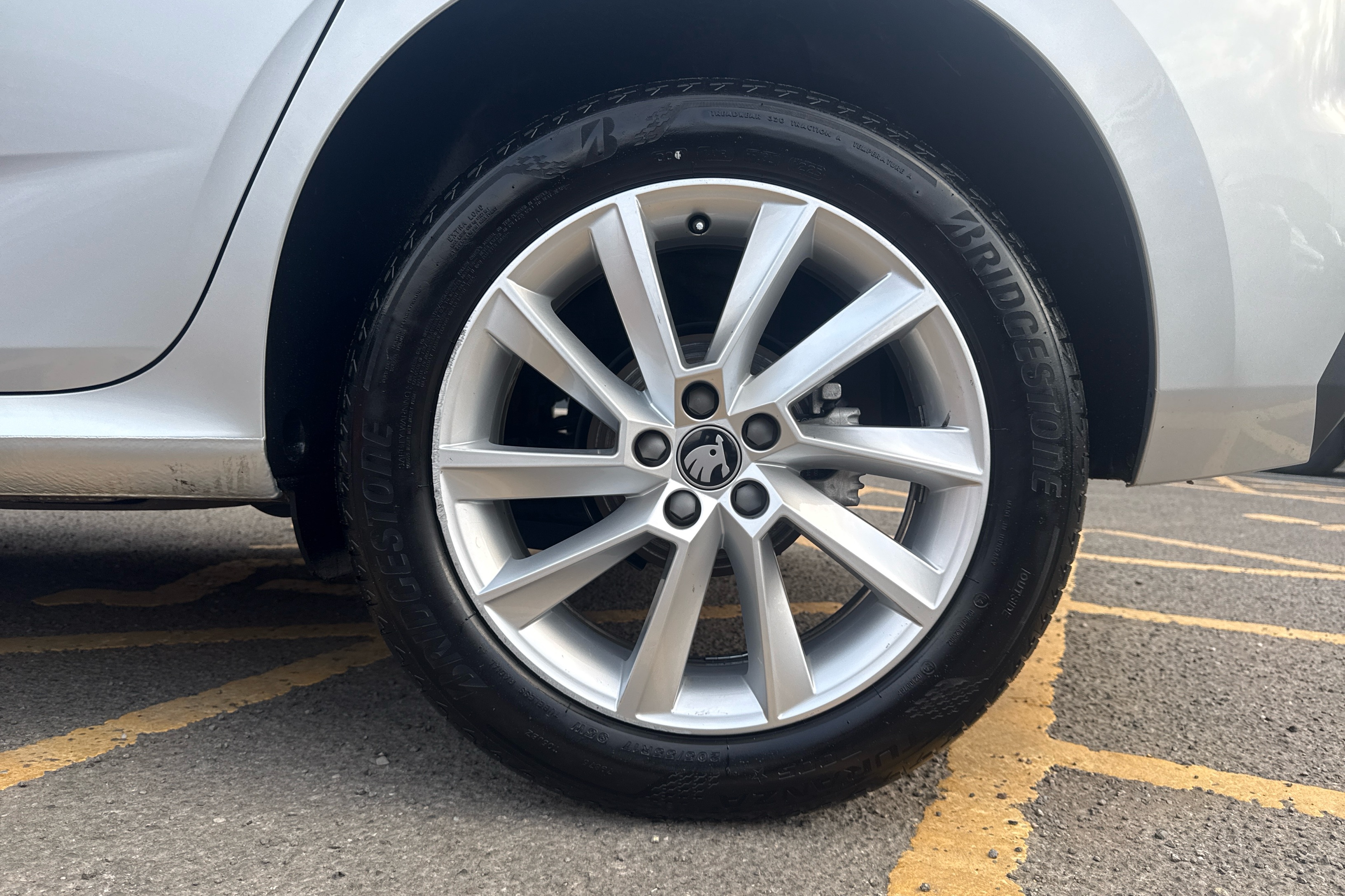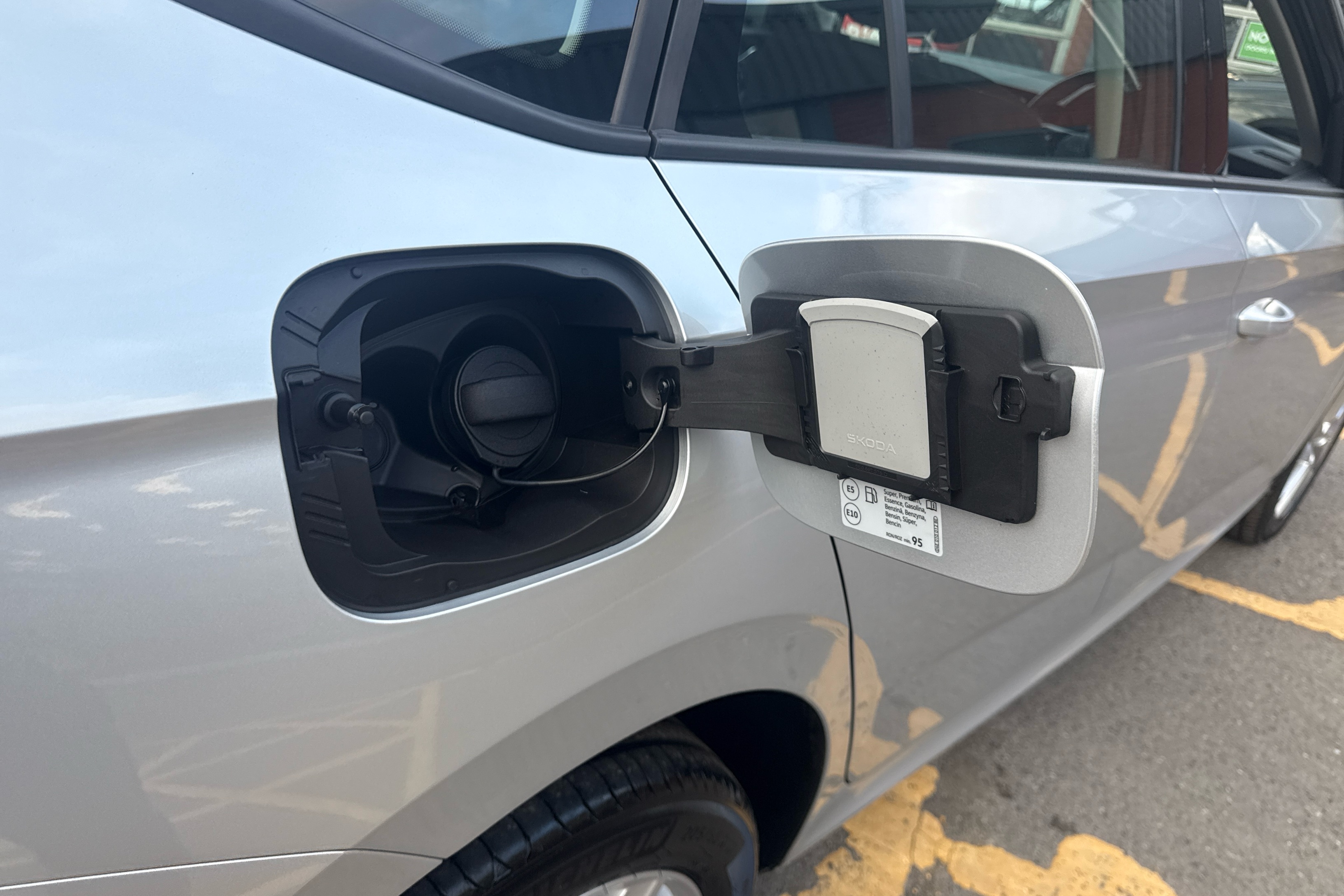 "SKODA tailgate lettering in chrome",