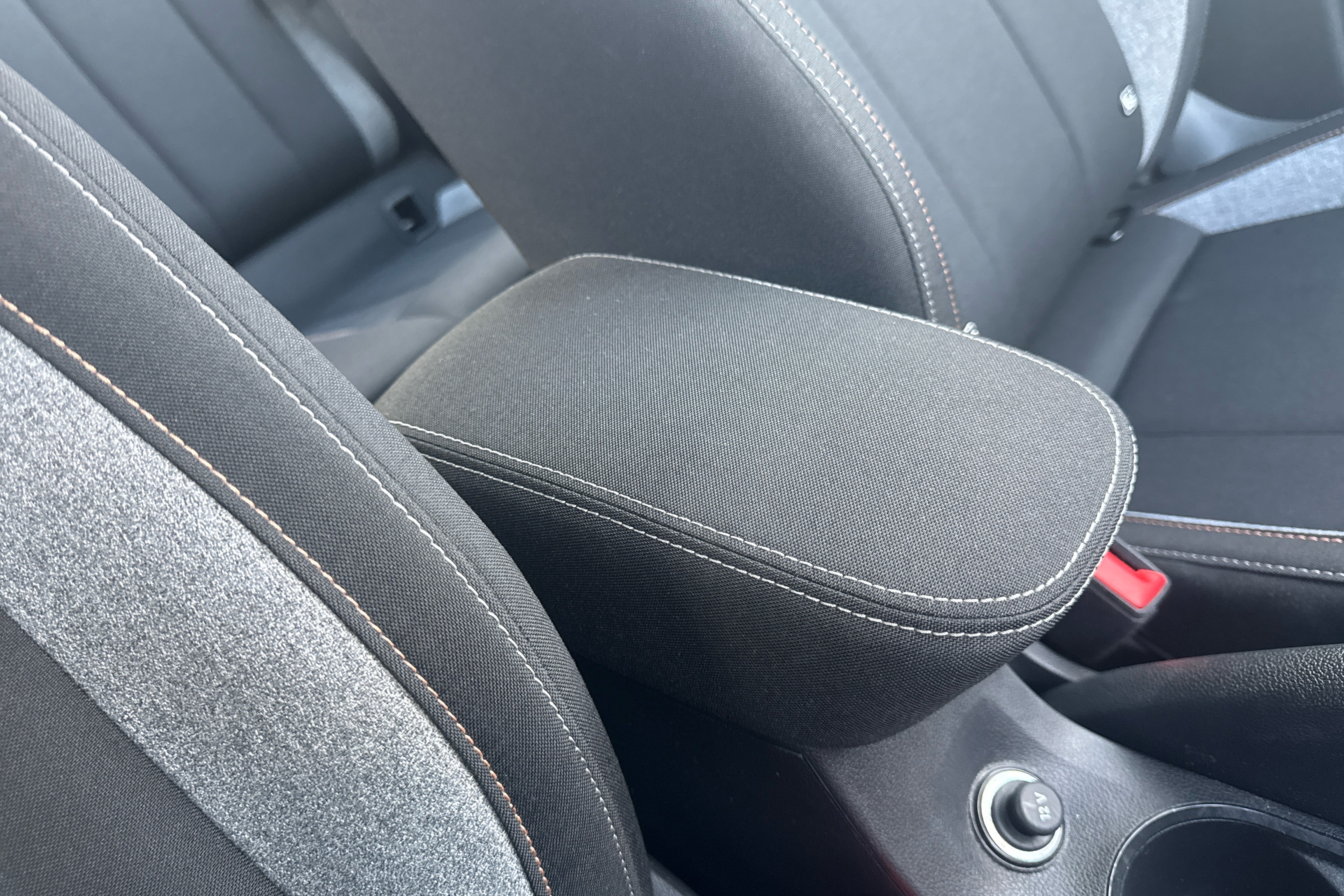 "Textile microsuede grey lower decorative trim with art grey stitching"