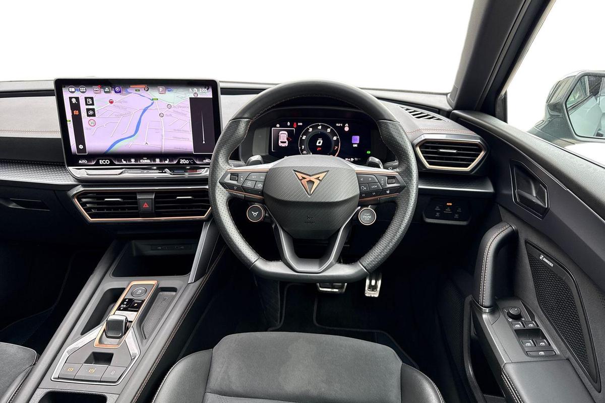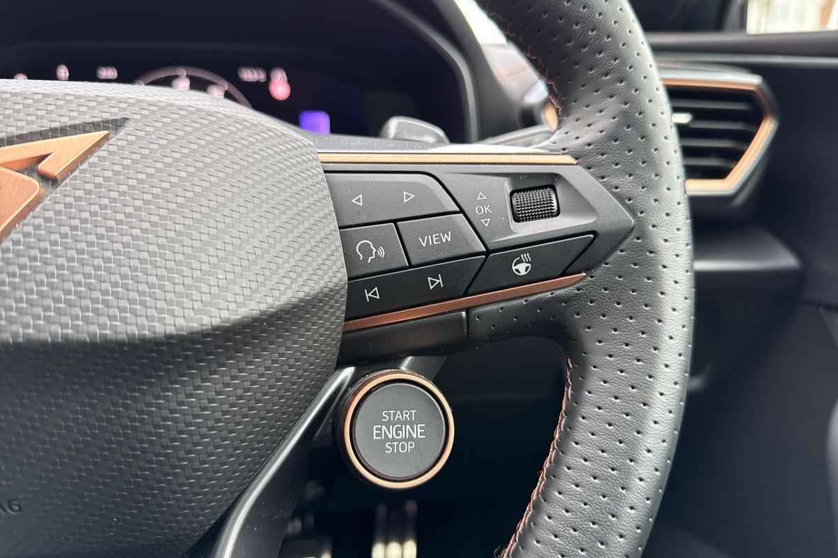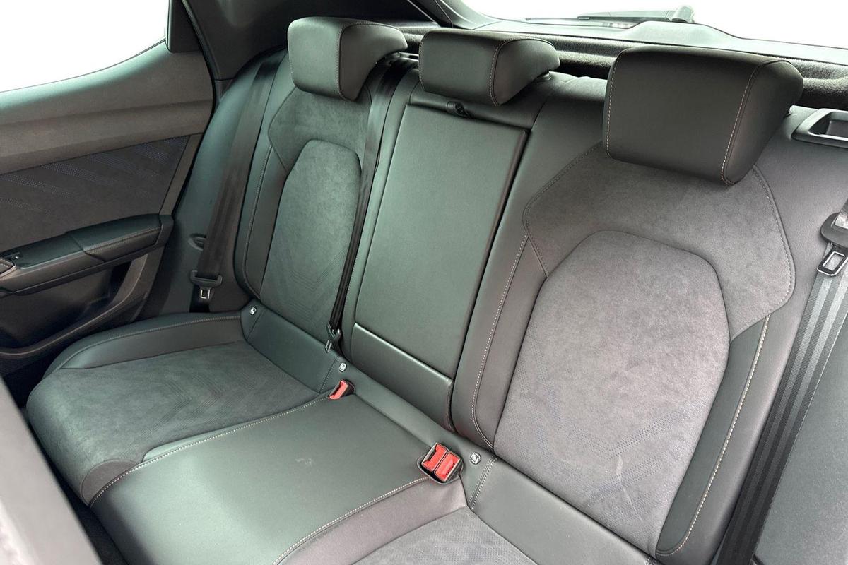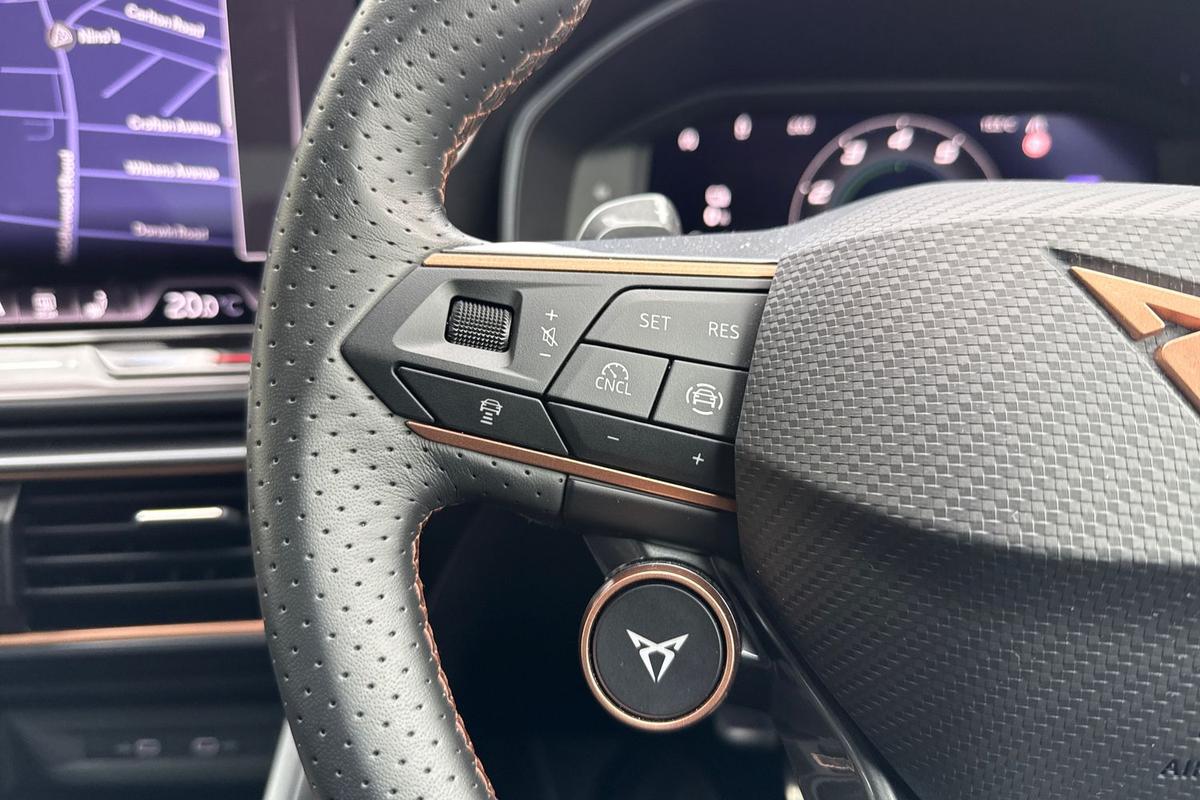 "features": "CUPRA drive profile selection with 4 modes (Comfort/Cupra/Sport/Individual), throttle response and gearshift mode, Digital cockpit, E-call, Four x USB Type C ports (2 in front and 2 in rear), Front assist with forward collision warning braking reaction to vehicles, pedestrians and cyclists, Full link smartphone integration with Mirror Link, wireless Apple CarPlay and wired Google Android Auto, Lane assist, Lockable tailgate, Park assist (inc front/rear parking sensors), Rear view camera, RPM, trip computer, outside temp gauge, instrument light brightness, low fuel warning light, lights on reminder, gearshift indicator, Service interval indicator, Start/stop system with regenerative braking, Wireless phone charger, 10 amp mode 2 charging cable, 16 amp mode 3 charging cable, 3.6 kw On-board charger, Standard suspension, XDS electronic differential lock and dynamic traction support, Auxiliary input socket, Auto dimming rear view mirror, Body colour door handles, Body coloured bumpers, Cupra sports bumpers, Dark tinted rear windows, Electric front/rear windows, Electrically adjustable, heated and folding door mirrors, LED front fog lamps with cornering function, LED rear fog lamp, Matrix LED Headlights with variable light distribution, Matrix Beam and Dynamic headlight range control, Panoramic sunroof, Rain sensing wipers, Rear coast to coast lighting, Rear diffuser with twin exhaust pipe on each side with simulated exhausts, Rear side wing doors, Rear wash/wipe, Separate daytime running light with automatic headlight control and coming home feature, Third brake light, 12v power supply in centre console, 3 seat bench in 2nd row, 5 headrests, 60/40 split rear bench seat with armrest, Ambient lighting (glovebox, footwell, ambient lighting multicoloured), Black headlining, Cupra sports pedals, CUPRA Supersports, heated steering wheel with satellite buttons, Dust/pollen filter, Folding boot cover, Front and rear reading lights X 4, Front centre armrest, Heated front seats, Height/reach adjust steering wheel, Illuminated interior front door sills, Interior wraparound lighting, ISOFIX points in outer rear seats with top tether anchorage points, Luggage tie-down hooks, Nappa leather upholstery, Powered driver seat with memory and manual height adjustment for passenger, Powered lumbar adjustment on driver side, manual on passenger side, Single front passenger seat, Sports bucket seats, Storage pockets on rear of front seats, Sunvisors with illuminated mirror, Three zone climate control, Design pack - Cupra Leon, Dynamic and comfort pack - Leon Cupra, Media system plus with navigation pack - Leon Cupra, Safety and driving pack (XL) - Cupra leon, 3 point seatbelts on all rear seats, ABS, Brake control system - ESC and brake booster, Child proof door locks, Driver and front passenger airbags with front passenger airbag de-activation, front side and curtain airbags, Electronic parking brake, Extended safety system - seat belt tensioner, window closure and hazard lights, Hill hold control, Rear disc brakes, Seat belt reminder for front and rear seats, Tiredness recognition system, Tyre pressure monitoring system, Anti theft alarm system with interior monitoring in cab, backup horn and towing protection, KESSY Advanced - Keyless start, keyless entry, Locking wheel bolts, Chrome and copper interior detailing, Copper stitching on dashboard trim, 19\" Performance satin black and copper alloy wheels with 91Y tyres, Breakdown kit, Tool kit, ",