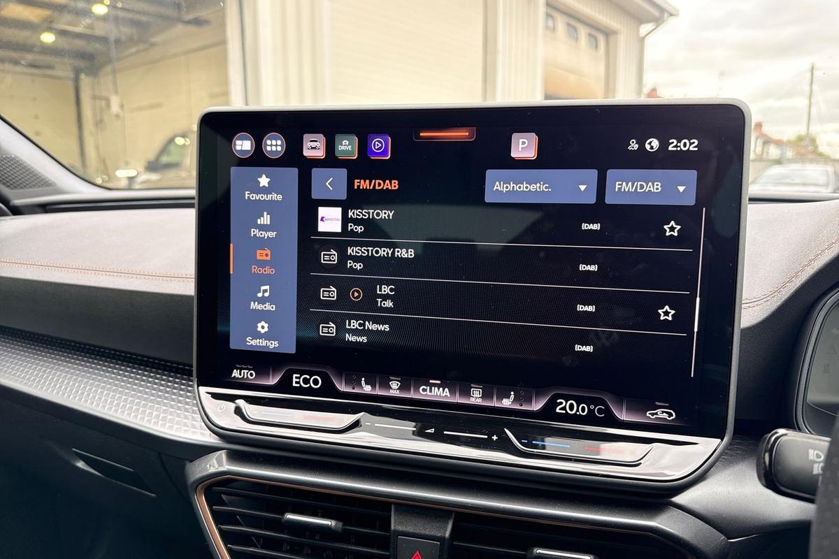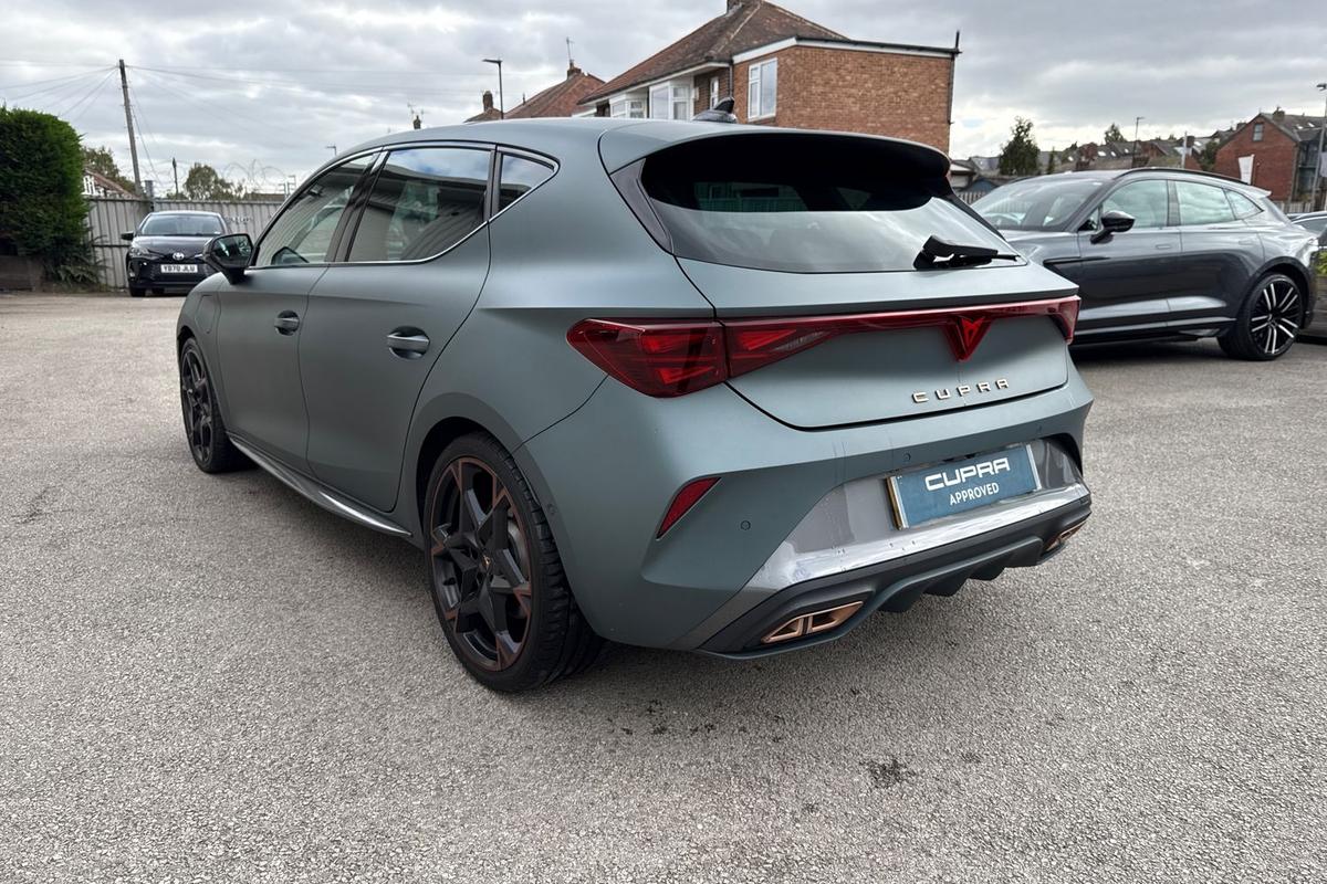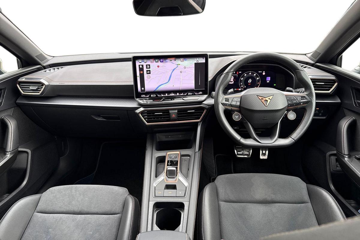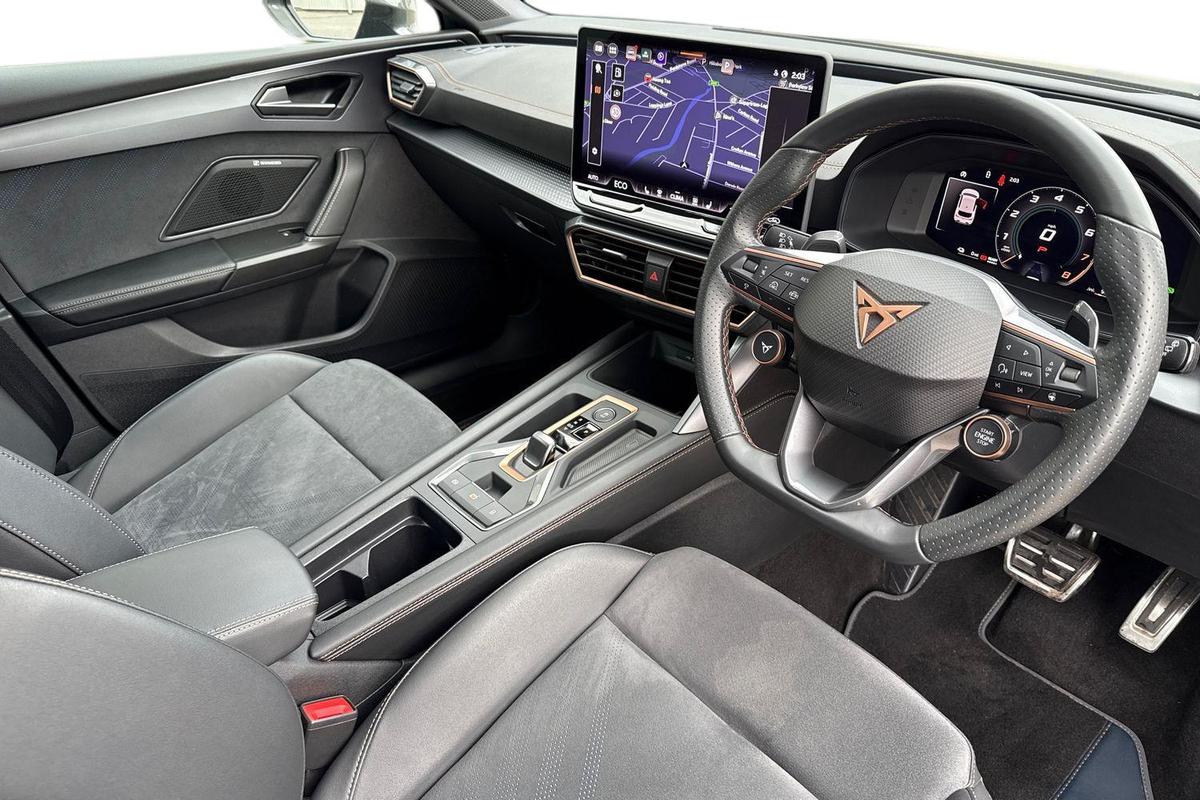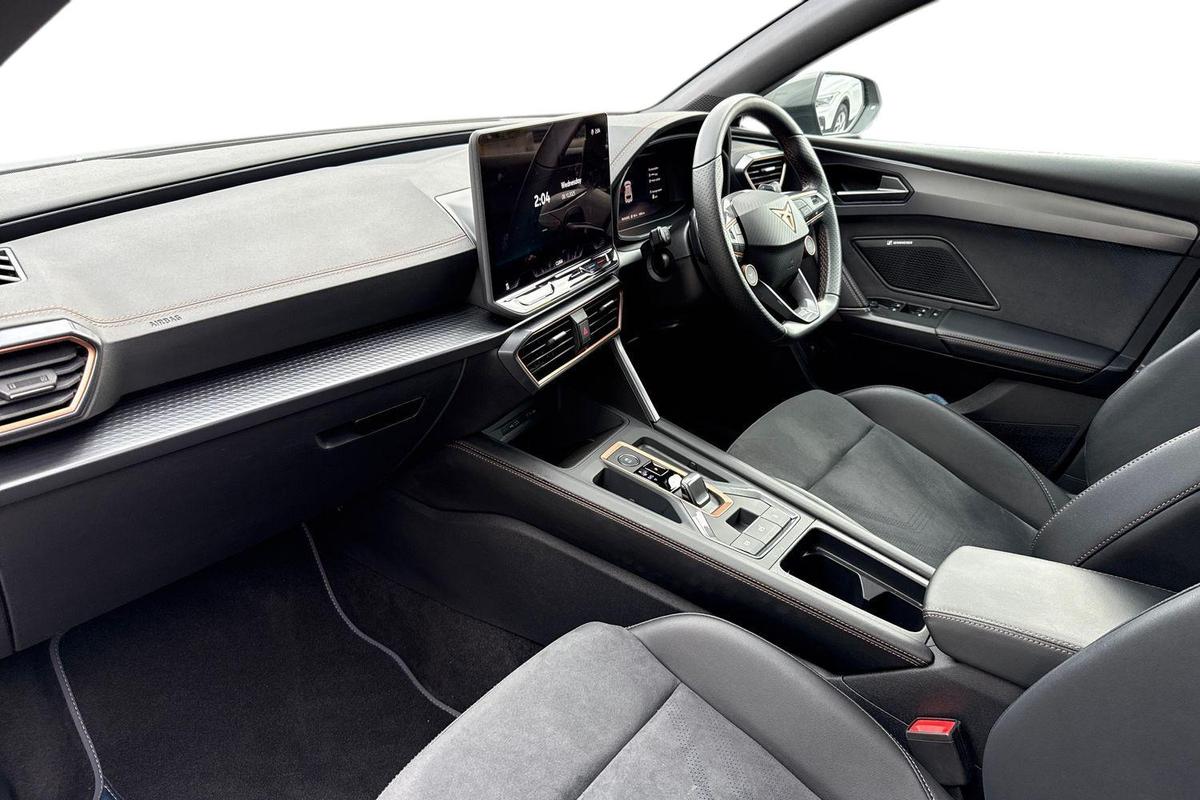 "features": "CUPRA drive profile selection with 4 modes (Comfort/Cupra/Sport/Individual), throttle response and gearshift mode, Digital cockpit, E-call, Four x USB Type C ports (2 in front and 2 in rear), Front assist with forward collision warning braking reaction to vehicles, pedestrians and cyclists, Full link smartphone integration with Mirror Link, wireless Apple CarPlay and wired Google Android Auto, Lane assist, Lockable tailgate, Park assist (inc front/rear parking sensors), Rear view camera, RPM, trip computer, outside temp gauge, instrument light brightness, low fuel warning light, lights on reminder, gearshift indicator, Service interval indicator, Start/stop system with regenerative braking, Wireless phone charger, 10 amp mode 2 charging cable, 16 amp mode 3 charging cable, 3.6 kw On-board charger, Standard suspension, XDS electronic differential lock and dynamic traction support, Auxiliary input socket, Auto dimming rear view mirror, Body colour door handles, Body coloured bumpers, Cupra sports bumpers, Dark tinted rear windows, Electric front/rear windows, Electrically adjustable, heated and folding door mirrors, LED front fog lamps with cornering function, LED rear fog lamp, Matrix LED Headlights with variable light distribution, Matrix Beam and Dynamic headlight range control, Panoramic sunroof, Rain sensing wipers, Rear coast to coast lighting, Rear diffuser with twin exhaust pipe on each side with simulated exhausts, Rear side wing doors, Rear wash/wipe, Separate daytime running light with automatic headlight control and coming home feature, Third brake light, 12v power supply in centre console, 3 seat bench in 2nd row, 5 headrests, 60/40 split rear bench seat with armrest, Ambient lighting (glovebox, footwell, ambient lighting multicoloured), Black headlining, Cupra sports pedals, CUPRA Supersports, heated steering wheel with satellite buttons, Dust/pollen filter, Folding boot cover, Front and rear reading lights X 4, Front centre armrest, Heated front seats, Height/reach adjust steering wheel, Illuminated interior front door sills, Interior wraparound lighting, ISOFIX points in outer rear seats with top tether anchorage points, Luggage tie-down hooks, Nappa leather upholstery, Powered driver seat with memory and manual height adjustment for passenger, Powered lumbar adjustment on driver side, manual on passenger side, Single front passenger seat, Sports bucket seats, Storage pockets on rear of front seats, Sunvisors with illuminated mirror, Three zone climate control, Design pack - Cupra Leon, Dynamic and comfort pack - Leon Cupra, Media system plus with navigation pack - Leon Cupra, Safety and driving pack (XL) - Cupra leon, 3 point seatbelts on all rear seats, ABS, Brake control system - ESC and brake booster, Child proof door locks, Driver and front passenger airbags with front passenger airbag de-activation, front side and curtain airbags, Electronic parking brake, Extended safety system - seat belt tensioner, window closure and hazard lights, Hill hold control, Rear disc brakes, Seat belt reminder for front and rear seats, Tiredness recognition system, Tyre pressure monitoring system, Anti theft alarm system with interior monitoring in cab, backup horn and towing protection, KESSY Advanced - Keyless start, keyless entry, Locking wheel bolts, Chrome and copper interior detailing, Copper stitching on dashboard trim, 19\" Performance satin black and copper alloy wheels with 91Y tyres, Breakdown kit, Tool kit, ",