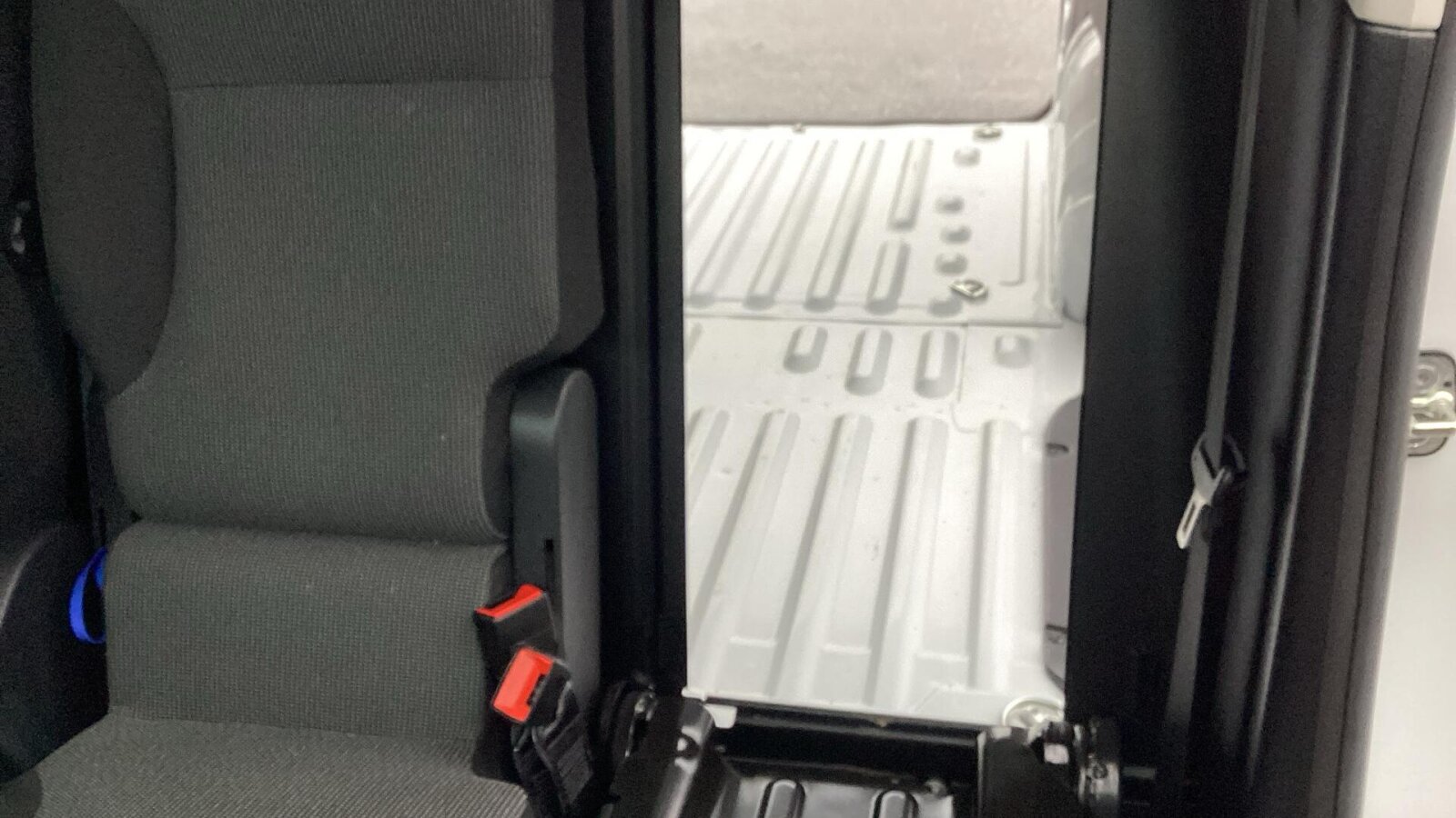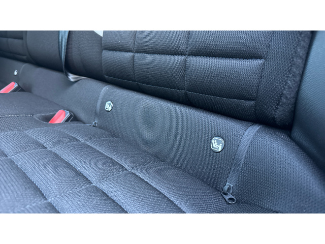 "3 upper retaining strap clips integrated into rear panels of seat backrests",