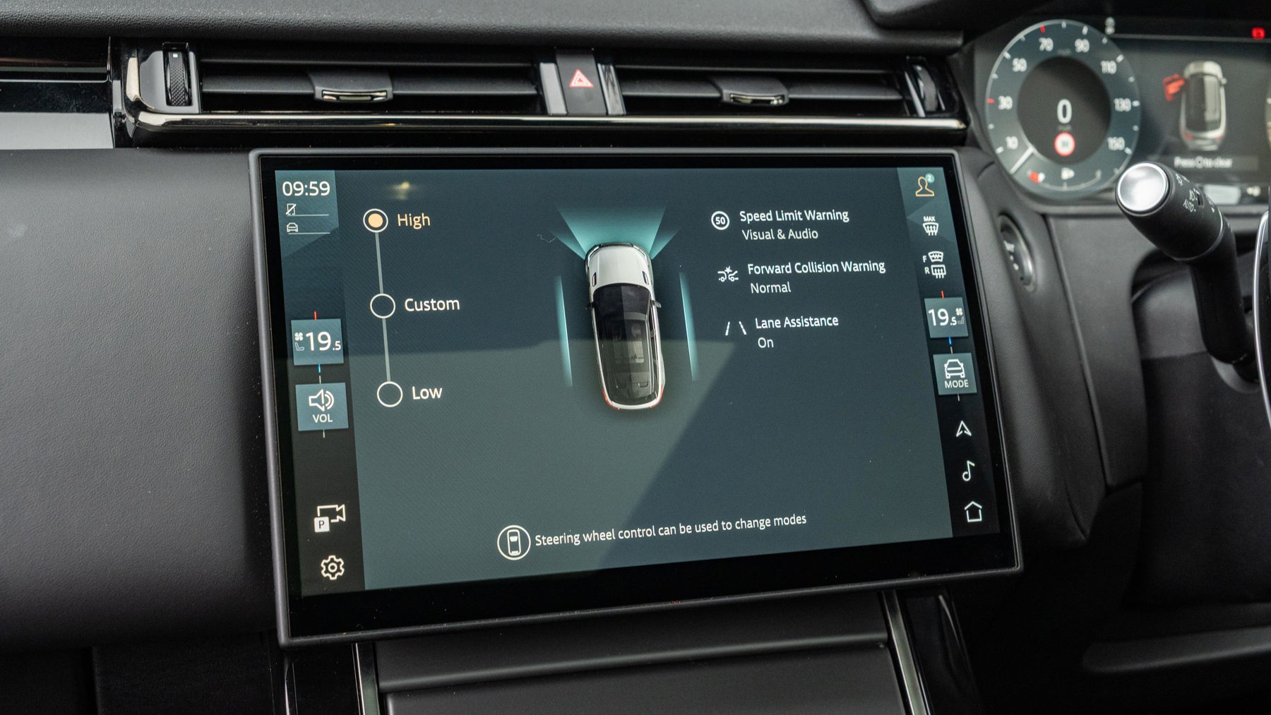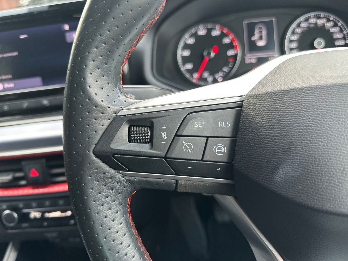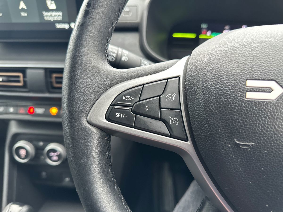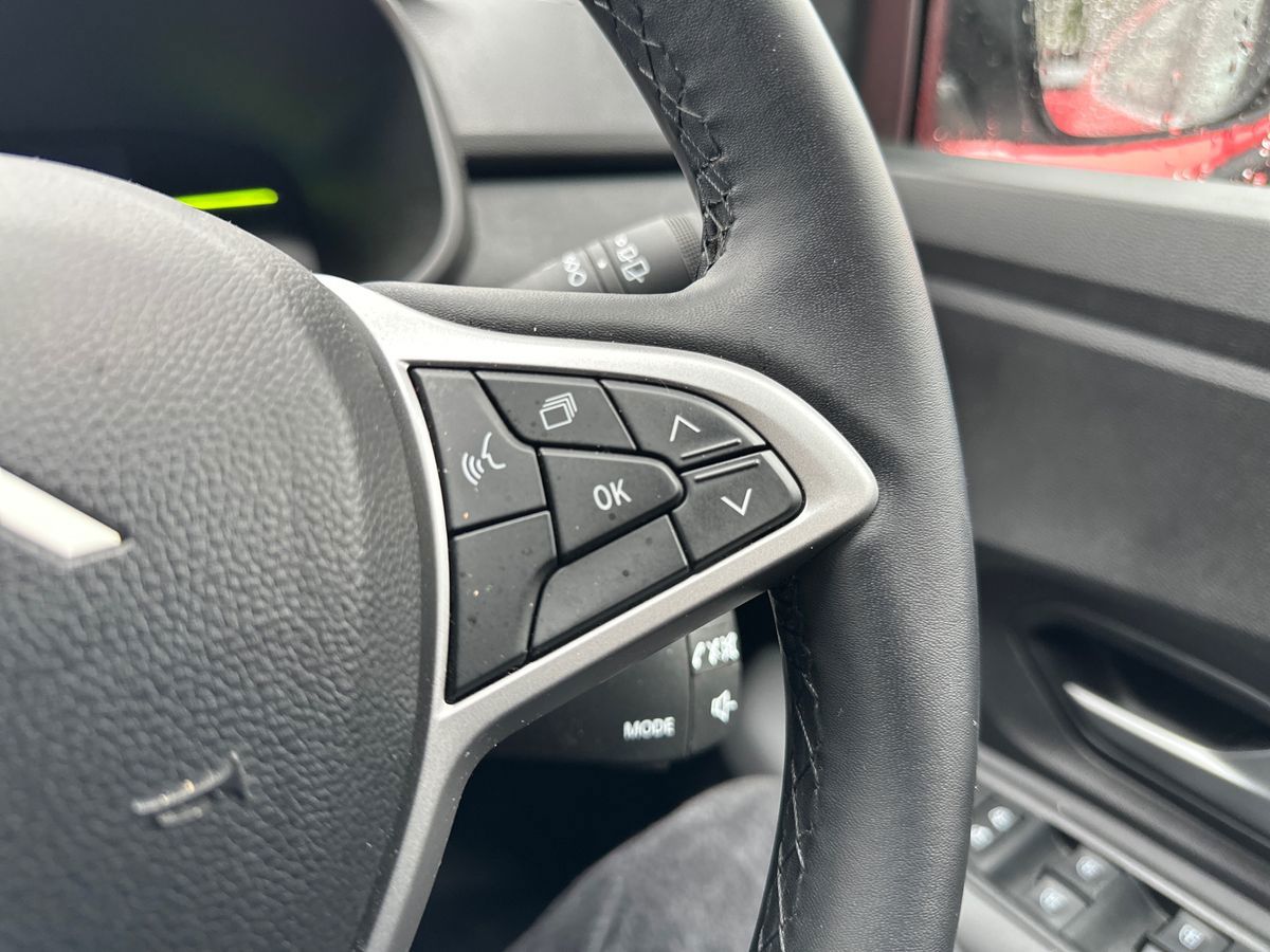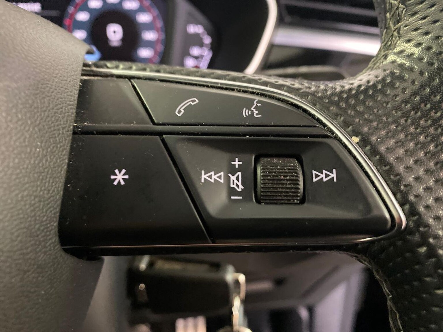 "Audio controls mounted on steering wheel",