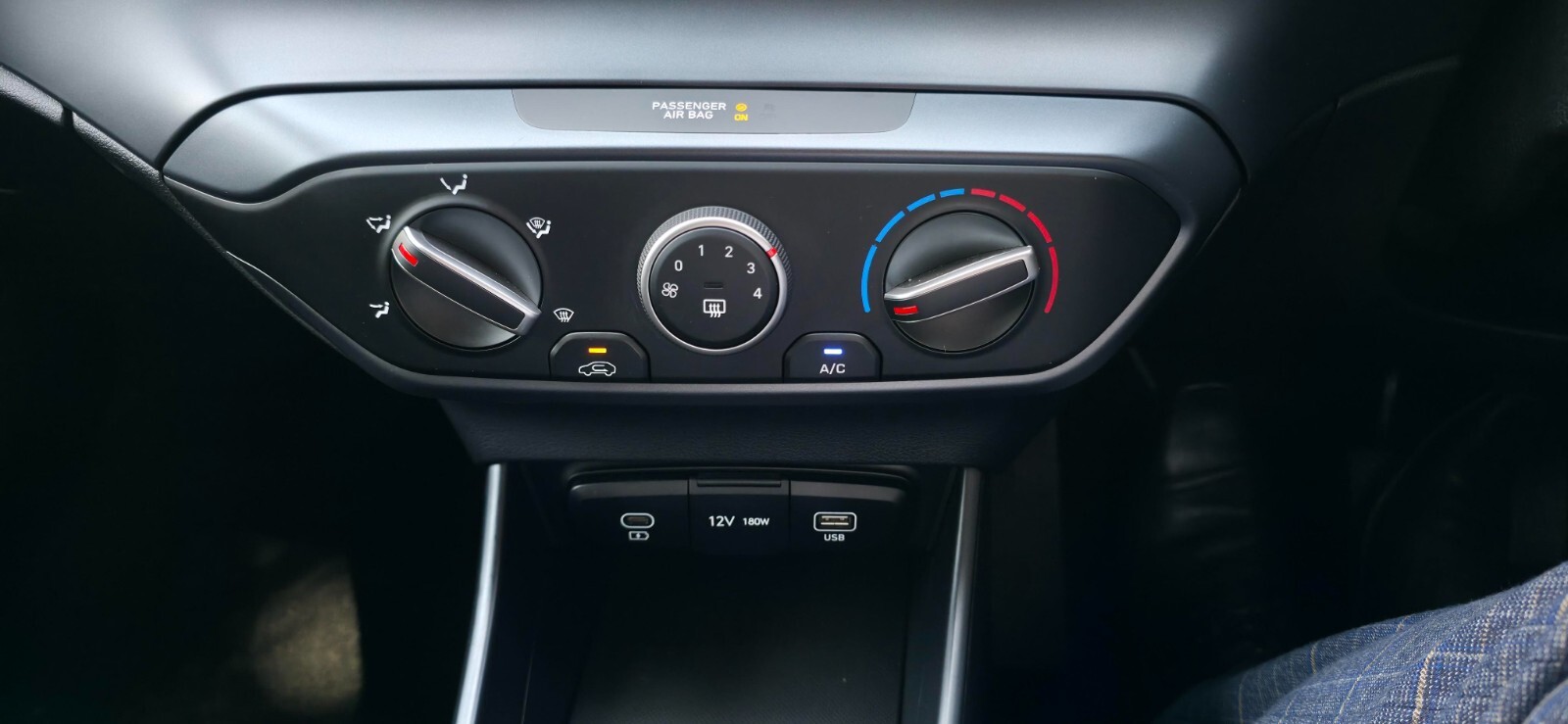 "features": "10.25\" digital supervision cluster, 2nd Gen eCall, 8\" Touchscreen with DAB, Apple car play/Android Auto, Cruise control + speed limiter, Forward collision assist with car, pedestrian and cycle detection, Intelligent speed limit warning, Lane follow assist, Lane keep assist, PAS, Rear parking sensor, Rear view camera with dynamic guidelines, USB C port front, 3rd brake light, Dusk sensor, Electric adjustable heated door mirrors, Front grille mesh pattern design, High beam assist, LED daytime running lights, LED Headlights, LED taillights, Rain sensor, Rear side wing doors, Rear wiper, Repositioned flat metal hyundai emblem, 3 seat bench in 2nd row, Adjustable head restraints, Air conditioning, Cloth upholstery, Floor mats, Leather steering wheel, Single front passenger seat, 3x3 point rear seatbelts, ABS with front and rear diagonally split, Autonomous emergency braking, Child locks on rear doors, Front ventilated disc brakes, Rear solid disc brakes, Tyre pressure monitoring system, 16\" alloy wheels, Tyre repair kit, ",