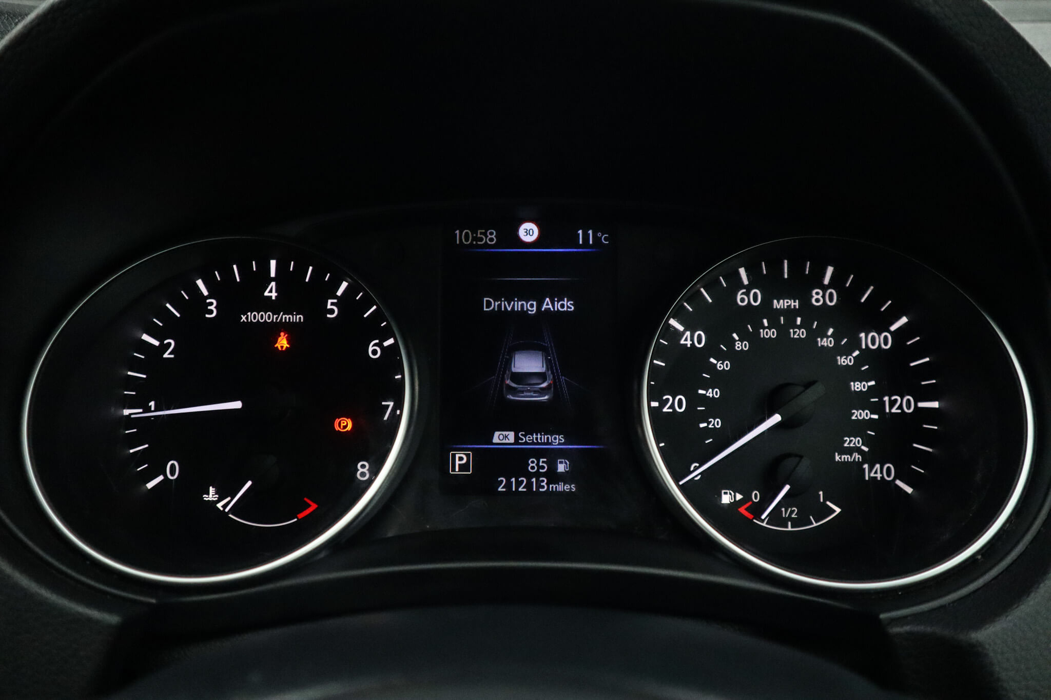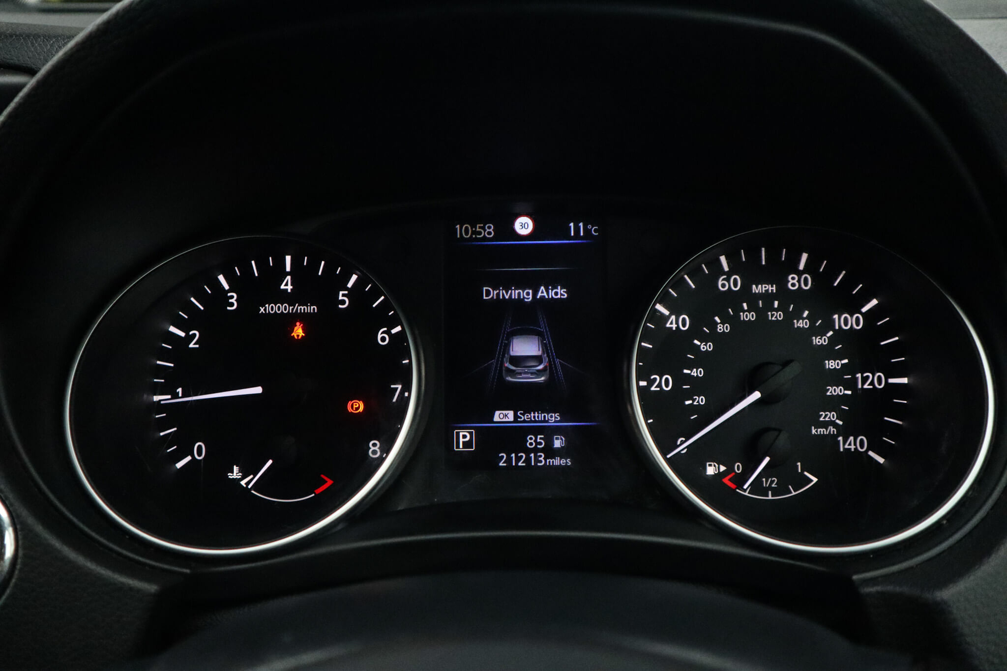 "Instrument cluster in white",