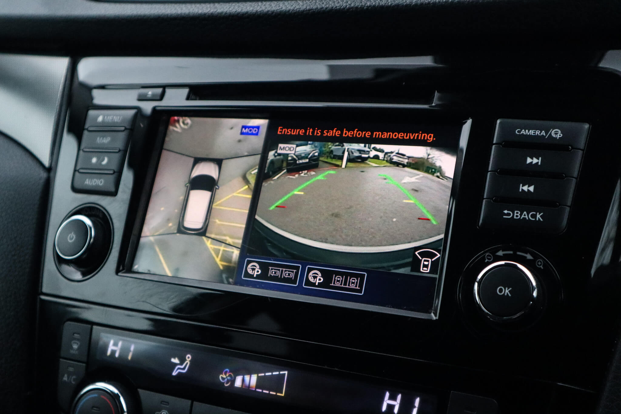"Ultrasonic front and rear optical and audible parking sensors",