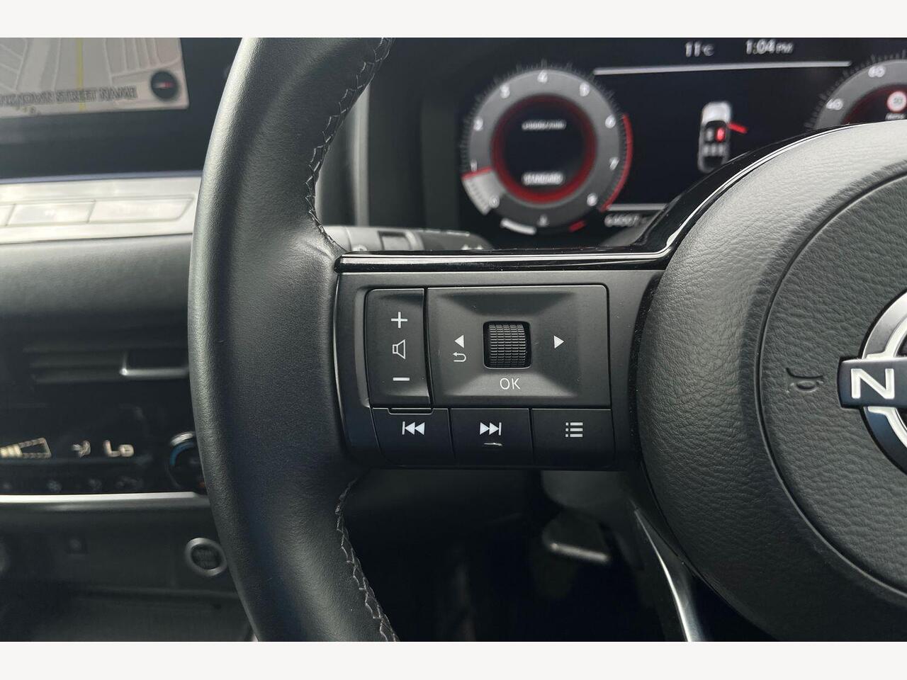 "Power adjustable leather steering wheel with paddle shifts",